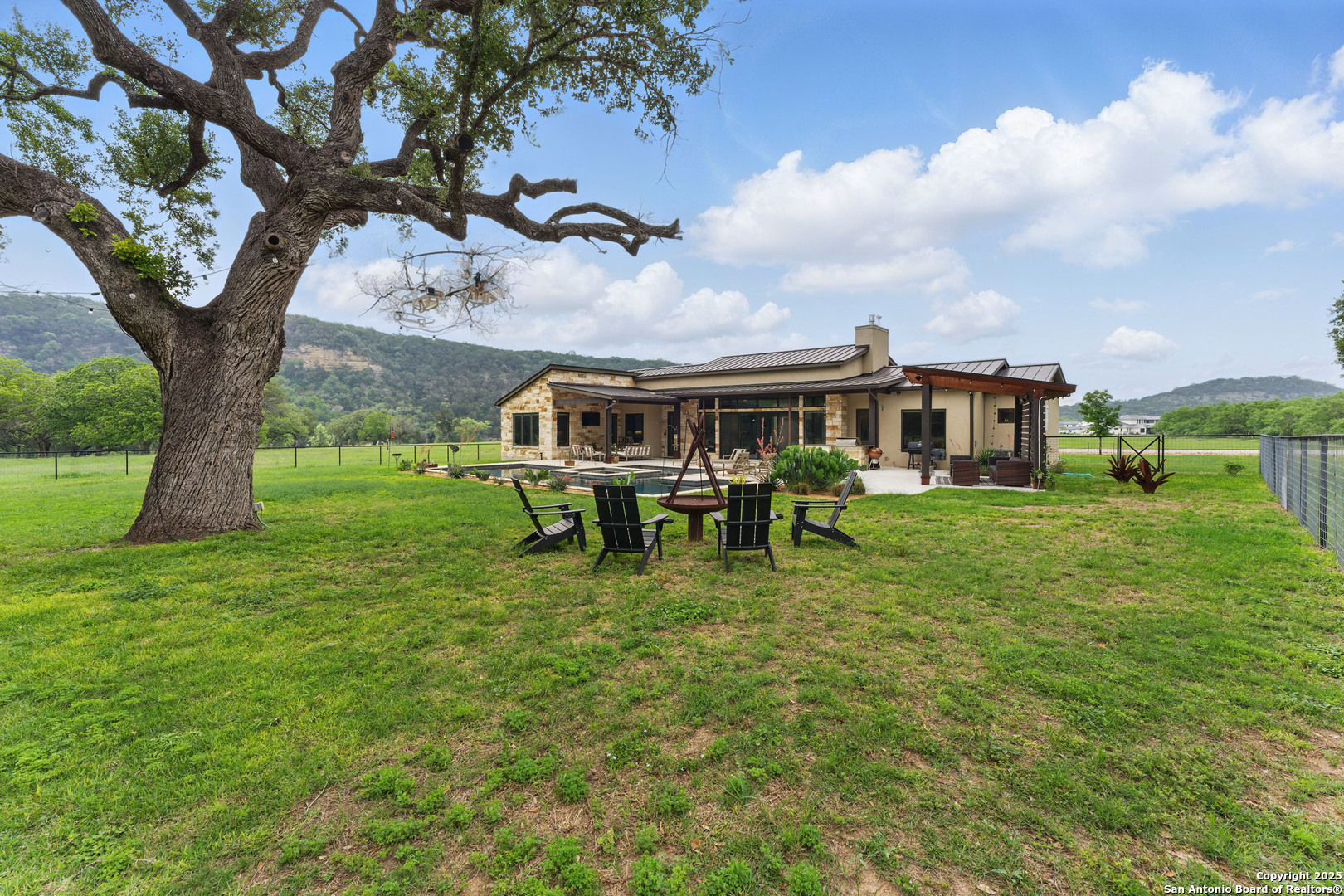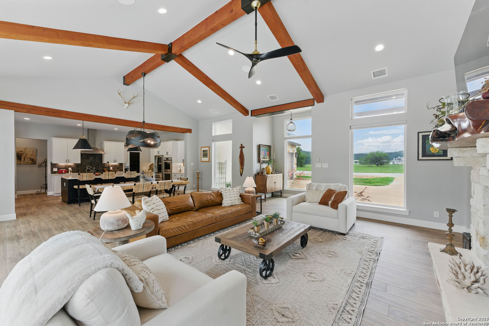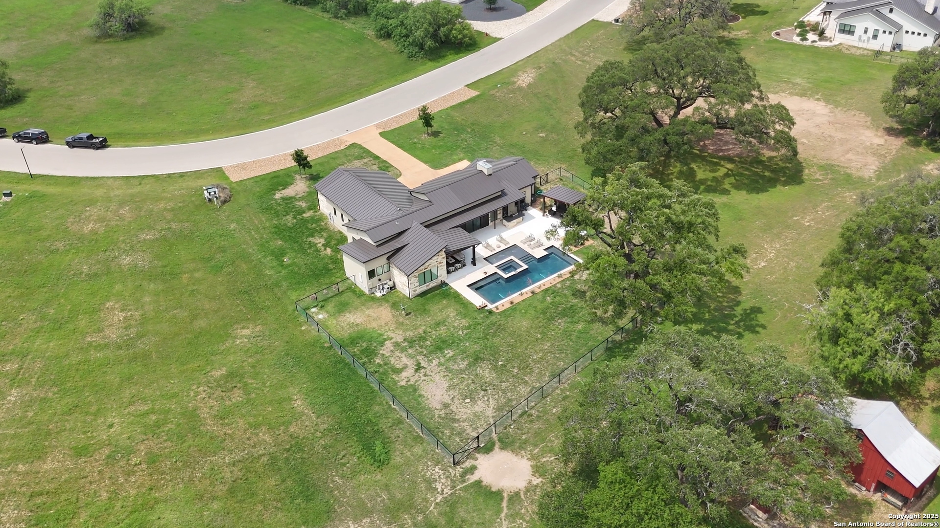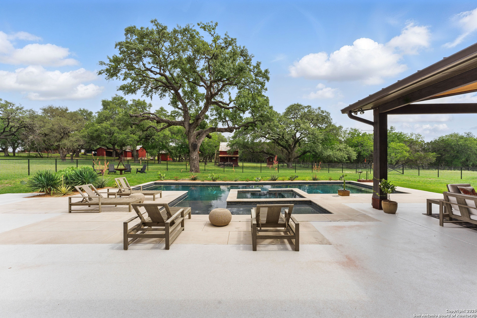 Exceptional Custom-Built Hill Country Home in Oxbow on the Guadalupe! Welcome to this one-of-a-kind custom-built 3-bedroom, 3.5-bathroom hill country home, nestled in the prestigious gated community of Oxbow on the Guadalupe in Canyon Lake, just outside New Braunfels. This stunning residence offers the perfect blend of rustic elegance and modern luxury, with exceptional attention to detail throughout. As you approach the home, you're greeted by elegant gas lanterns and a grand wrought iron door, setting the tone for the remarkable craftsmanship inside. Step through the entryway and into a spacious living area where luxury features abound. The open-concept design boasts a stone fireplace with a custom-made mantle, creating a warm and inviting focal point. High ceilings adorned with solid cedar beams add a touch of grandeur, while the Anderson sliding double glass doors flood the space with natural light and offer breathtaking views of the surrounding hill country. The living room seamlessly flows into the gourmet kitchen and outdoor living areas, creating an ideal space for both entertaining and relaxation. The chef-inspired kitchen is a true highlight, featuring sleek quartz countertops, a large island with abundant storage, and top-of-the-line appliances including a Wolfe gas cooktop, double ovens, a spacious fridge, and a wine fridge-perfect for preparing gourmet meals and entertaining with ease. The luxurious primary suite offers a serene retreat with a spa-like bathroom, complete with a soaking garden tub, a walk-in shower, quartz countertops, double vanity, and his-and-hers closets, providing ample space and functionality for everyday comfort. Plus, the conveniently located utility room is easily accessible from the primary suite. Step outside to your own private oasis, featuring an outdoor grilling area perfect for summer BBQ's, an expansive swimming pool with a heated jacuzzi for year-round enjoyment, and multiple inviting seating areas. A spacious covered patio with cozy window seating effortlessly opens to the chef's kitchen, creating a seamless flow for both casual meals and grand gatherings. For sun lovers, the stunning pergola offers the perfect spot for basking in the warmth, while the fire pit area provides a peaceful retreat under the stars-ideal for evening cocktails and intimate conversations. Whether you're enjoying a quiet evening by the fire or hosting a lively gathering, this home is designed to make every moment unforgettable. With its stunning craftsmanship, luxurious amenities, and breathtaking views, this hill country gem is a true sanctuary. Experience the perfect balance of style, comfort, and natural beauty in this extraordinary property.