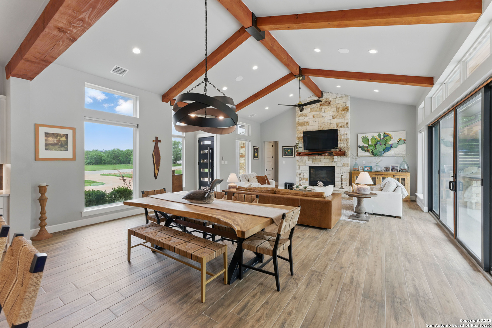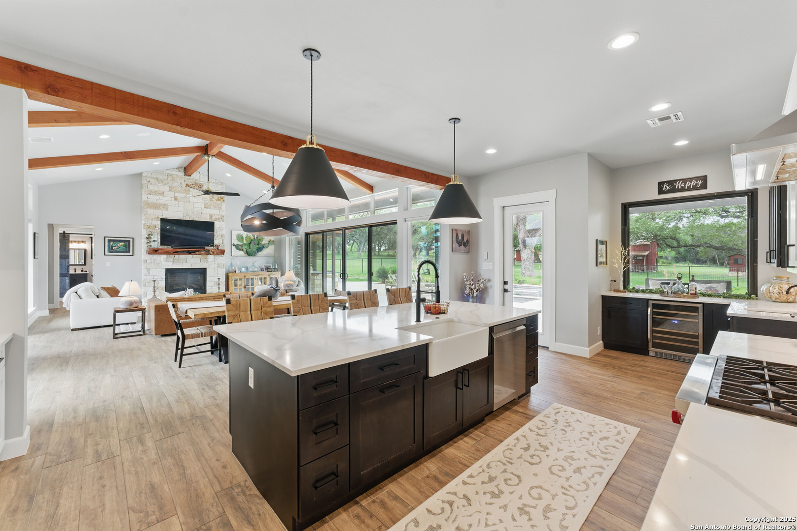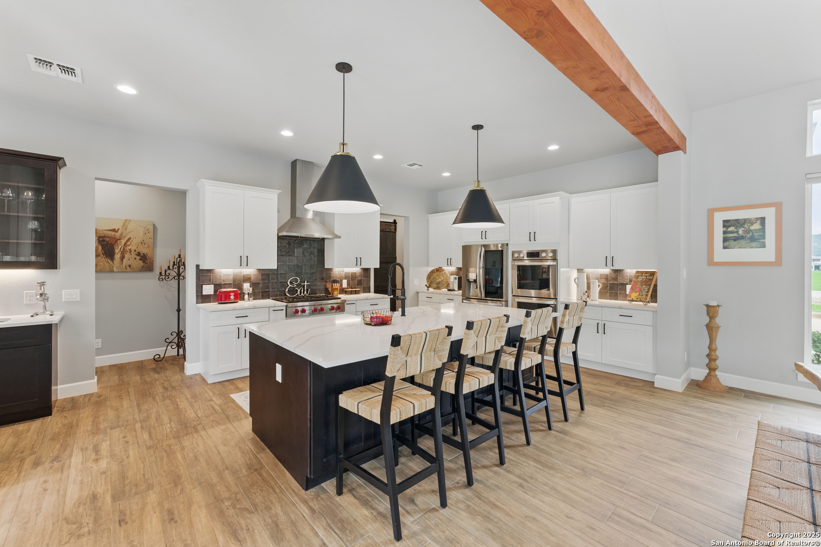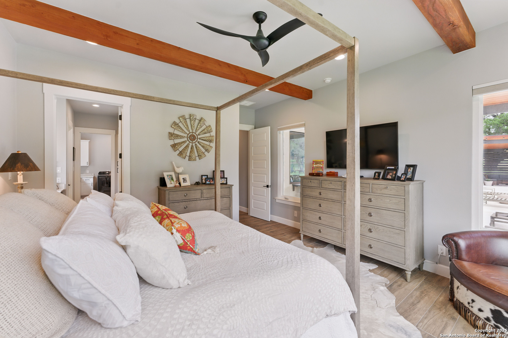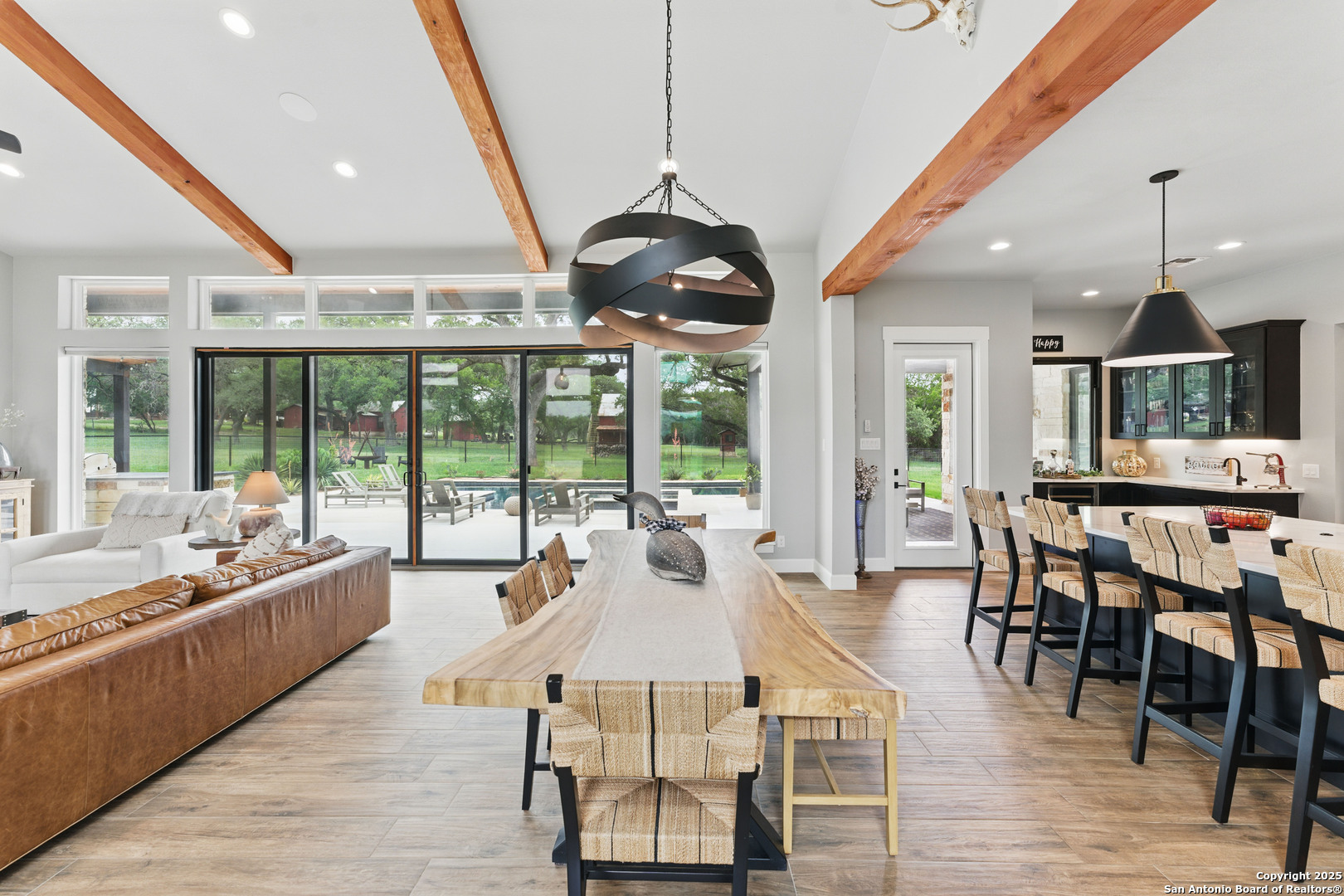 Exceptional Custom-Built Hill Country Home in Oxbow on the Guadalupe! Welcome to this one-of-a-kind custom-built 3-bedroom, 3.5-bathroom hill country home, nestled in the prestigious gated community of Oxbow on the Guadalupe in Canyon Lake, just outside New Braunfels. This stunning residence offers the perfect blend of rustic elegance and modern luxury, with exceptional attention to detail throughout. As you approach the home, you're greeted by elegant gas lanterns and a grand wrought iron door, setting the tone for the remarkable craftsmanship inside. Step through the entryway and into a spacious living area where luxury features abound. The open-concept design boasts a stone fireplace with a custom-made mantle, creating a warm and inviting focal point. High ceilings adorned with solid cedar beams add a touch of grandeur, while the Anderson sliding double glass doors flood the space with natural light and offer breathtaking views of the surrounding hill country. The living room seamlessly flows into the gourmet kitchen and outdoor living areas, creating an ideal space for both entertaining and relaxation. The chef-inspired kitchen is a true highlight, featuring sleek quartz countertops, a large island with abundant storage, and top-of-the-line appliances including a Wolfe gas cooktop, double ovens, a spacious fridge, and a wine fridge-perfect for preparing gourmet meals and entertaining with ease. The luxurious primary suite offers a serene retreat with a spa-like bathroom, complete with a soaking garden tub, a walk-in shower, quartz countertops, double vanity, and his-and-hers closets, providing ample space and functionality for everyday comfort. Plus, the conveniently located utility room is easily accessible from the primary suite. Step outside to your own private oasis, featuring an outdoor grilling area perfect for summer BBQ's, an expansive swimming pool with a heated jacuzzi for year-round enjoyment, and multiple inviting seating areas. A spacious covered patio with cozy window seating effortlessly opens to the chef's kitchen, creating a seamless flow for both casual meals and grand gatherings. For sun lovers, the stunning pergola offers the perfect spot for basking in the warmth, while the fire pit area provides a peaceful retreat under the stars-ideal for evening cocktails and intimate conversations. Whether you're enjoying a quiet evening by the fire or hosting a lively gathering, this home is designed to make every moment unforgettable. With its stunning craftsmanship, luxurious amenities, and breathtaking views, this hill country gem is a true sanctuary. Experience the perfect balance of style, comfort, and natural beauty in this extraordinary property.