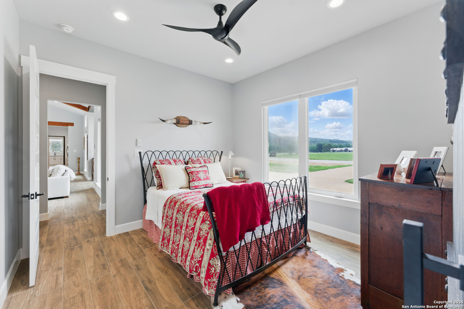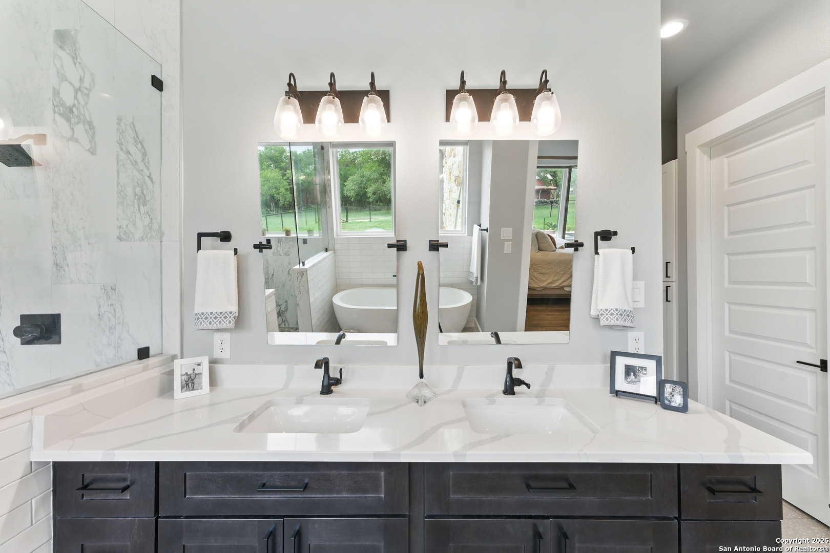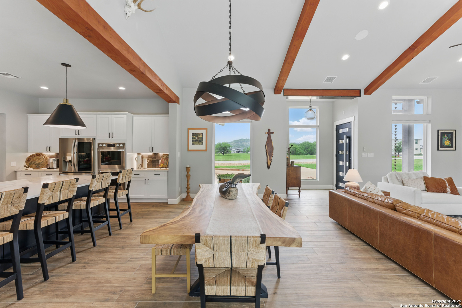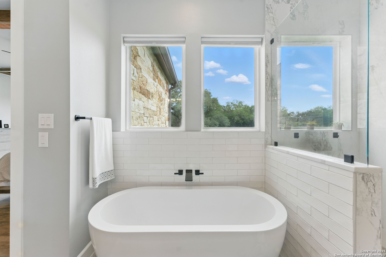 Exceptional Custom-Built Hill Country Home in Oxbow on the Guadalupe! Welcome to this one-of-a-kind custom-built 3-bedroom, 3.5-bathroom hill country home, nestled in the prestigious gated community of Oxbow on the Guadalupe in Canyon Lake, just outside New Braunfels. This stunning residence offers the perfect blend of rustic elegance and modern luxury, with exceptional attention to detail throughout. As you approach the home, you're greeted by elegant gas lanterns and a grand wrought iron door, setting the tone for the remarkable craftsmanship inside. Step through the entryway and into a spacious living area where luxury features abound. The open-concept design boasts a stone fireplace with a custom-made mantle, creating a warm and inviting focal point. High ceilings adorned with solid cedar beams add a touch of grandeur, while the Anderson sliding double glass doors flood the space with natural light and offer breathtaking views of the surrounding hill country. The living room seamlessly flows into the gourmet kitchen and outdoor living areas, creating an ideal space for both entertaining and relaxation. The chef-inspired kitchen is a true highlight, featuring sleek quartz countertops, a large island with abundant storage, and top-of-the-line appliances including a Wolfe gas cooktop, double ovens, a spacious fridge, and a wine fridge-perfect for preparing gourmet meals and entertaining with ease. The luxurious primary suite offers a serene retreat with a spa-like bathroom, complete with a soaking garden tub, a walk-in shower, quartz countertops, double vanity, and his-and-hers closets, providing ample space and functionality for everyday comfort. Plus, the conveniently located utility room is easily accessible from the primary suite. Step outside to your own private oasis, featuring an outdoor grilling area perfect for summer BBQ's, an expansive swimming pool with a heated jacuzzi for year-round enjoyment, and multiple inviting seating areas. A spacious covered patio with cozy window seating effortlessly opens to the chef's kitchen, creating a seamless flow for both casual meals and grand gatherings. For sun lovers, the stunning pergola offers the perfect spot for basking in the warmth, while the fire pit area provides a peaceful retreat under the stars-ideal for evening cocktails and intimate conversations. Whether you're enjoying a quiet evening by the fire or hosting a lively gathering, this home is designed to make every moment unforgettable. With its stunning craftsmanship, luxurious amenities, and breathtaking views, this hill country gem is a true sanctuary. Experience the perfect balance of style, comfort, and natural beauty in this extraordinary property.