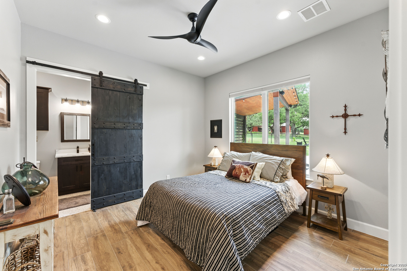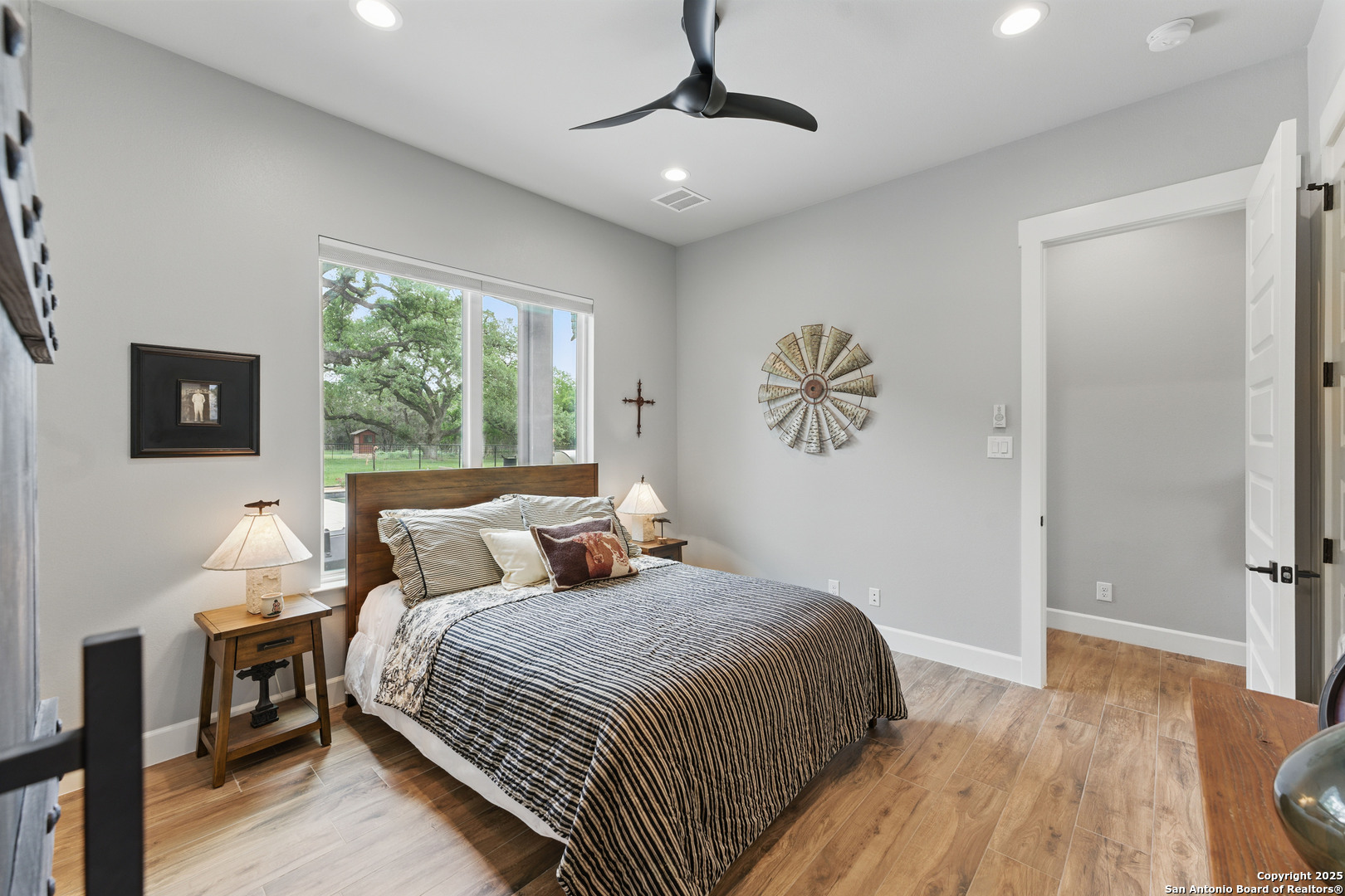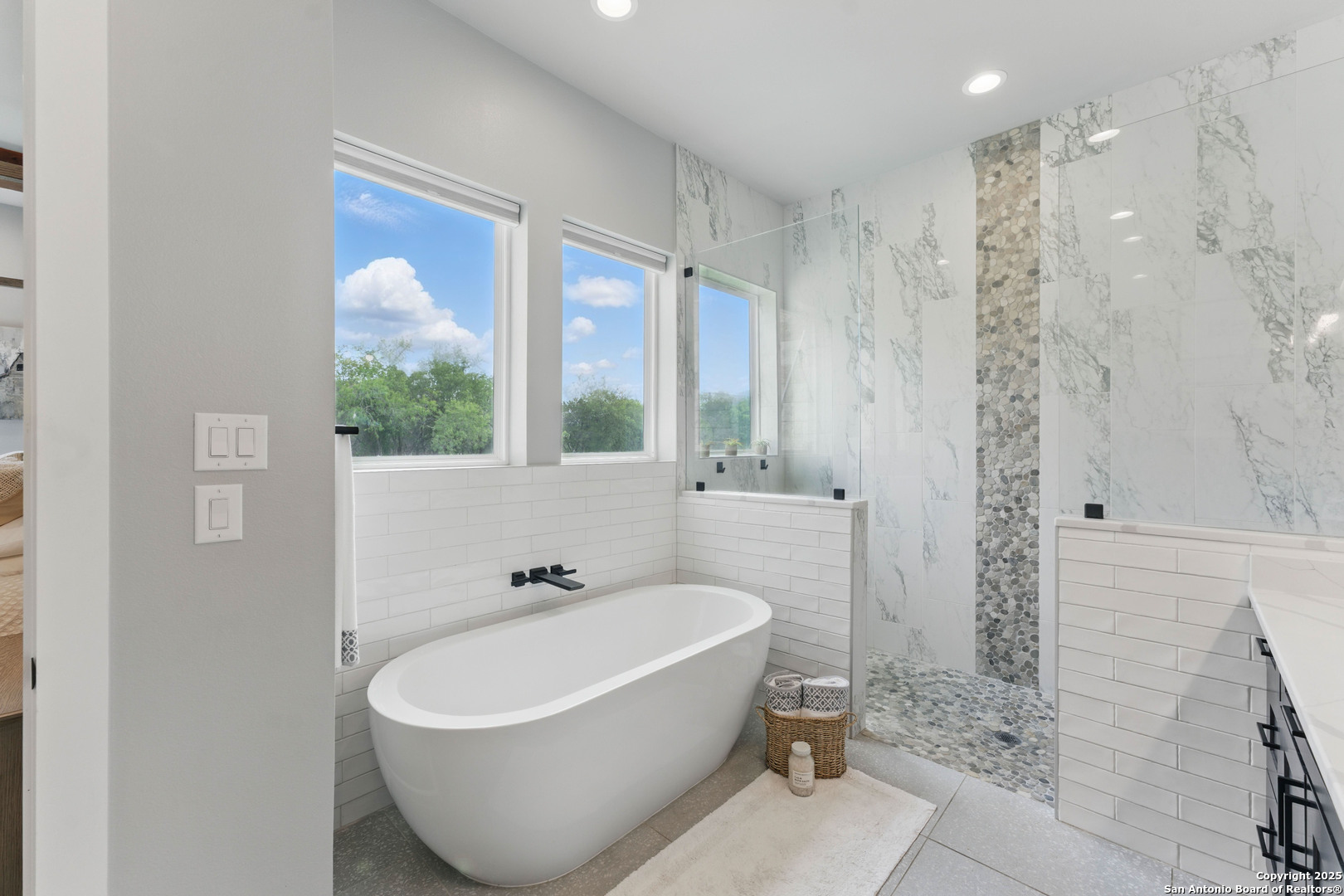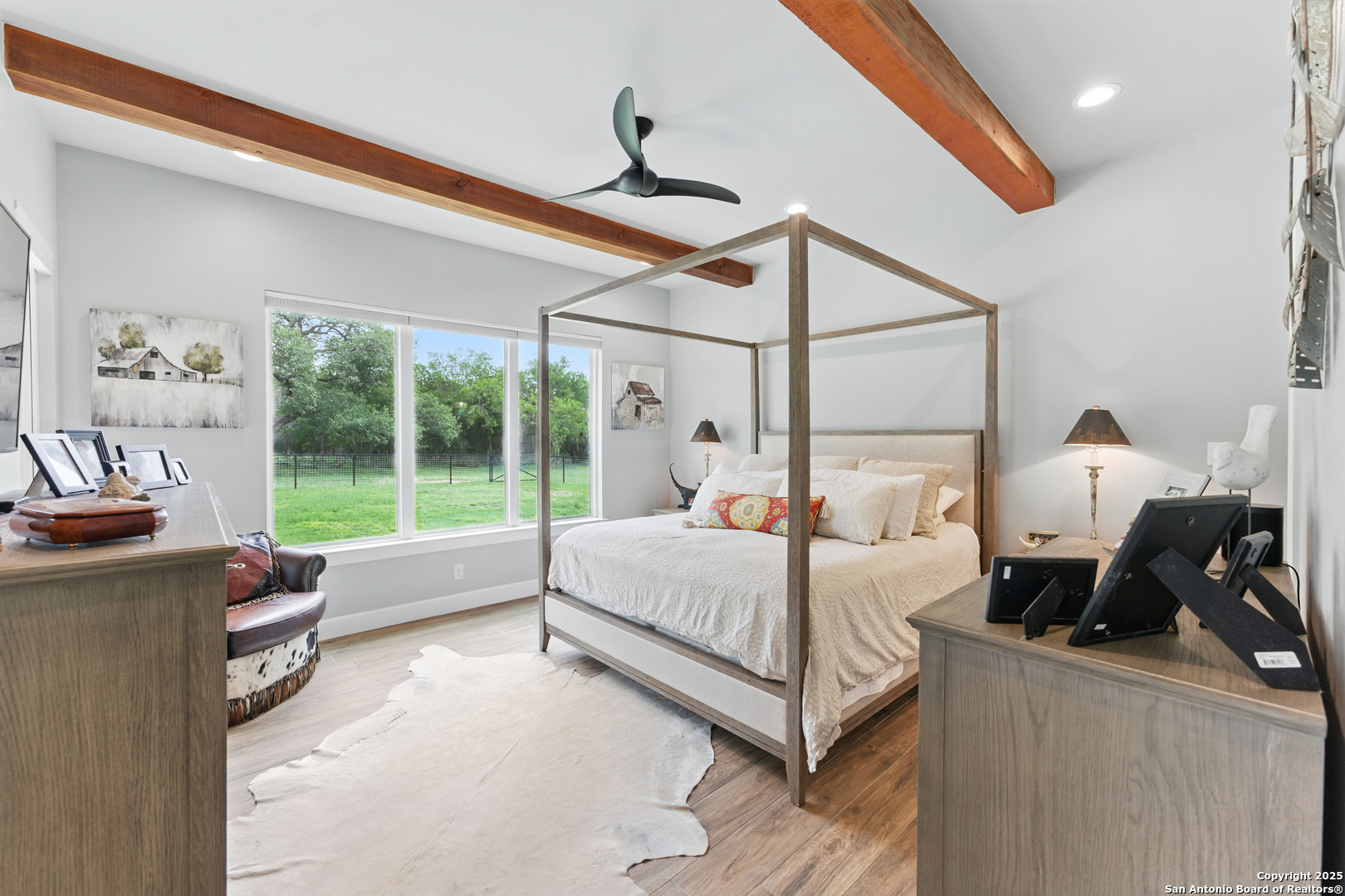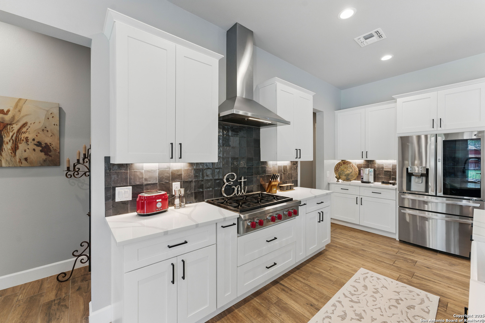 Exceptional Custom-Built Hill Country Home in Oxbow on the Guadalupe! Welcome to this one-of-a-kind custom-built 3-bedroom, 3.5-bathroom hill country home, nestled in the prestigious gated community of Oxbow on the Guadalupe in Canyon Lake, just outside New Braunfels. This stunning residence offers the perfect blend of rustic elegance and modern luxury, with exceptional attention to detail throughout. As you approach the home, you're greeted by elegant gas lanterns and a grand wrought iron door, setting the tone for the remarkable craftsmanship inside. Step through the entryway and into a spacious living area where luxury features abound. The open-concept design boasts a stone fireplace with a custom-made mantle, creating a warm and inviting focal point. High ceilings adorned with solid cedar beams add a touch of grandeur, while the Anderson sliding double glass doors flood the space with natural light and offer breathtaking views of the surrounding hill country. The living room seamlessly flows into the gourmet kitchen and outdoor living areas, creating an ideal space for both entertaining and relaxation. The chef-inspired kitchen is a true highlight, featuring sleek quartz countertops, a large island with abundant storage, and top-of-the-line appliances including a Wolfe gas cooktop, double ovens, a spacious fridge, and a wine fridge-perfect for preparing gourmet meals and entertaining with ease. The luxurious primary suite offers a serene retreat with a spa-like bathroom, complete with a soaking garden tub, a walk-in shower, quartz countertops, double vanity, and his-and-hers closets, providing ample space and functionality for everyday comfort. Plus, the conveniently located utility room is easily accessible from the primary suite. Step outside to your own private oasis, featuring an outdoor grilling area perfect for summer BBQ's, an expansive swimming pool with a heated jacuzzi for year-round enjoyment, and multiple inviting seating areas. A spacious covered patio with cozy window seating effortlessly opens to the chef's kitchen, creating a seamless flow for both casual meals and grand gatherings. For sun lovers, the stunning pergola offers the perfect spot for basking in the warmth, while the fire pit area provides a peaceful retreat under the stars-ideal for evening cocktails and intimate conversations. Whether you're enjoying a quiet evening by the fire or hosting a lively gathering, this home is designed to make every moment unforgettable. With its stunning craftsmanship, luxurious amenities, and breathtaking views, this hill country gem is a true sanctuary. Experience the perfect balance of style, comfort, and natural beauty in this extraordinary property.