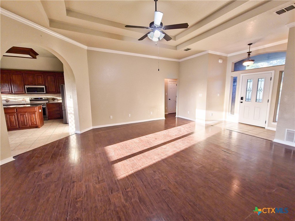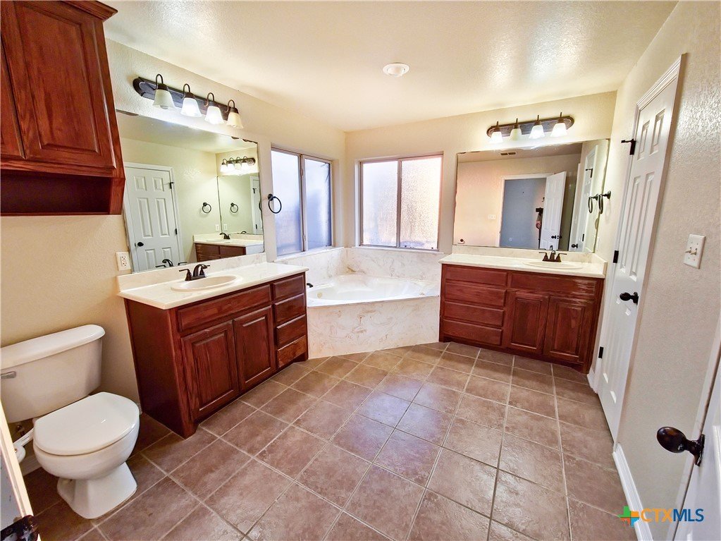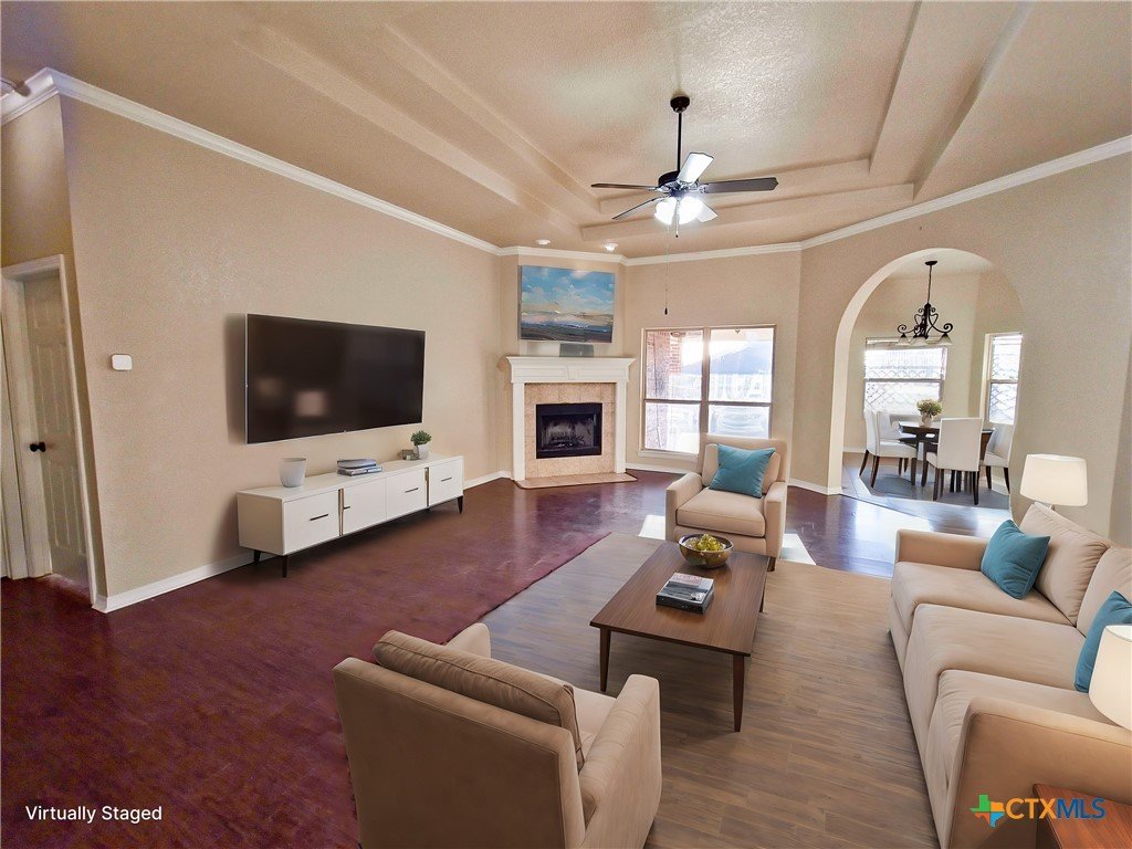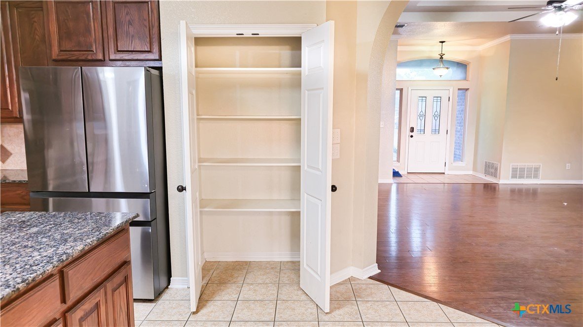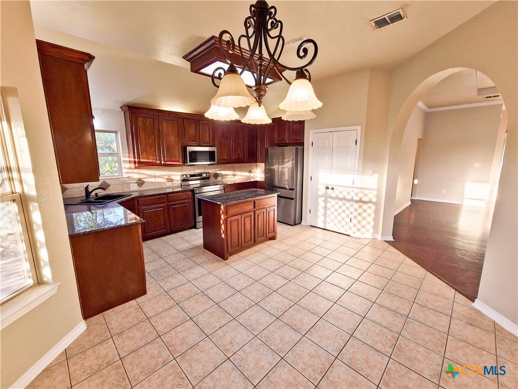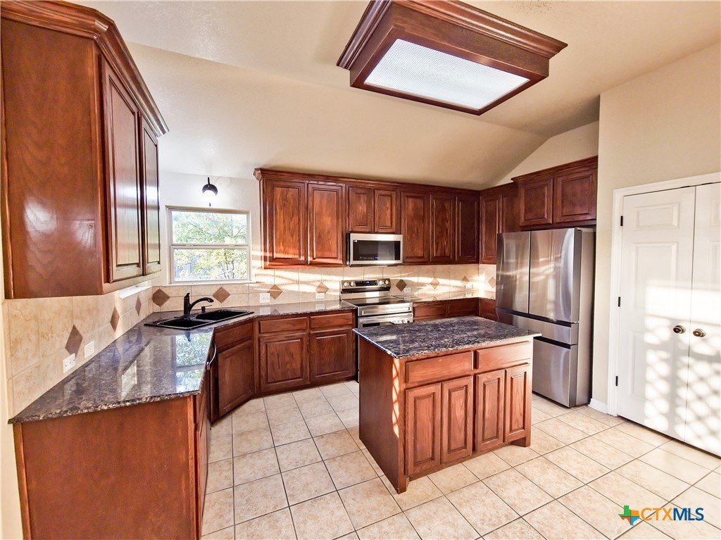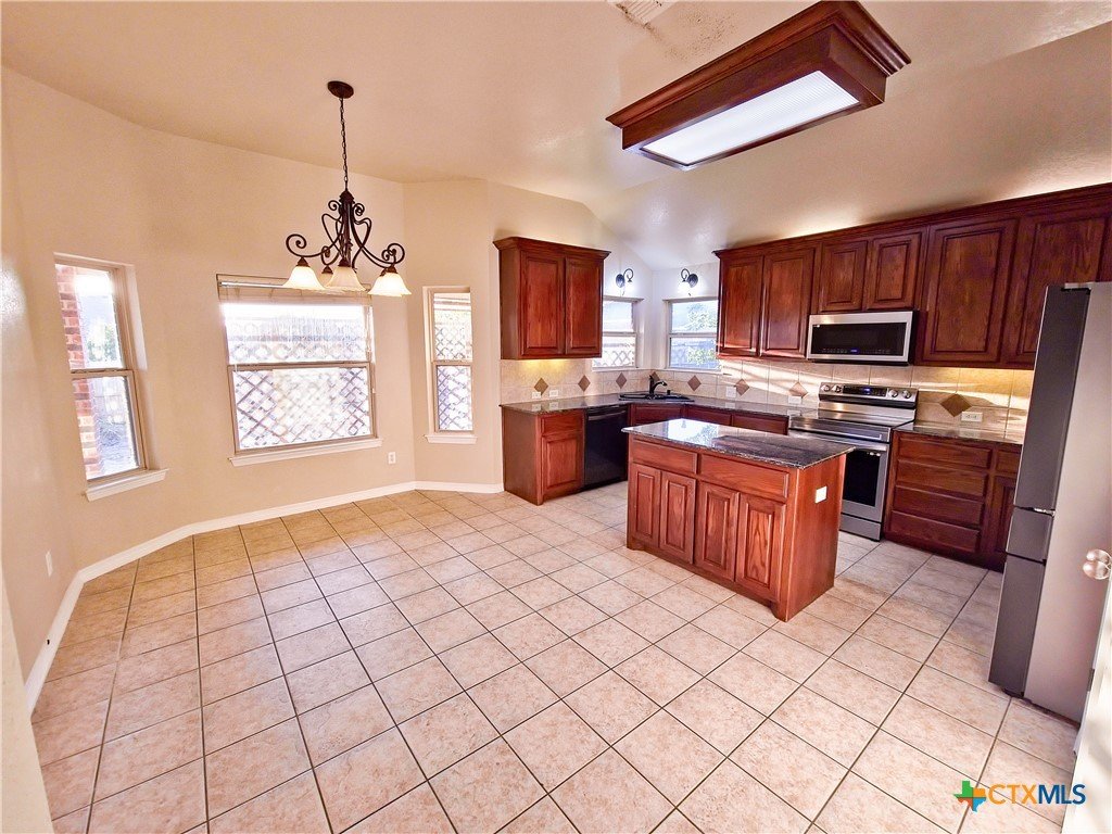 Located in the quiet Stonegate subdivision, this 3-bedroom, 2-bathroom all-brick home offers both modern convenience and comfort. The eat-in kitchen boasts smart Samsung appliances, including an oven with an air fryer, all controllable from your phone. Granite countertops, ample cabinet space, and a large pantry provide plenty of room for storage and meal prep. The home features high ceilings for a grand feel, abundant natural light, a cozy fireplace, and a covered patio perfect for relaxing or entertaining. Both bathrooms are equipped with bidets, adding an extra touch of luxury. The master suite includes a large walk-in closet, a spacious jacuzzi tub, and a separate walk-in shower. Situated on an oversized cul-de-sac lot with no HOA fees, this home provides a peaceful setting just minutes from Scott & White Hospital, shopping centers, grocery stores, an IMAX theater, and local parks. Ideal for those seeking a tranquil yet accessible lifestyle!