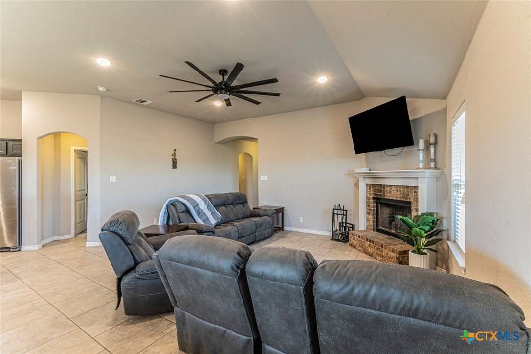Beautiful brick home in a prime Temple location! Conveniently situated near parks, restaurants, schools, shopping, Baylor Scott & White Hospital, and just a short drive to Lions Junction Family Water Park. Offering over 2,200 square feet, this spacious home features 4 bedrooms and 3 full bathrooms with a well designed open floor plan ideal for both everyday living and entertaining. The inviting living room showcases a cozy wood burning fireplace with masonry surround, while luxury wood-look vinyl plank flooring throughout the main living areas provides both durability and easy maintenance. The kitchen is designed for functionality and storage with two pantries, granite countertops, stainless steel appliances, and a refrigerator that conveys with the home. A breakfast bar is perfect for casual meals, and the adjacent dining area offers plenty of space for gathering with family and friends. The large primary suite provides a comfortable retreat with new flooring, two closets plus a linen closet, a walk-in shower, garden tub, and double vanity. Three additional guest bedrooms and two more full bathrooms provide ample space for family, guests, or the option to convert a bedroom into a home office or flex room. A new roof installed in 2024 adds peace of mind for the next owner. Outside, the home features a full sprinkler system for easy lawn care and fully paid off solar panels that offer outstanding energy savings. The private backyard includes a deck for relaxing or entertaining and additional fencing for your canine companions. This home offers space, comfort, and a fantastic location ready for you to make it your own!