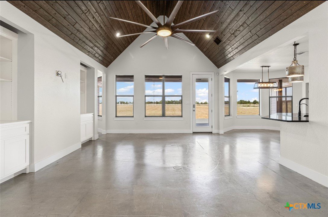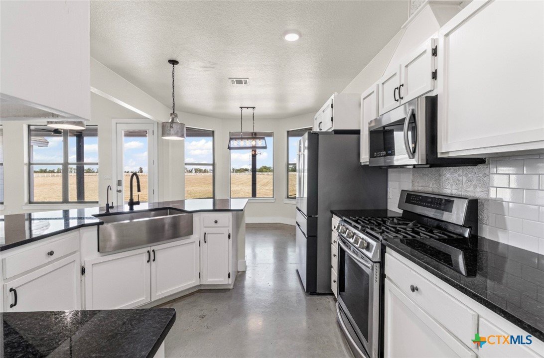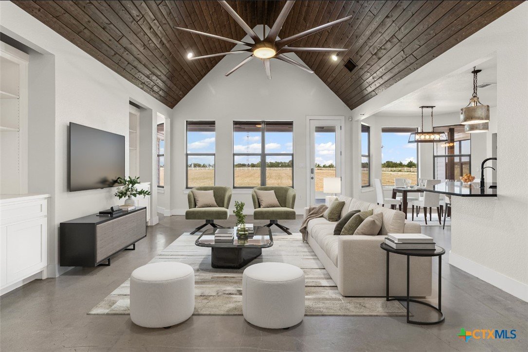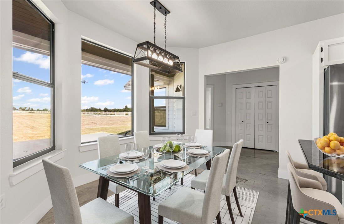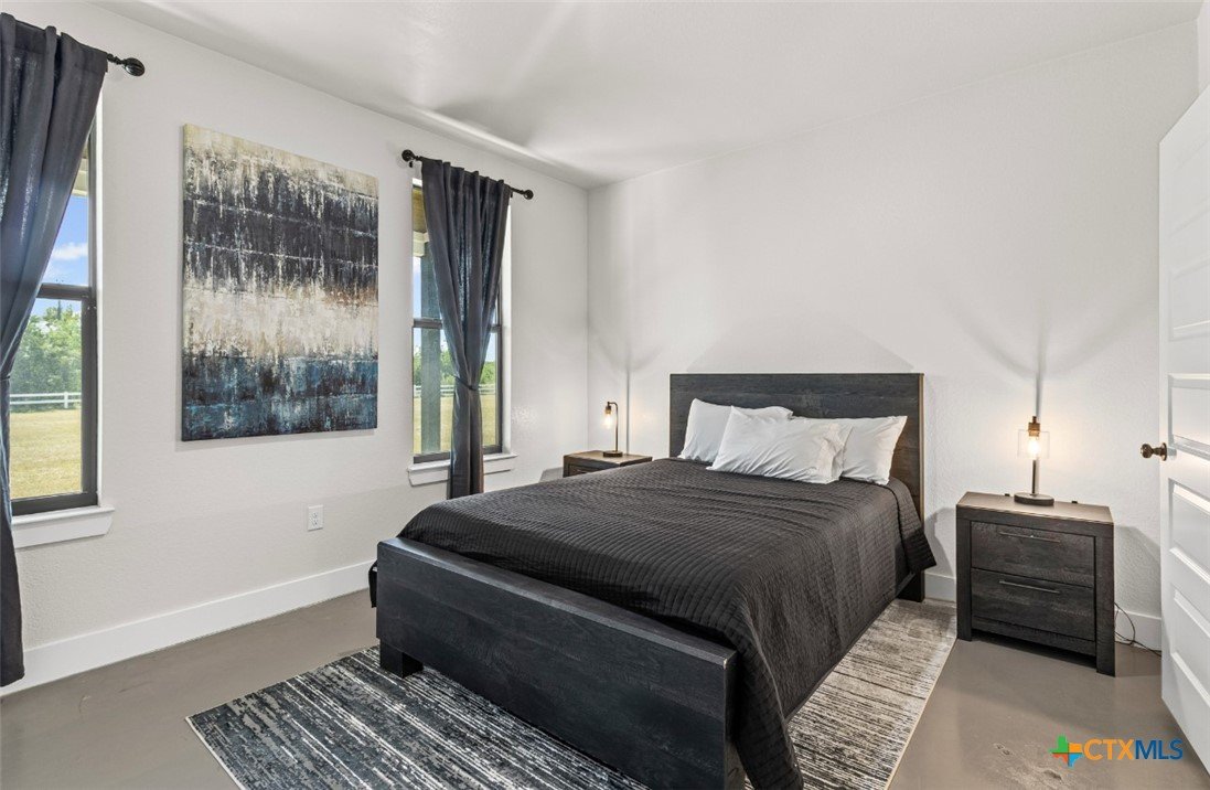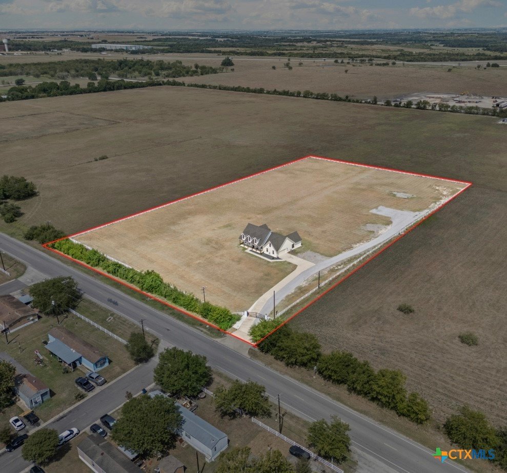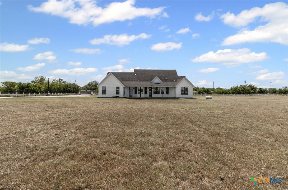 Welcome to your dream retreat at 821 Silent Valley Rd, Lockhart, TX, a stunning modern farmhouse built in 2018, nestled on 5 sprawling acres with minimal deed restrictions. This exquisite 4-bedroom +extra room and loft, 3.5-bathroom home features a thoughtful mother-in-law floorplan for added privacy, complemented by elegant black granite countertops in the kitchen, stylish stained concrete floors, and custom built-ins in the living room. Two dining rooms provide ample space for entertaining, while a large upstairs loft with a 1/2 bathroom and generous storage room/extra bedroom offers versatility as a home office, game room, or additional living area. The property is fully fenced and gated, complete with an automatic gate opener for seamless access, ensuring both security and convenience. A security system with cameras safeguards the premises, and a Tesla charging station caters to eco-conscious homeowners. The home also includes a water softener and a Kangen-style water filter under the kitchen sink, providing pure, high-quality water for your family. Step outside to relax on the expansive back porch, perfect for soaking in serene country views, and utilize the 2-car garage for vehicles or extra storage. Located in the heart of Lockhart, this home blends peaceful rural living with modern amenities and easy access to local conveniences. This home is minutes from downtown Lockhart, the toll road, and HEB! Don’t miss the chance to own this exceptional property—schedule your showing today! The home has been virtually staged, and the grass has been digitally edited to appear greener, showcasing its full potential