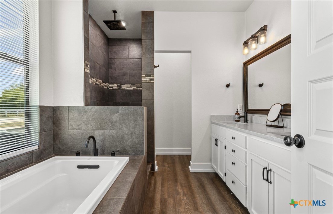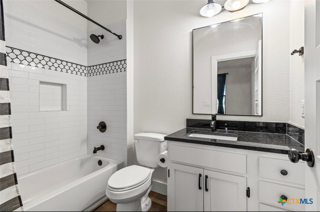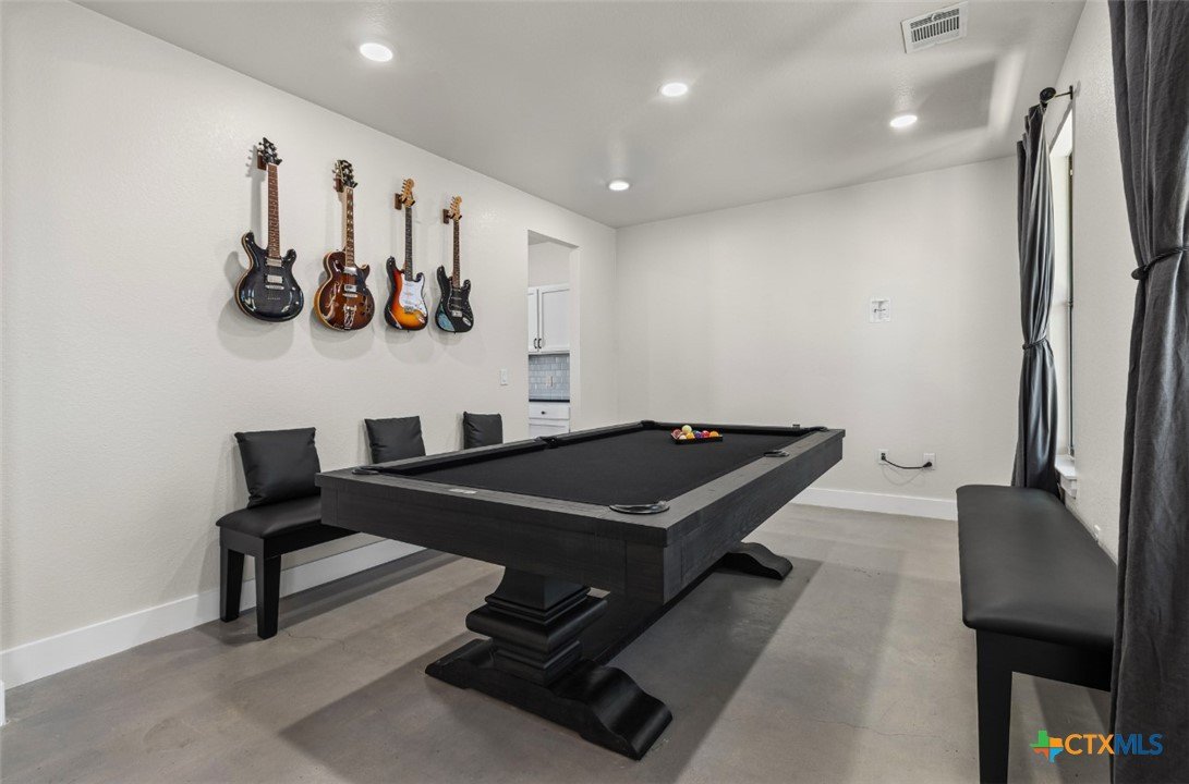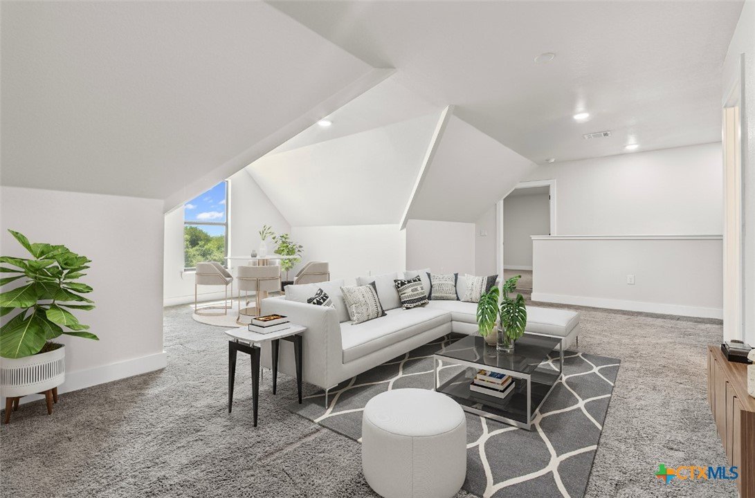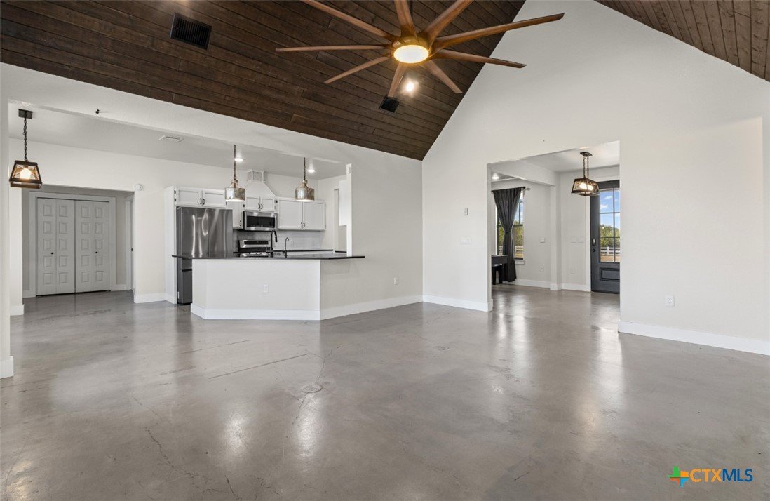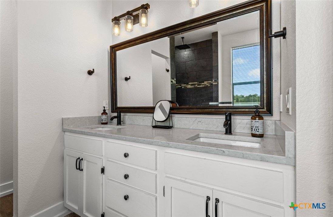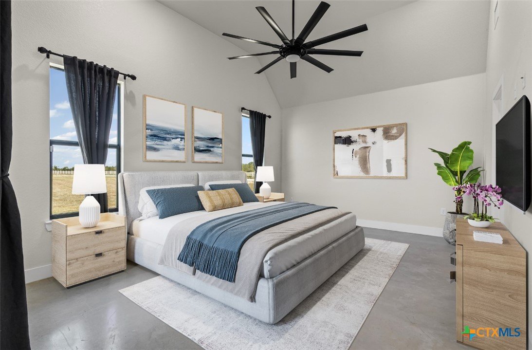 Welcome to your dream retreat at 821 Silent Valley Rd, Lockhart, TX, a stunning modern farmhouse built in 2018, nestled on 5 sprawling acres with minimal deed restrictions. This exquisite 4-bedroom +extra room and loft, 3.5-bathroom home features a thoughtful mother-in-law floorplan for added privacy, complemented by elegant black granite countertops in the kitchen, stylish stained concrete floors, and custom built-ins in the living room. Two dining rooms provide ample space for entertaining, while a large upstairs loft with a 1/2 bathroom and generous storage room/extra bedroom offers versatility as a home office, game room, or additional living area. The property is fully fenced and gated, complete with an automatic gate opener for seamless access, ensuring both security and convenience. A security system with cameras safeguards the premises, and a Tesla charging station caters to eco-conscious homeowners. The home also includes a water softener and a Kangen-style water filter under the kitchen sink, providing pure, high-quality water for your family. Step outside to relax on the expansive back porch, perfect for soaking in serene country views, and utilize the 2-car garage for vehicles or extra storage. Located in the heart of Lockhart, this home blends peaceful rural living with modern amenities and easy access to local conveniences. This home is minutes from downtown Lockhart, the toll road, and HEB! Don’t miss the chance to own this exceptional property—schedule your showing today! The home has been virtually staged, and the grass has been digitally edited to appear greener, showcasing its full potential