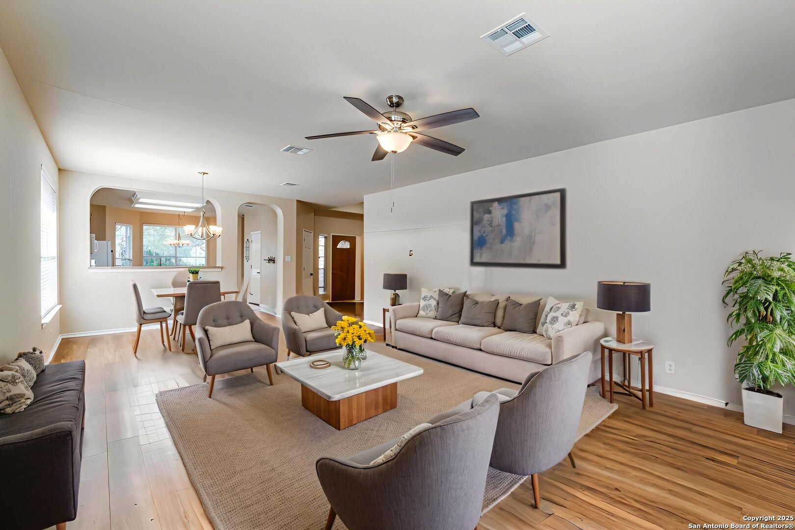 SELLER WILL PAY $2500 TOWARDS BUYERS CLOSING COSTS! This well-maintained, single level, 3-bedroom, 2 bath home offers 1,808 sq. ft., and is ideally located in the heart of New Braunfels, in close proximity to shopping, schools, medical care, restaurants, and parks. New roof 2021, new HVAC system 2022, new hot water tank 2025. The spacious kitchen has a pantry, new large cast-iron sink; and this along with an open layout are perfect for comfortable living. This home has a large primary suite, two large secondary bedrooms, and ample closets/storage. The level backyard has many beautiful trees, along with a covered patio. The refrigerator, water softener, and washer and dryer stay with the home!