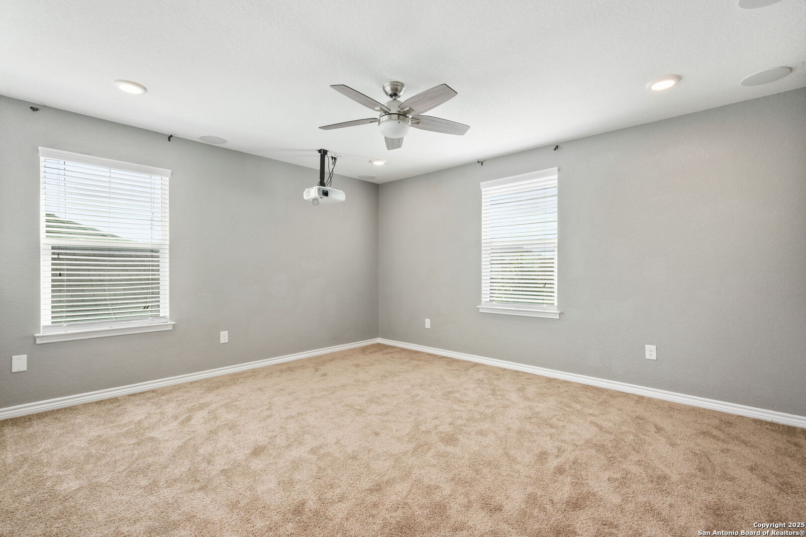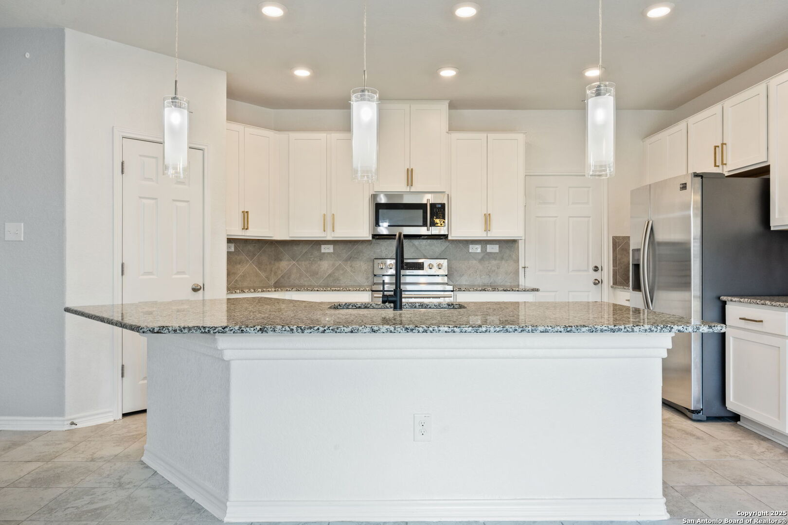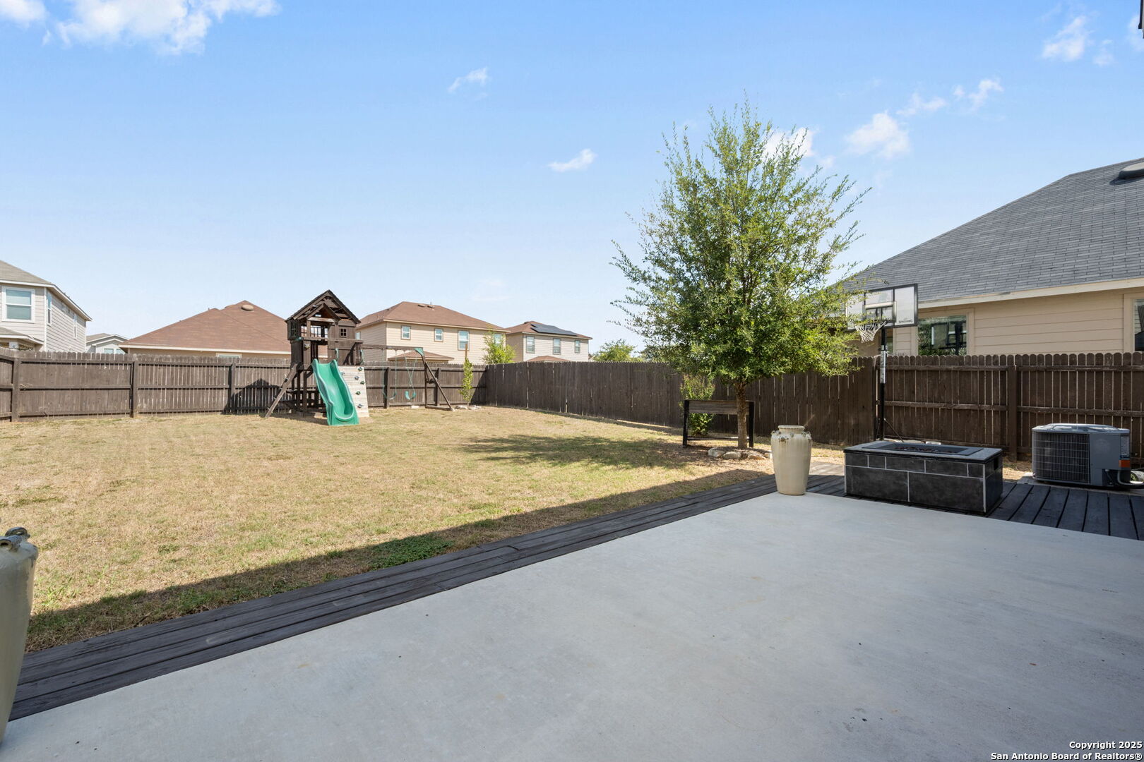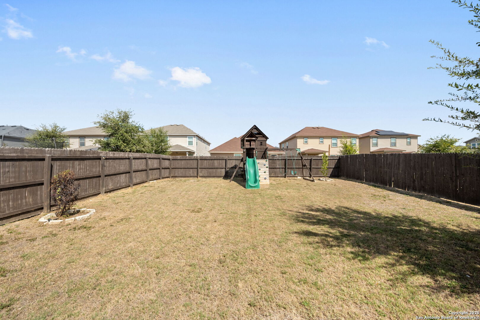 Welcome to 8212 Victory Cove, where thoughtful design and everyday comfort meet in perfect harmony. This beautifully maintained 3-bedroom, 2.5-bathroom home offers over 2,400 square feet of inviting living space, nestled on a spacious large cul-de-sac lot in the highly desirable Cross Creek neighborhood. Step inside and you'll be greeted by 9-foot ceilings, tile flooring, and an open-concept layout that creates a natural flow between the living, dining, and kitchen areas - ideal for hosting gatherings or simply enjoying family time. The spectacular kitchen is the heart of the home, featuring a large granite island, ample cabinetry, and coordinated appliances that make cooking both easy and elegant. A versatile downstairs flex room with frosted glass French doors offers a quiet space for a home office, studio, or playroom - the choice is yours. Upstairs, a spacious family loft provides the perfect retreat for movie nights or game days, complete with a projection screen and built-in speaker system for the ultimate entertainment experience. The primary suite is your private haven, offering generous proportions and a relaxing atmosphere designed for rest and renewal. Two additional bedrooms feature expansive closets, while a convenient upstairs laundry room adds modern practicality. Outdoors, enjoy a large backyard oasis designed for both play and relaxation - complete with a patio, fire pit, and a delightful children's playhouse. Whether you're entertaining guests or unwinding under the stars, this space delivers endless possibilities. Located in the heart of Cross Creek, this home combines peaceful suburban living with proximity to top-rated schools, parks, shopping, and major thoroughfares, giving you easy access to everything San Antonio has to offer. 8212 Victory Cove is more than a house - it's a lifestyle of comfort, convenience, and connection.