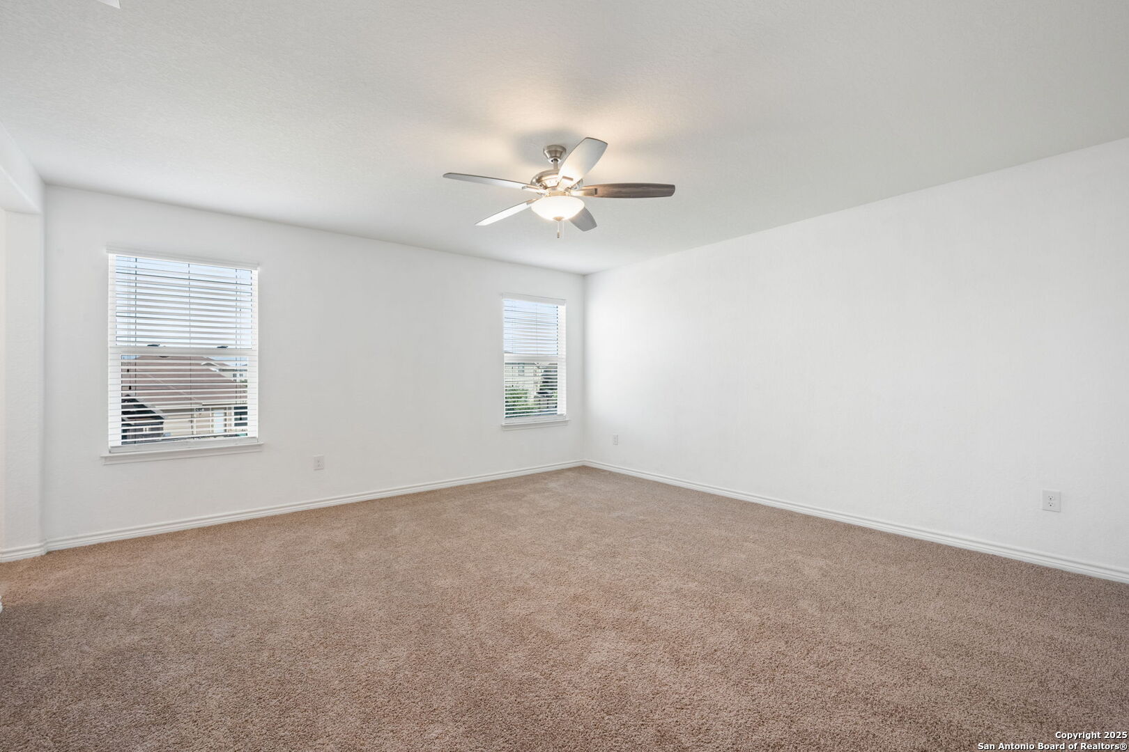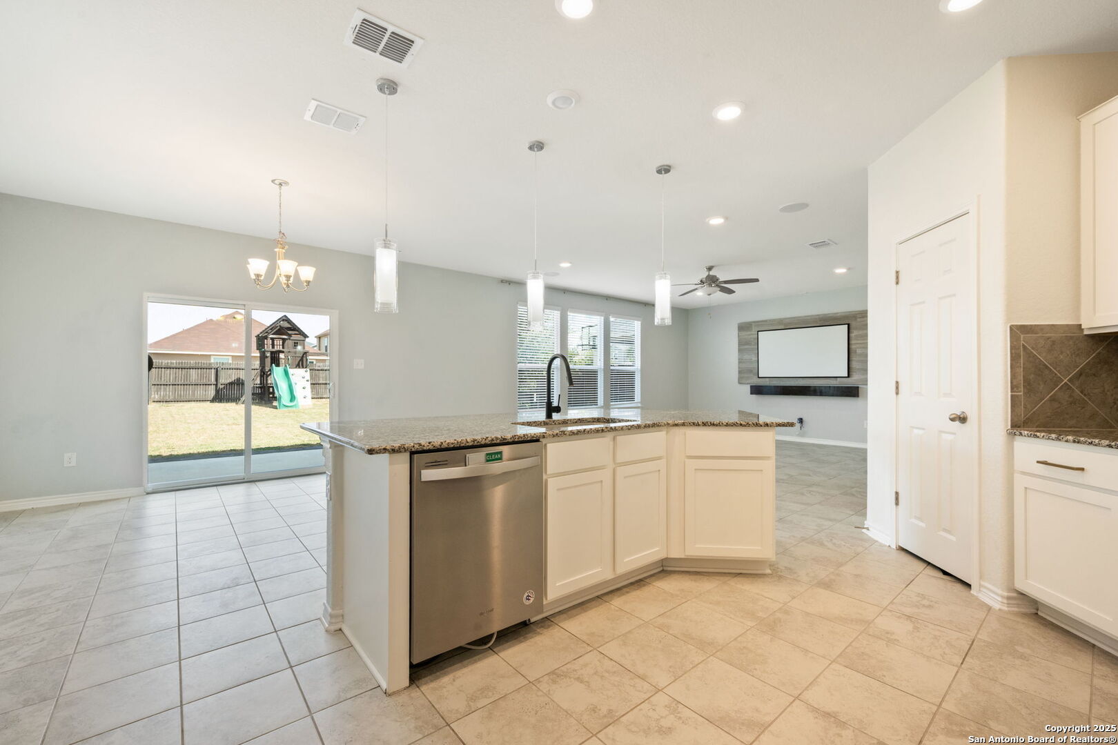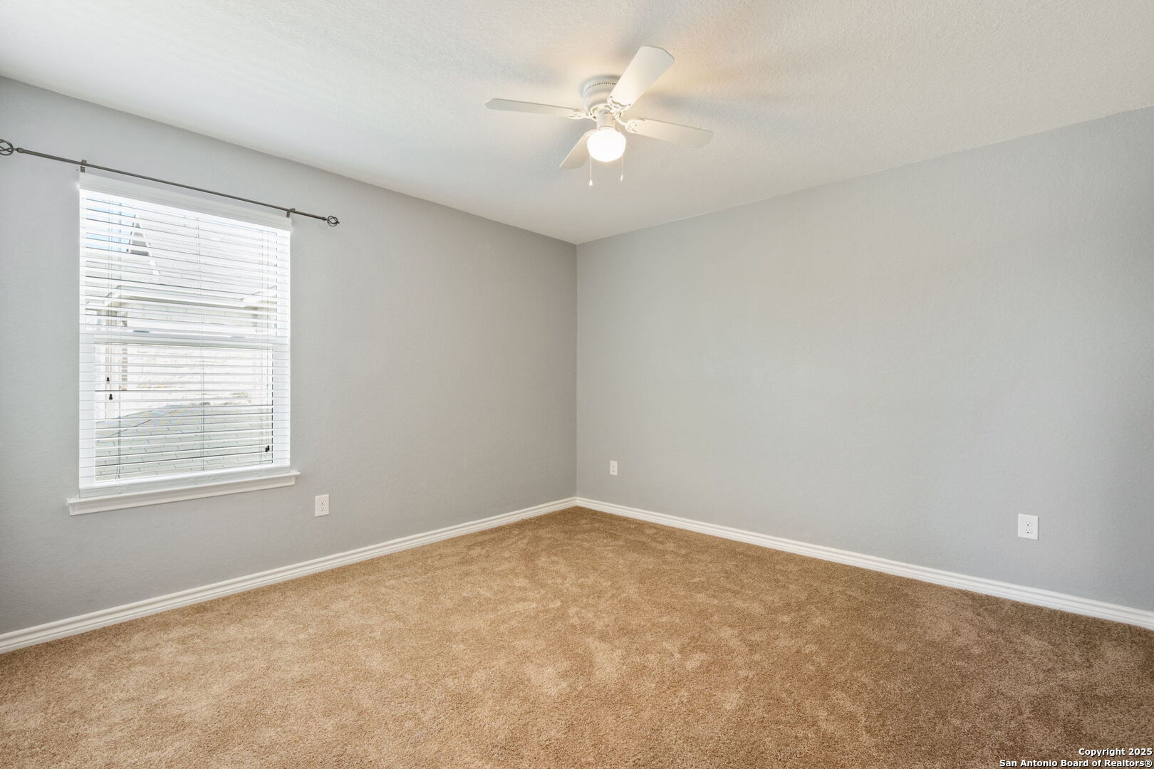 Welcome to 8212 Victory Cove, where thoughtful design and everyday comfort meet in perfect harmony. This beautifully maintained 3-bedroom, 2.5-bathroom home offers over 2,400 square feet of inviting living space, nestled on a spacious large cul-de-sac lot in the highly desirable Cross Creek neighborhood. Step inside and you'll be greeted by 9-foot ceilings, tile flooring, and an open-concept layout that creates a natural flow between the living, dining, and kitchen areas - ideal for hosting gatherings or simply enjoying family time. The spectacular kitchen is the heart of the home, featuring a large granite island, ample cabinetry, and coordinated appliances that make cooking both easy and elegant. A versatile downstairs flex room with frosted glass French doors offers a quiet space for a home office, studio, or playroom - the choice is yours. Upstairs, a spacious family loft provides the perfect retreat for movie nights or game days, complete with a projection screen and built-in speaker system for the ultimate entertainment experience. The primary suite is your private haven, offering generous proportions and a relaxing atmosphere designed for rest and renewal. Two additional bedrooms feature expansive closets, while a convenient upstairs laundry room adds modern practicality. Outdoors, enjoy a large backyard oasis designed for both play and relaxation - complete with a patio, fire pit, and a delightful children's playhouse. Whether you're entertaining guests or unwinding under the stars, this space delivers endless possibilities. Located in the heart of Cross Creek, this home combines peaceful suburban living with proximity to top-rated schools, parks, shopping, and major thoroughfares, giving you easy access to everything San Antonio has to offer. 8212 Victory Cove is more than a house - it's a lifestyle of comfort, convenience, and connection.