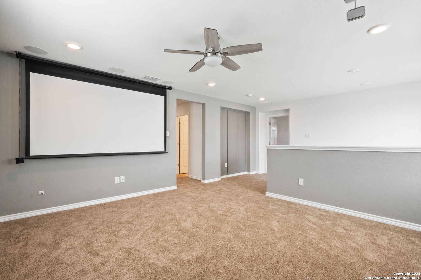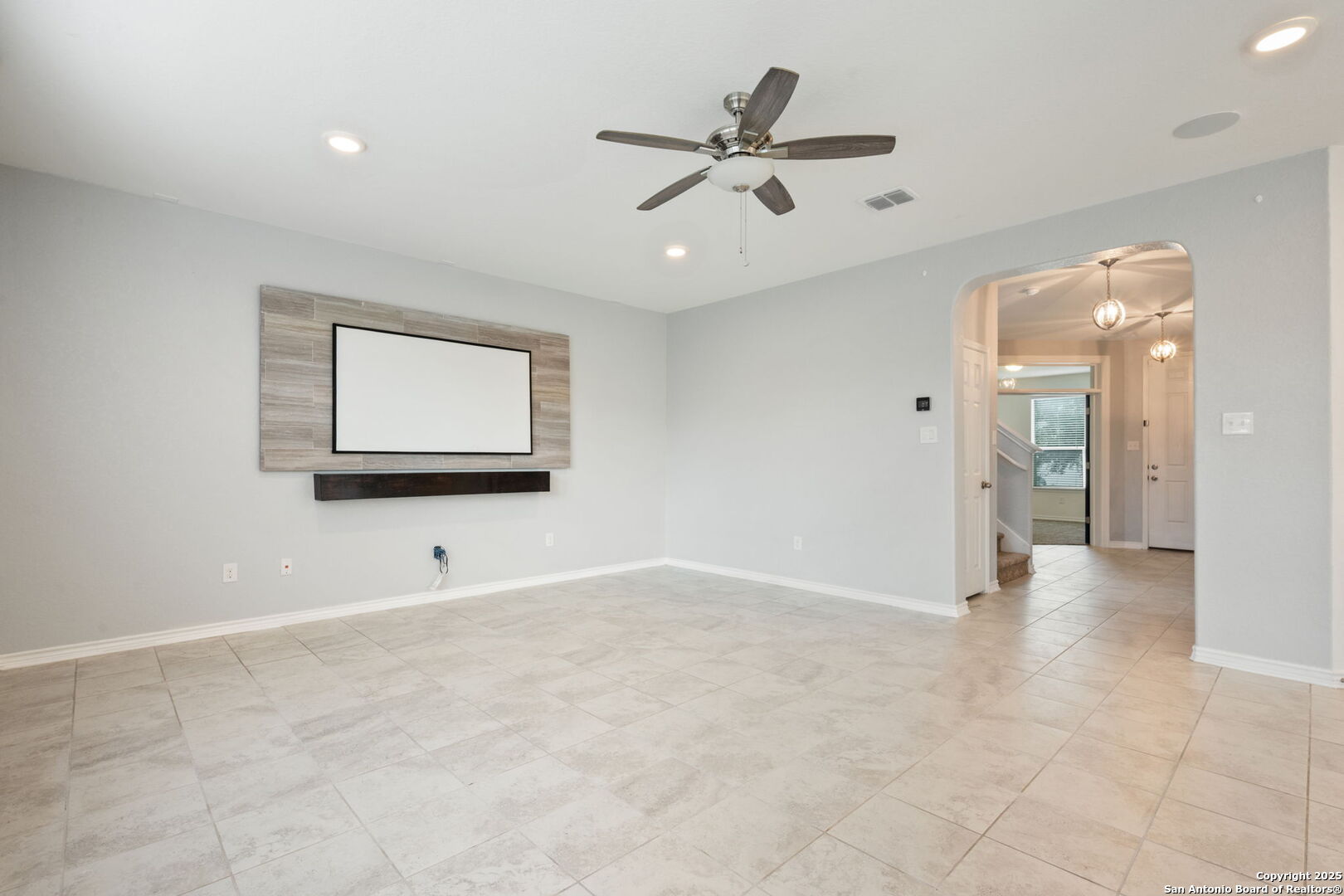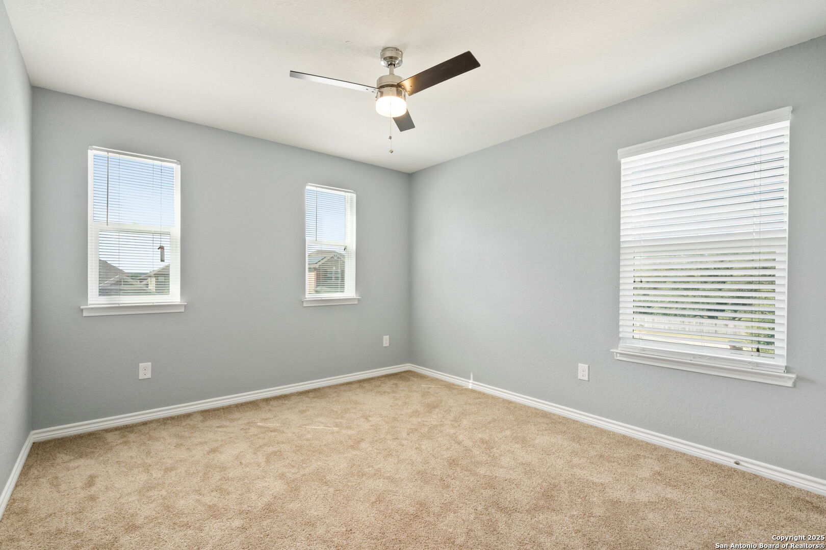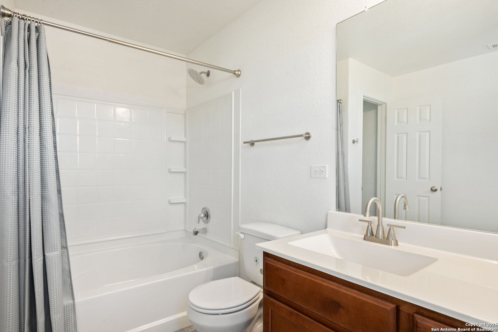 Welcome to 8212 Victory Cove, where thoughtful design and everyday comfort meet in perfect harmony. This beautifully maintained 3-bedroom, 2.5-bathroom home offers over 2,400 square feet of inviting living space, nestled on a spacious large cul-de-sac lot in the highly desirable Cross Creek neighborhood. Step inside and you'll be greeted by 9-foot ceilings, tile flooring, and an open-concept layout that creates a natural flow between the living, dining, and kitchen areas - ideal for hosting gatherings or simply enjoying family time. The spectacular kitchen is the heart of the home, featuring a large granite island, ample cabinetry, and coordinated appliances that make cooking both easy and elegant. A versatile downstairs flex room with frosted glass French doors offers a quiet space for a home office, studio, or playroom - the choice is yours. Upstairs, a spacious family loft provides the perfect retreat for movie nights or game days, complete with a projection screen and built-in speaker system for the ultimate entertainment experience. The primary suite is your private haven, offering generous proportions and a relaxing atmosphere designed for rest and renewal. Two additional bedrooms feature expansive closets, while a convenient upstairs laundry room adds modern practicality. Outdoors, enjoy a large backyard oasis designed for both play and relaxation - complete with a patio, fire pit, and a delightful children's playhouse. Whether you're entertaining guests or unwinding under the stars, this space delivers endless possibilities. Located in the heart of Cross Creek, this home combines peaceful suburban living with proximity to top-rated schools, parks, shopping, and major thoroughfares, giving you easy access to everything San Antonio has to offer. 8212 Victory Cove is more than a house - it's a lifestyle of comfort, convenience, and connection.
