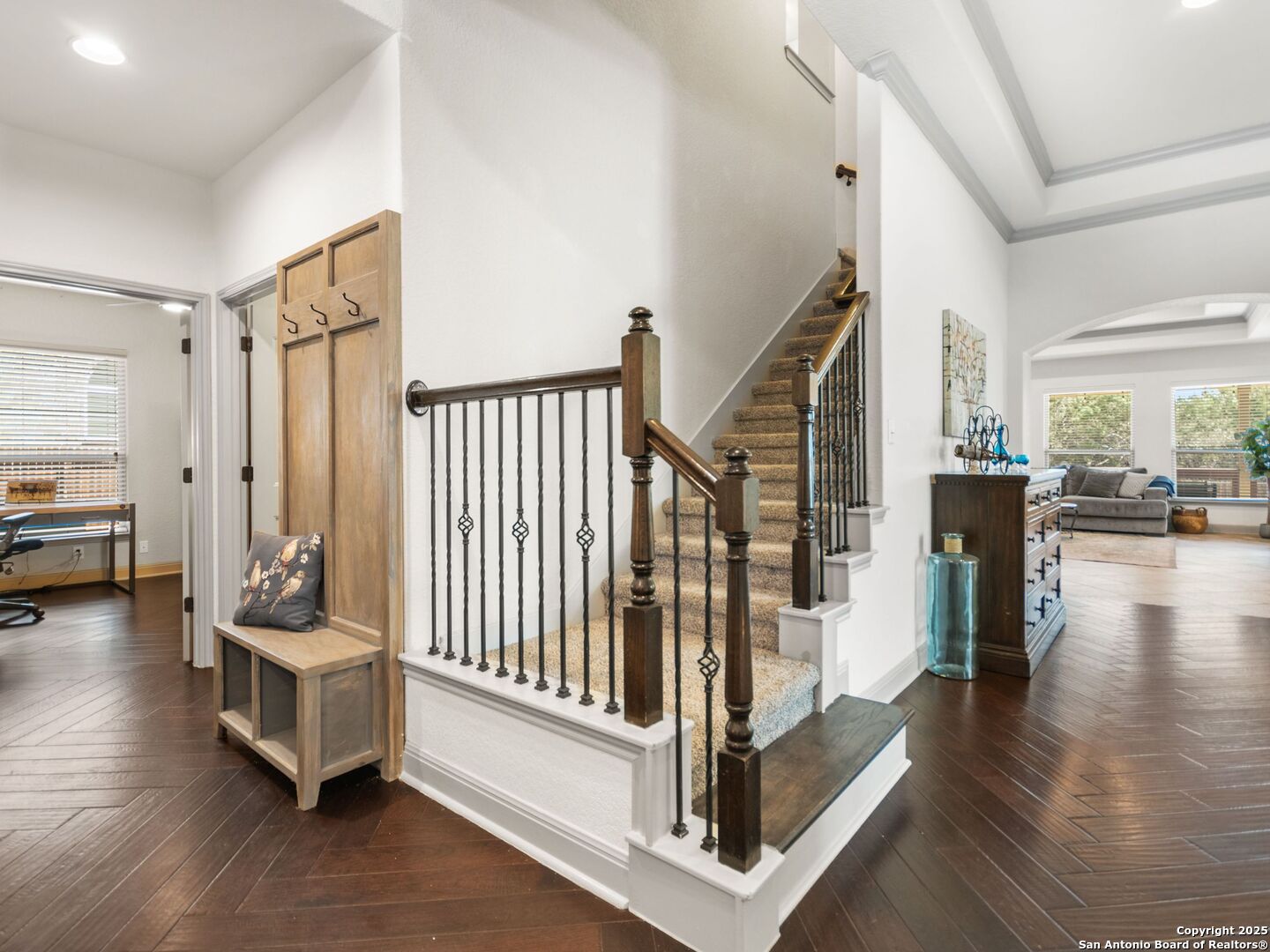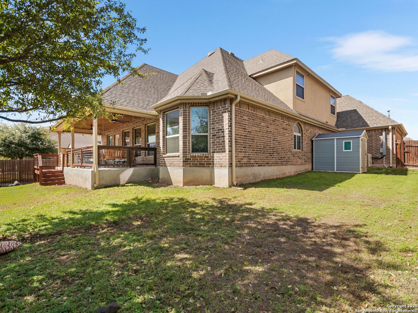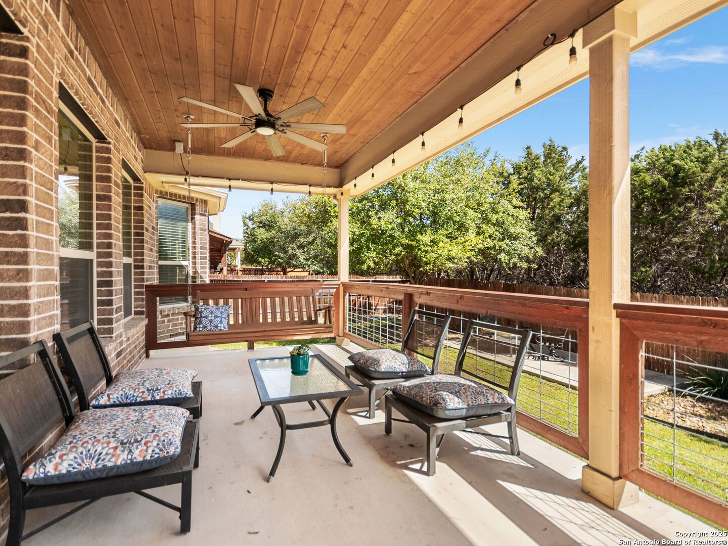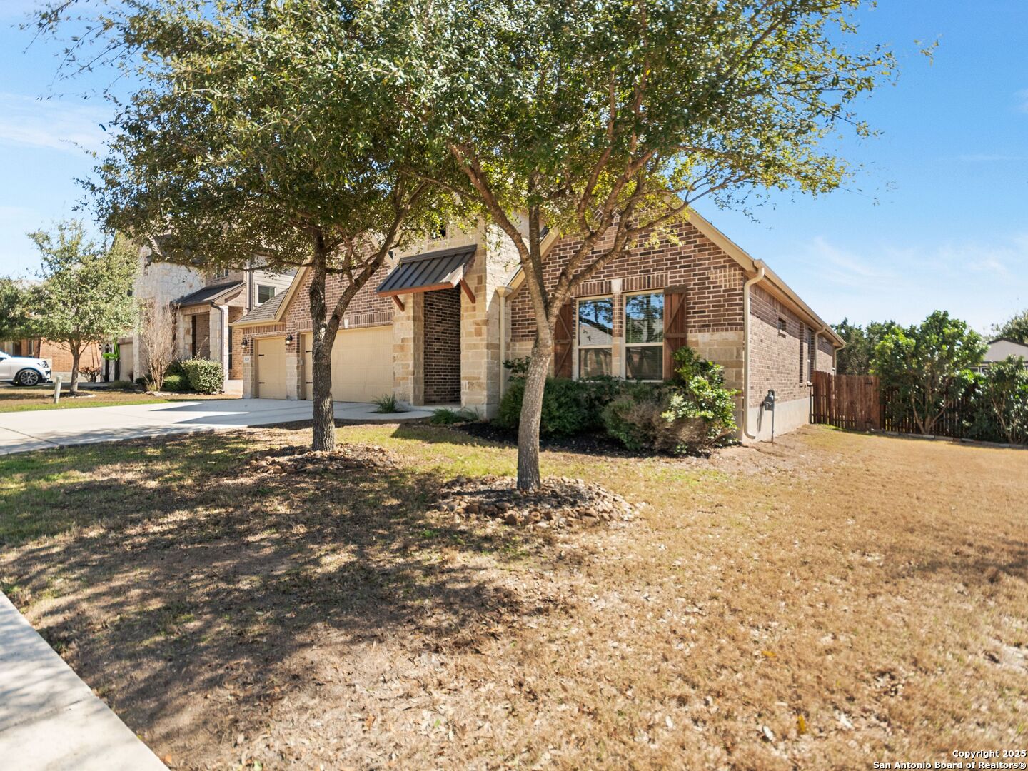 Welcome to this stunning two-story home located within the highly sought-after Boerne ISD. As you step inside, you'll be greeted by an open floor plan with soaring ceilings, creating a warm and inviting atmosphere. The home features 3 spacious bedrooms and 2 full bathrooms on the main floor, along with a dedicated study and a large, open kitchen. The chef's kitchen boasts stainless steel appliances, granite countertops, gas cooking, and a generous island perfect for meal prep or casual dining. The large master suite is located at the back of the home, offering peaceful views of the backyard, along with a well-appointed master bath and an expansive closet. Upstairs, you'll find a large game room and a guest bedroom with its own full bathroom, providing privacy and comfort for visitors. Step outside to a wonderful entertaining space, featuring a large covered patio, an outdoor kitchen, and a back slab with a firepit area - perfect for relaxing or hosting gatherings. This property backs up to a serene green space, ensuring peace and tranquility in your backyard. There's a three-car garage with an A/C splitter installed, along with a TV, making it ideal for a workout room or man cave.Welcome home!