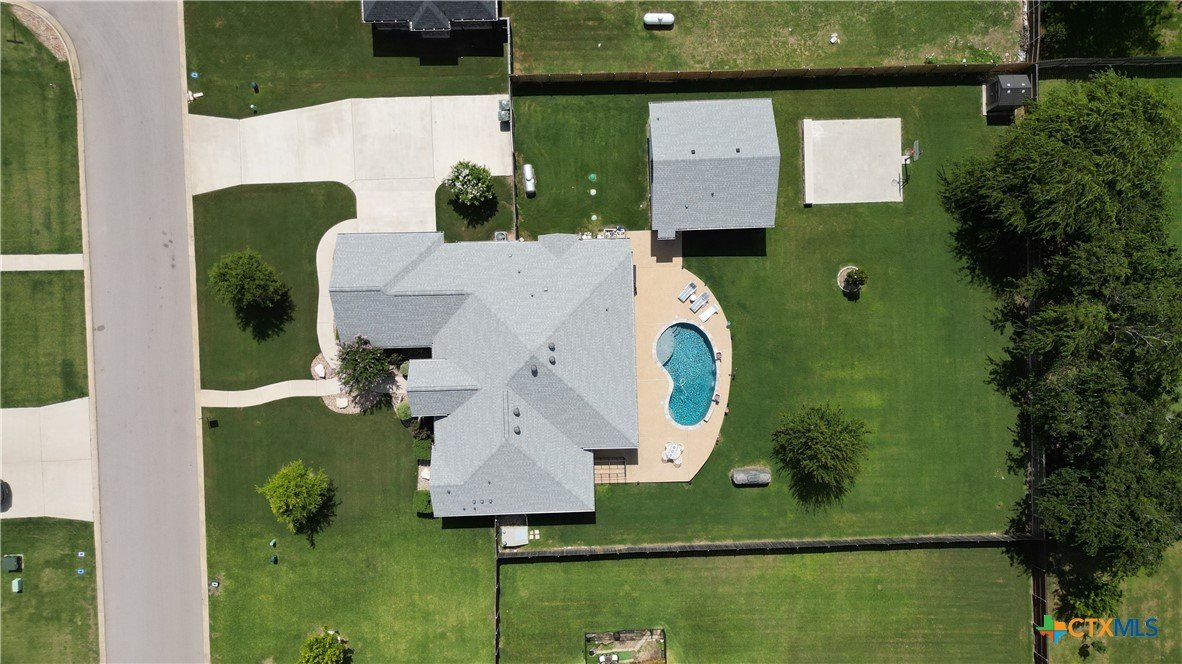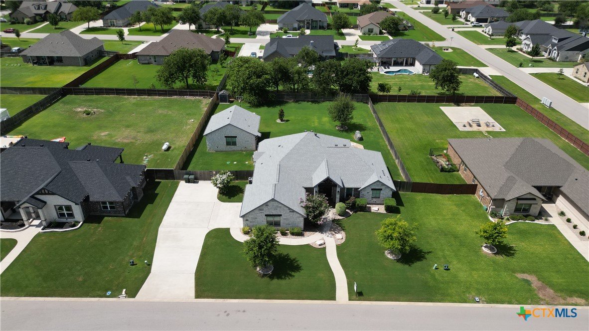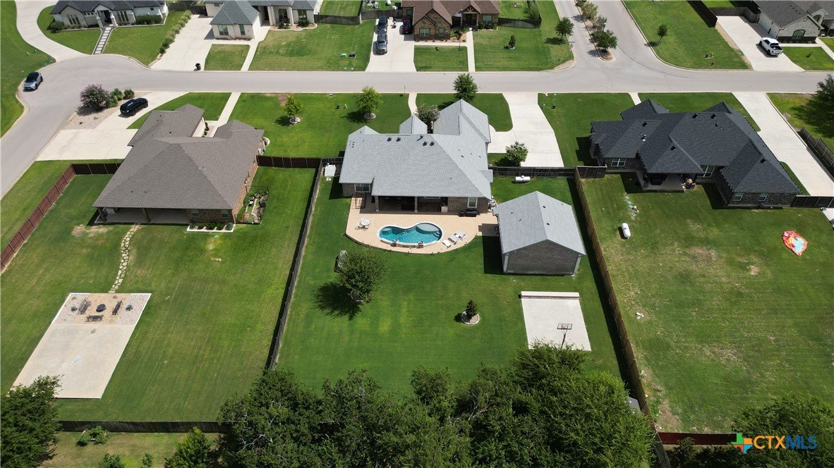 This home is ONE-OF-A-KIND thanks to its PRIVATE casita, offering EXTRA space and versatility for GUESTS or ENTERTAINMENT. The separate 784 square-foot CASITA includes a kitchenette, one bedroom, one bathroom, and a dining or game area. Step into your private BACKYARD OASIS featuring a HEATED POOL for year-round enjoyment and a BASKETBALL COURT! The MAIN home features 4 bedrooms, 2.5 bathrooms, and 2,515 square-feet of living space, highlighted by a EXTRA room at the front that can serve as an OFFICE or FLEX SPACE. A SPACIOUS laundry room equipped with a sink and ample cabinetry for added functionality and storage. A STORM SHELTER provides PEACE OF MIND during inclement weather. This SALADO GEM is nestled on a LARGE .5 ACRE lot in the desirable Spring Creek Subdivision and offers the IDEAL combination of style and relaxation. Don’t miss the OPPORTUNITY to make this exceptional home yours!