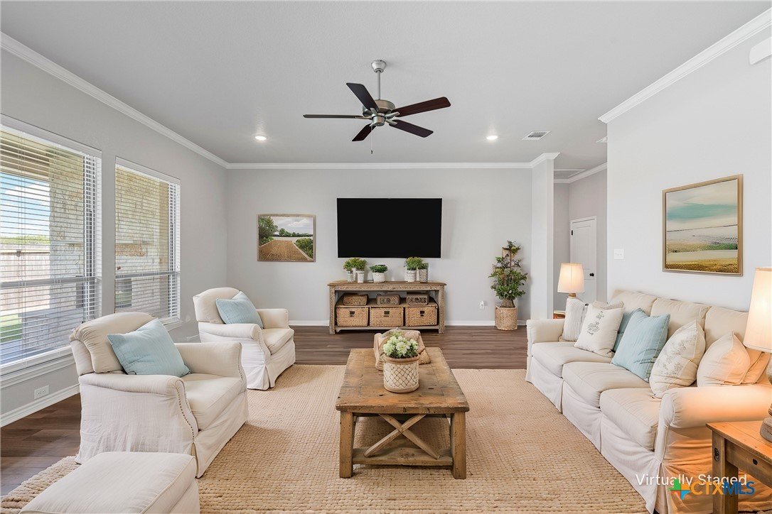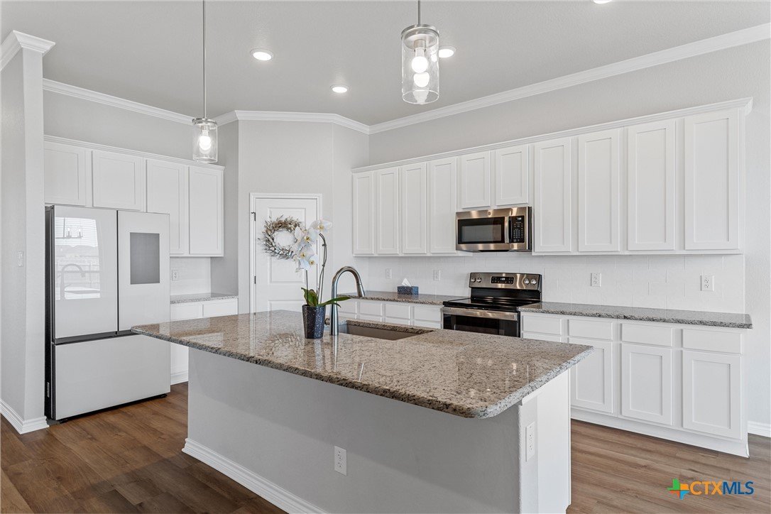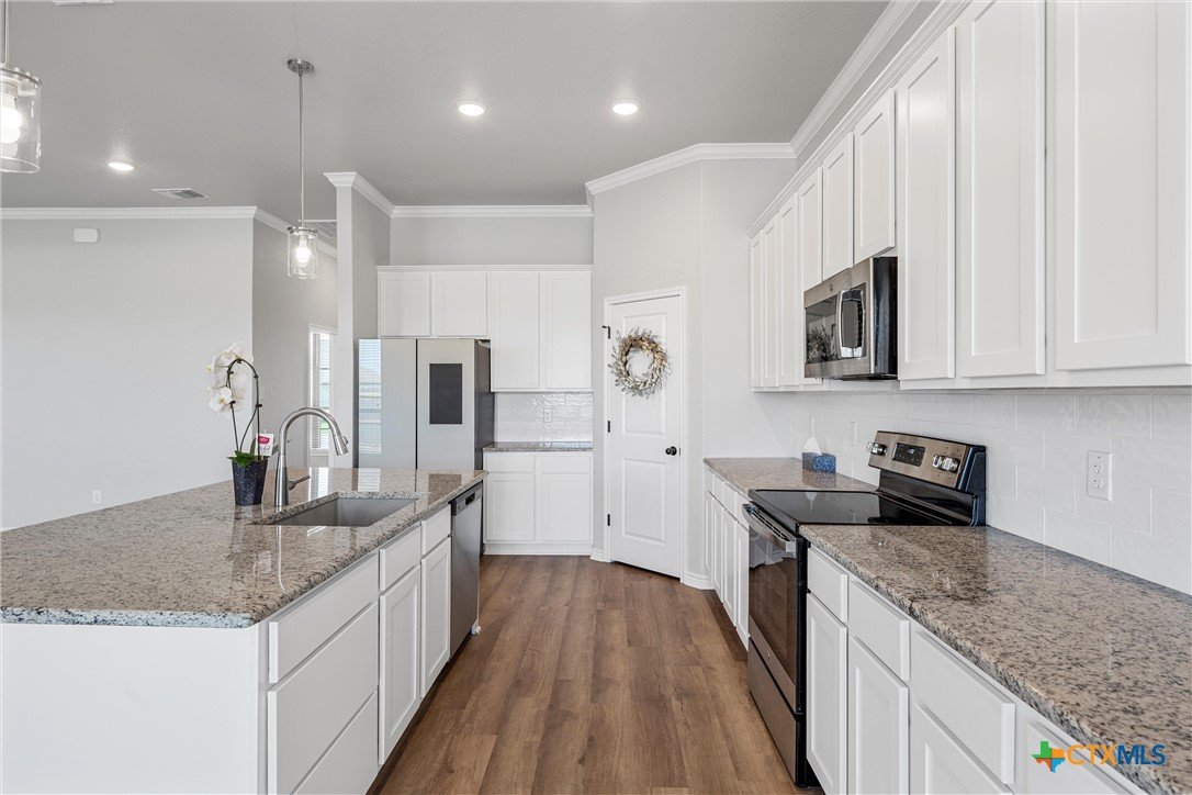 Discover this immaculate 4-bedroom, 2-bathroom residence nestled in the prestigious Belton ISD, within the tranquil Groves at Lakewood Ranch Phase VI community. Positioned strategically on a desirable corner lot, this barely lived-in property exudes a like-new charm. Upon entering, you are greeted by an expansive open floor plan designed to accommodate contemporary living. The generous living area flows effortlessly into a modern kitchen, boasting high-end finishes and abundant counter space—perfect for everyday dining and elegant entertaining. Each of the four sizable bedrooms features ample closet space, ensuring both comfort and practicality. Outside, the thoughtfully designed exterior provides a versatile setting, ready to be tailored to your preferences. The two-car garage not only offers ample storage but also enhances the property's functionality. Seize this remarkable opportunity to own an exceptional home in a premier location.