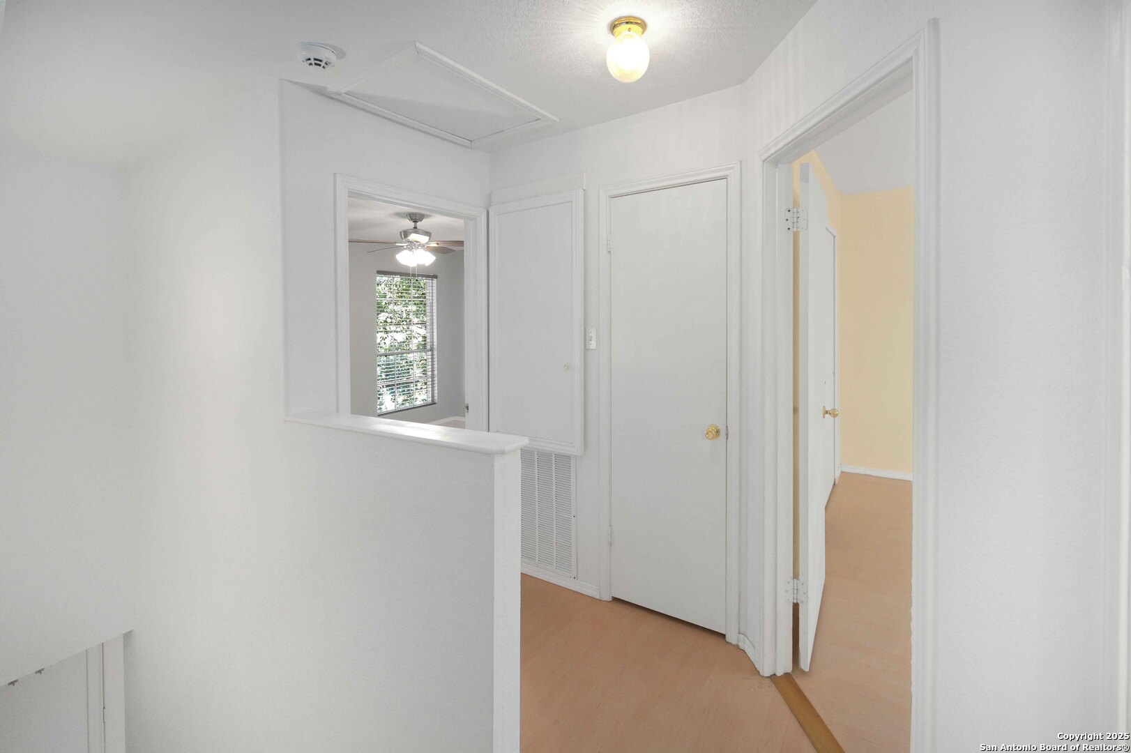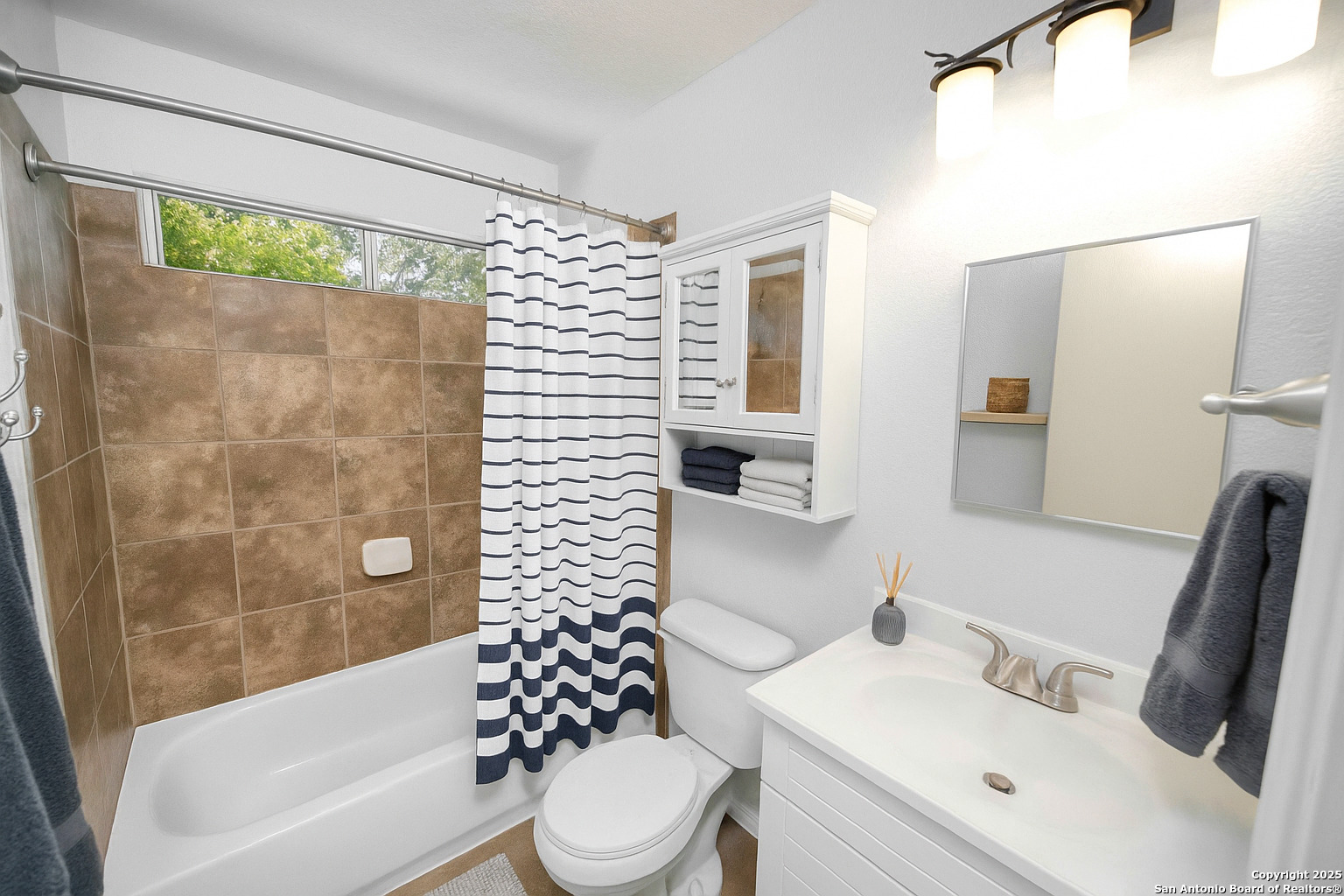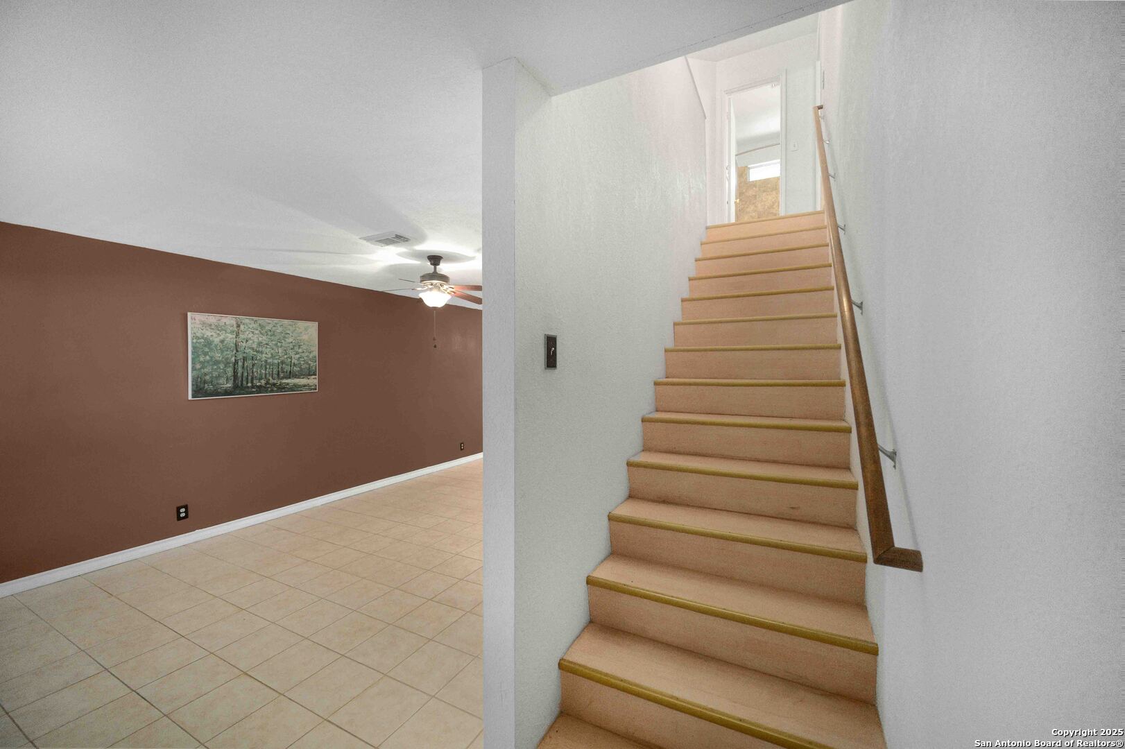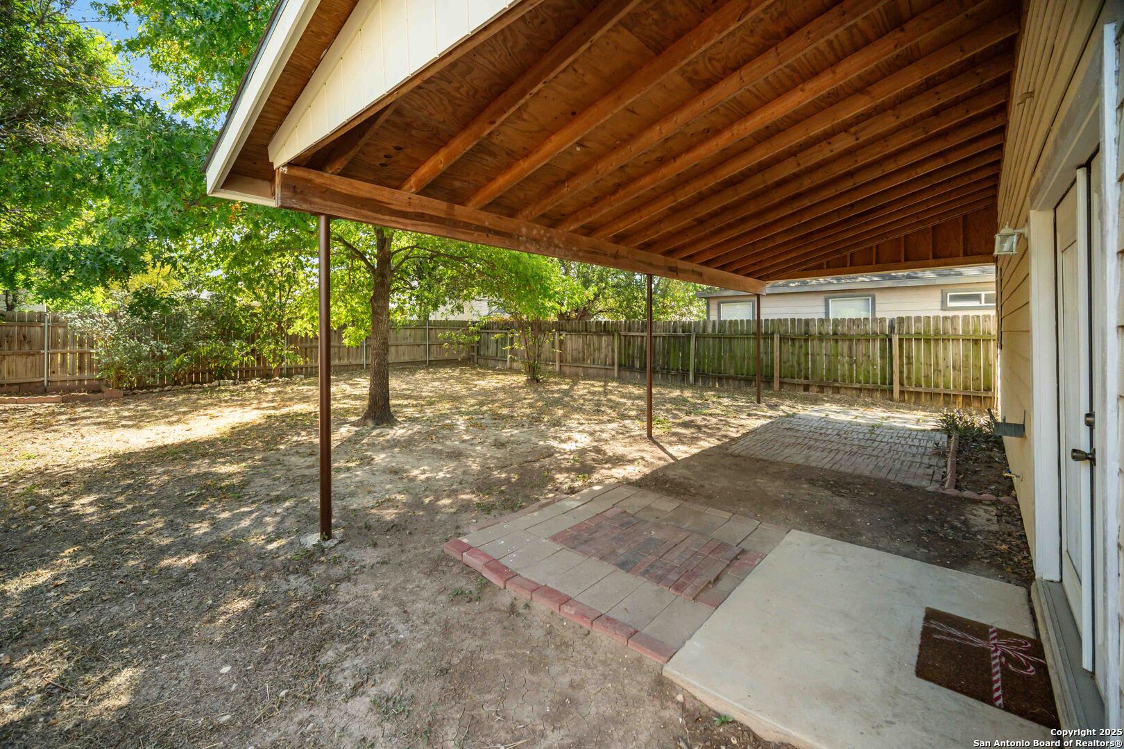 Discover this move-in ready 3 bedroom, 2 bath home offering 1,500 square feet of functional living space in a great San Antonio location. The open layout on the main floor connects a spacious living area with a bright kitchen featuring stainless steel appliances, abundant cabinet space, and plenty of room for meal prep or casual dining. Upstairs, all bedrooms are thoughtfully placed together, including a generous primary suite with a walk-in closet and large windows that fill the space with natural light. The secondary bedrooms provide flexibility for guests, an office, or a playroom. Step outside to a covered patio perfect for summer cookouts or quiet evenings in the shade. The fenced backyard offers mature trees and plenty of space to relax, play, or garden. Centrally located near shopping, dining, and major highways, this home delivers the ideal mix of comfort, convenience, and value in one of San Antonio's established neighborhoods.