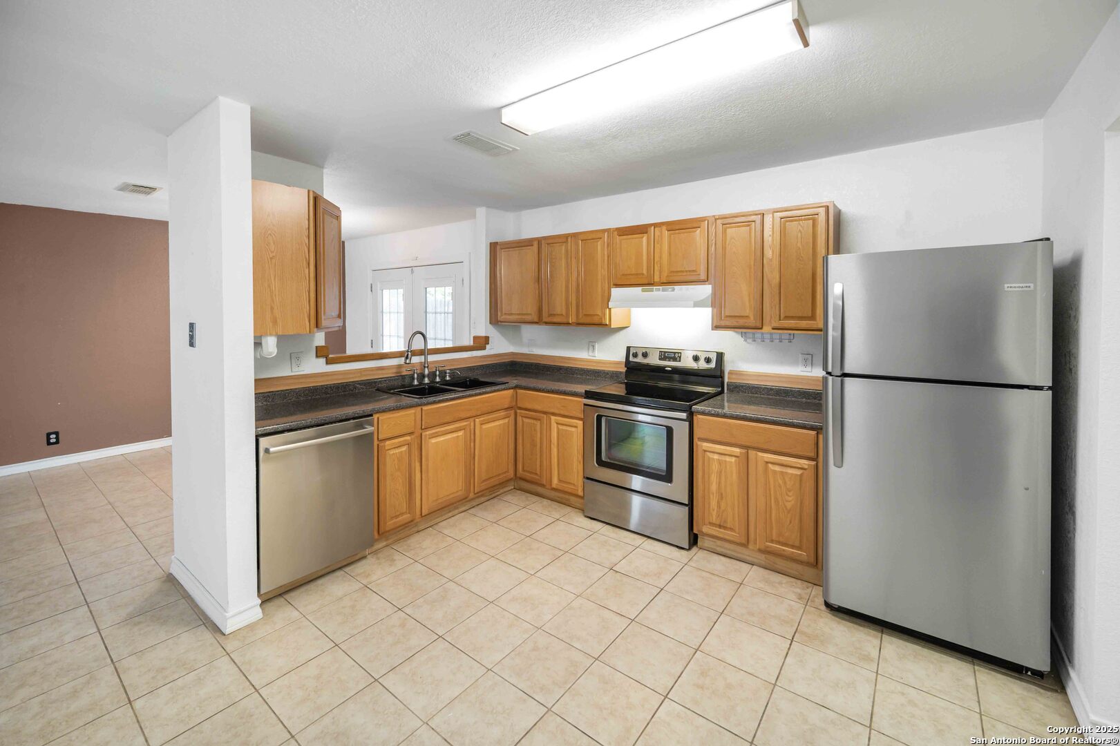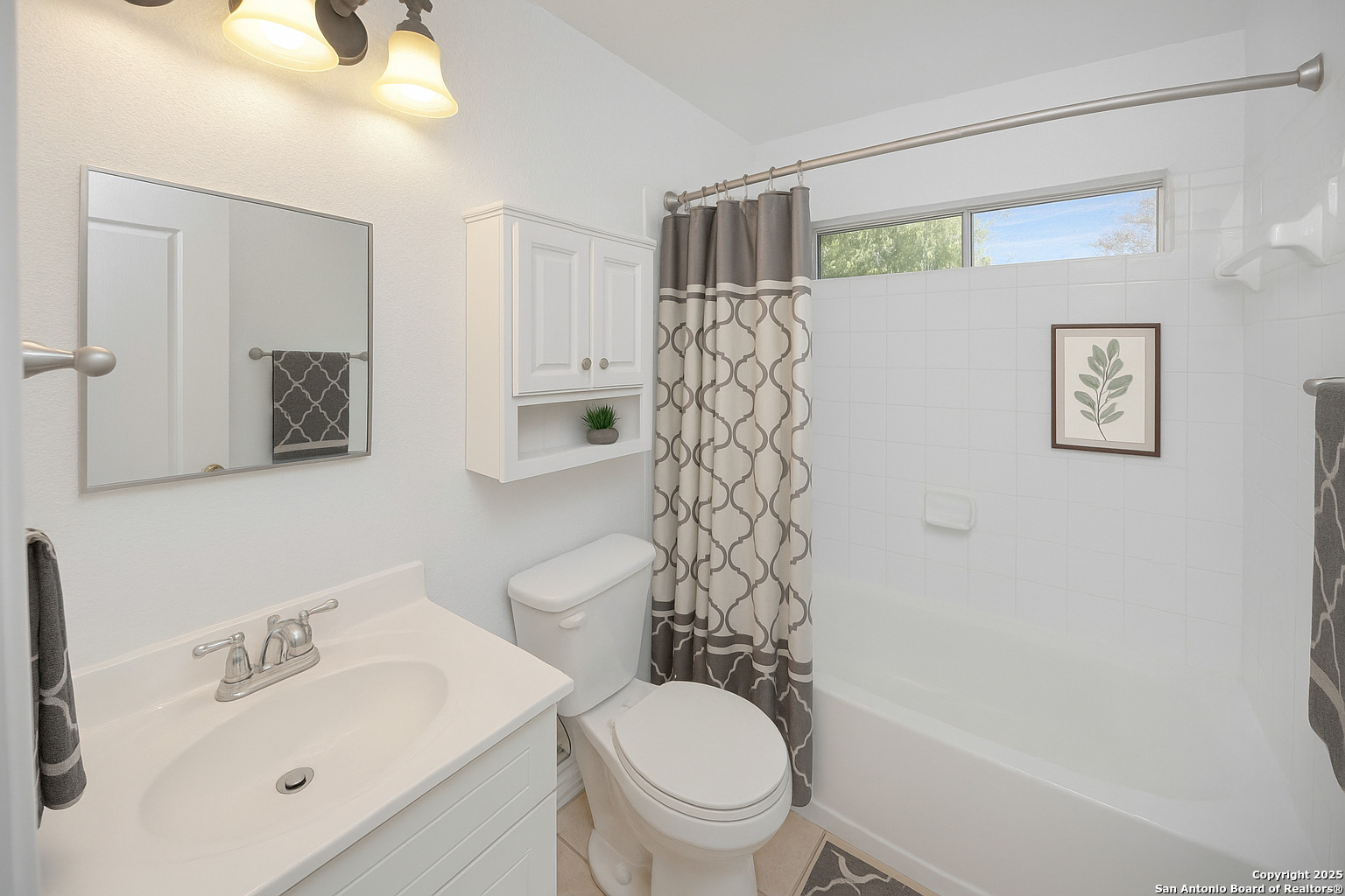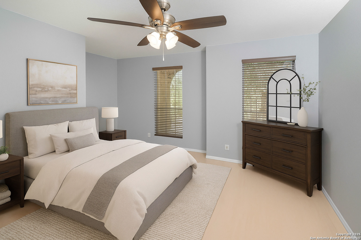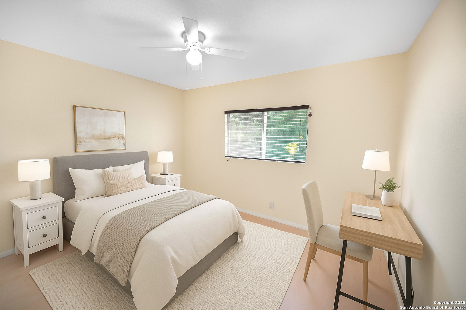 Discover this move-in ready 3 bedroom, 2 bath home offering 1,500 square feet of functional living space in a great San Antonio location. The open layout on the main floor connects a spacious living area with a bright kitchen featuring stainless steel appliances, abundant cabinet space, and plenty of room for meal prep or casual dining. Upstairs, all bedrooms are thoughtfully placed together, including a generous primary suite with a walk-in closet and large windows that fill the space with natural light. The secondary bedrooms provide flexibility for guests, an office, or a playroom. Step outside to a covered patio perfect for summer cookouts or quiet evenings in the shade. The fenced backyard offers mature trees and plenty of space to relax, play, or garden. Centrally located near shopping, dining, and major highways, this home delivers the ideal mix of comfort, convenience, and value in one of San Antonio's established neighborhoods.