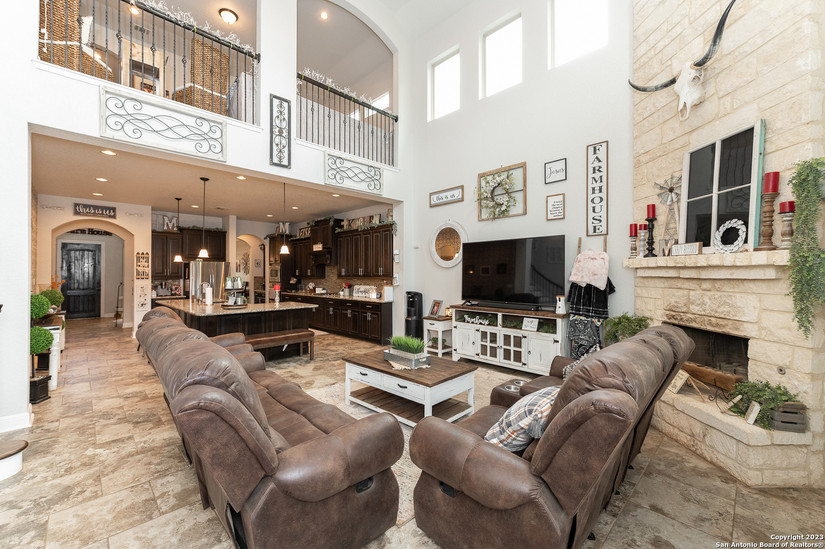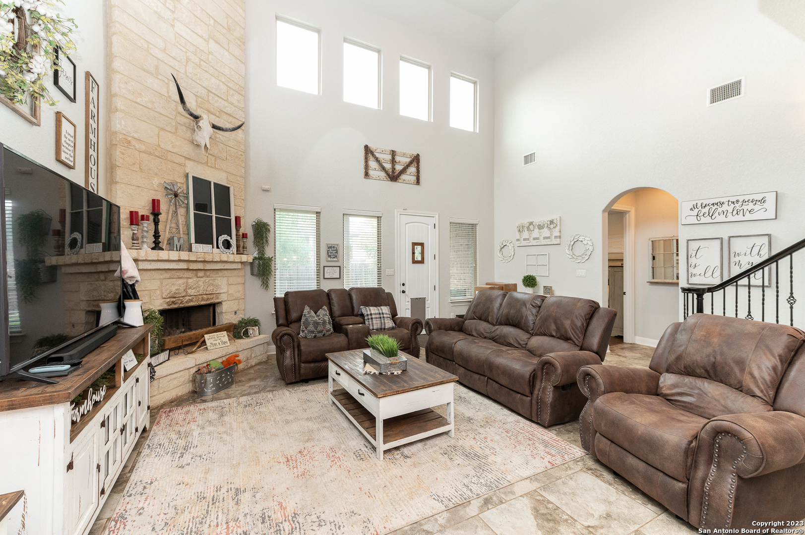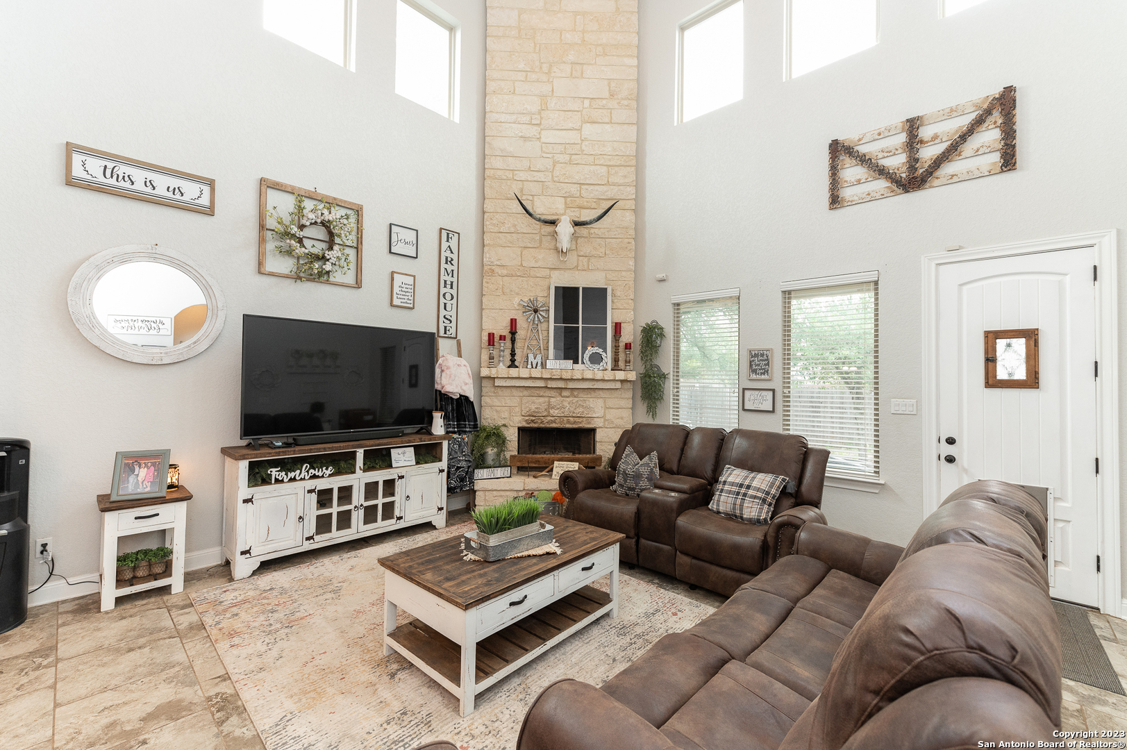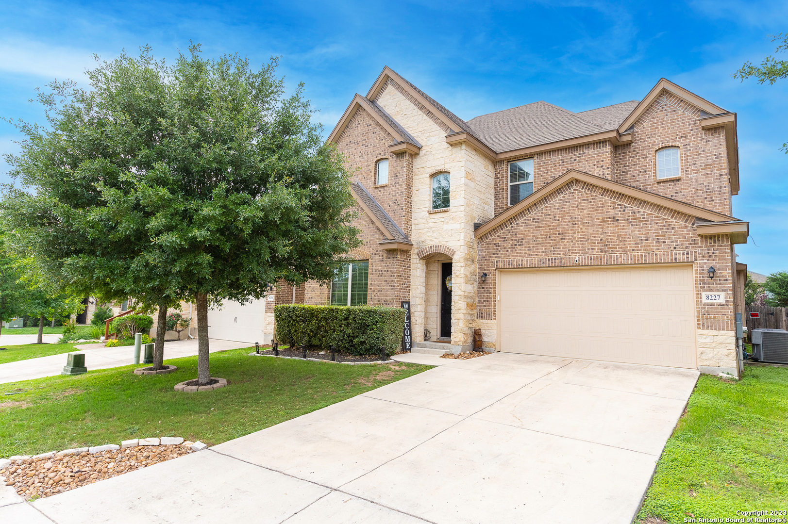 Welcome to 8227 Marigold Falls nestled in the gated subdivision of Fallbrook in Boerne Texas! This timeless home features 4 bedrooms, 3.5 baths, and a two-car garage. This generously sized 3107 square foot home embraces open spaces and a modern floorplan. Entertainers, chef-style kitchen with stainless appliances, granite, gas cooking range, and an oversized island/bar. Custom features & upgrades to include vaulted ceilings, 8-foot doors, and a gorgeous stone fireplace. This home is a showstopper! The primary suite is located downstairs. Walk to the community lagoon pool and park. Commuters will love the easy access to SA & Boerne.