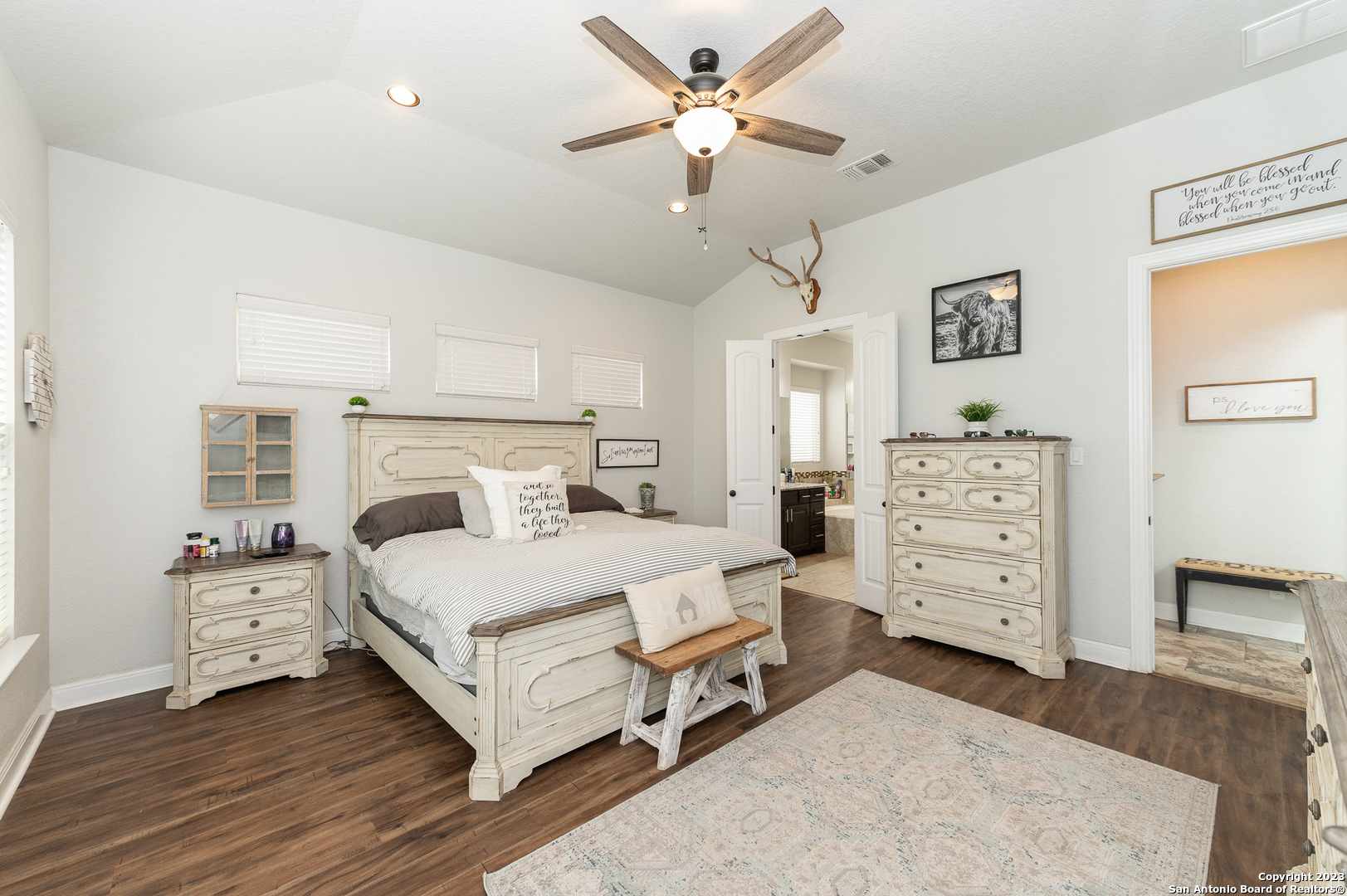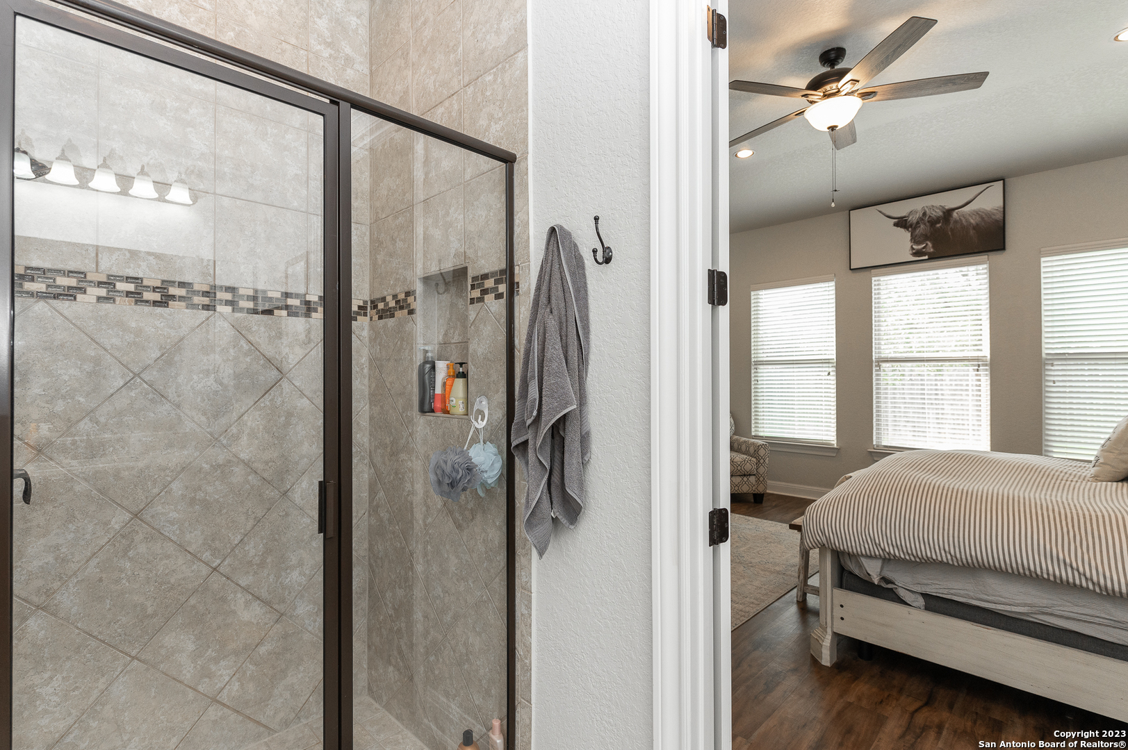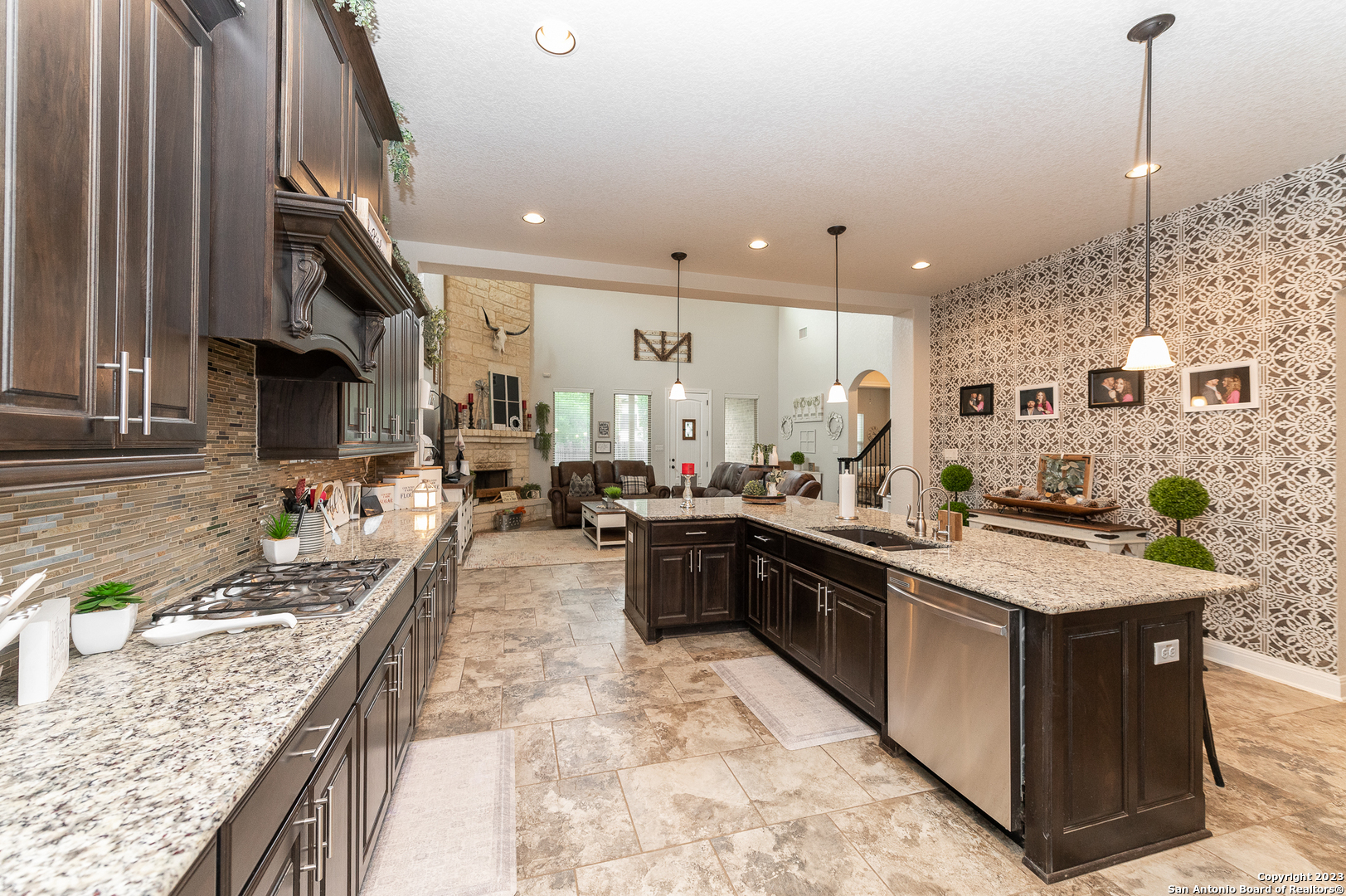 Welcome to 8227 Marigold Falls nestled in the gated subdivision of Fallbrook in Boerne Texas! This timeless home features 4 bedrooms, 3.5 baths, and a two-car garage. This generously sized 3107 square foot home embraces open spaces and a modern floorplan. Entertainers, chef-style kitchen with stainless appliances, granite, gas cooking range, and an oversized island/bar. Custom features & upgrades to include vaulted ceilings, 8-foot doors, and a gorgeous stone fireplace. This home is a showstopper! The primary suite is located downstairs. Walk to the community lagoon pool and park. Commuters will love the easy access to SA & Boerne.
