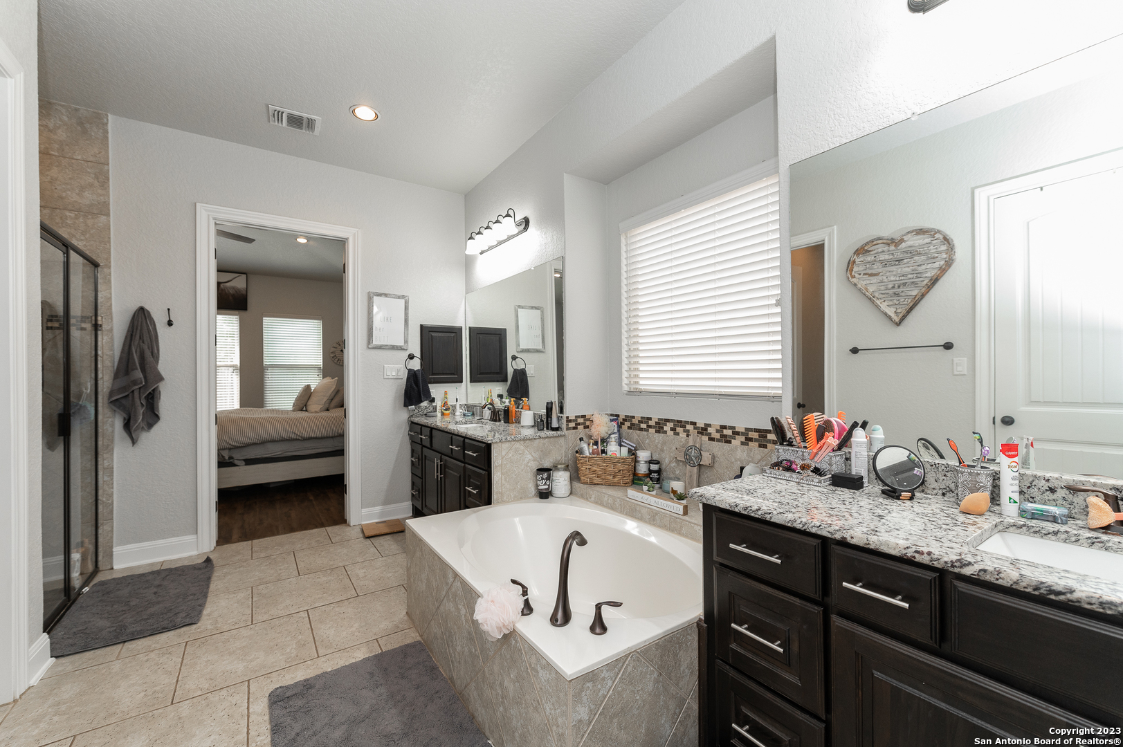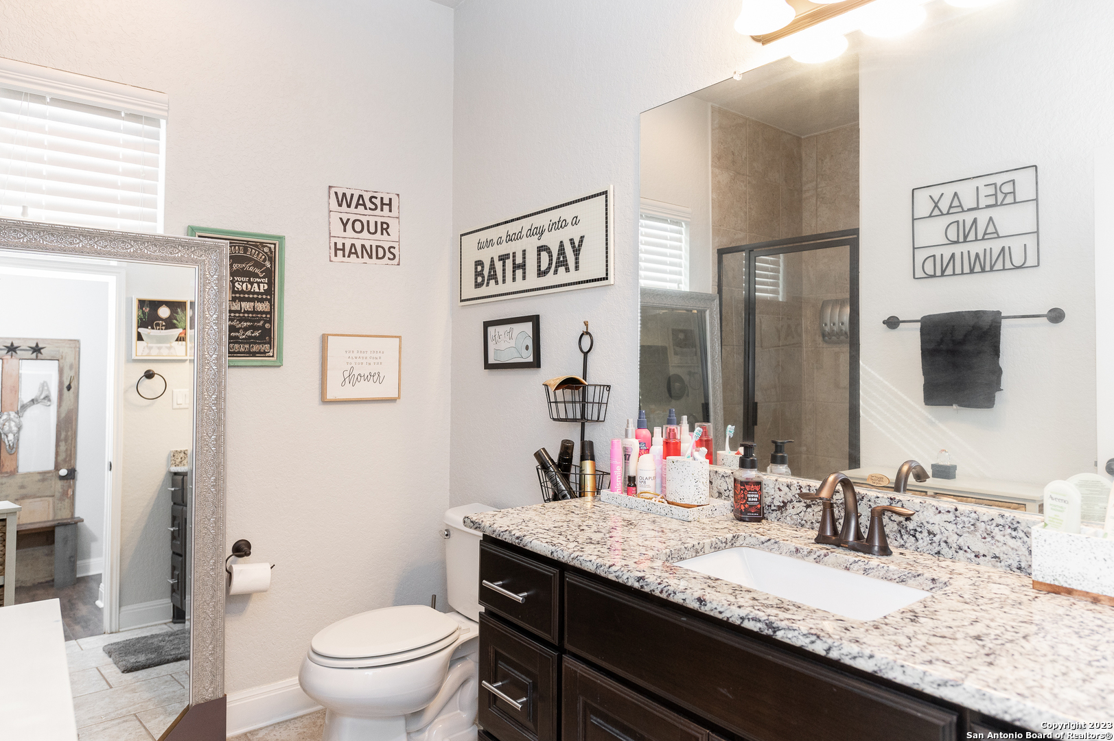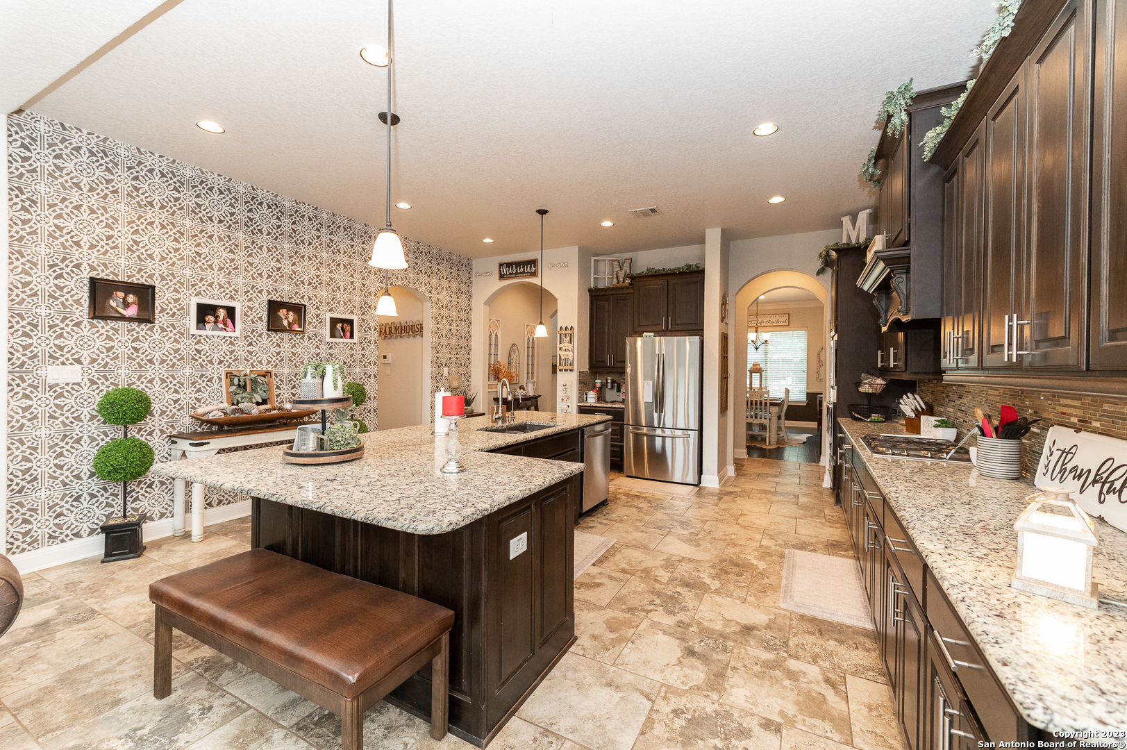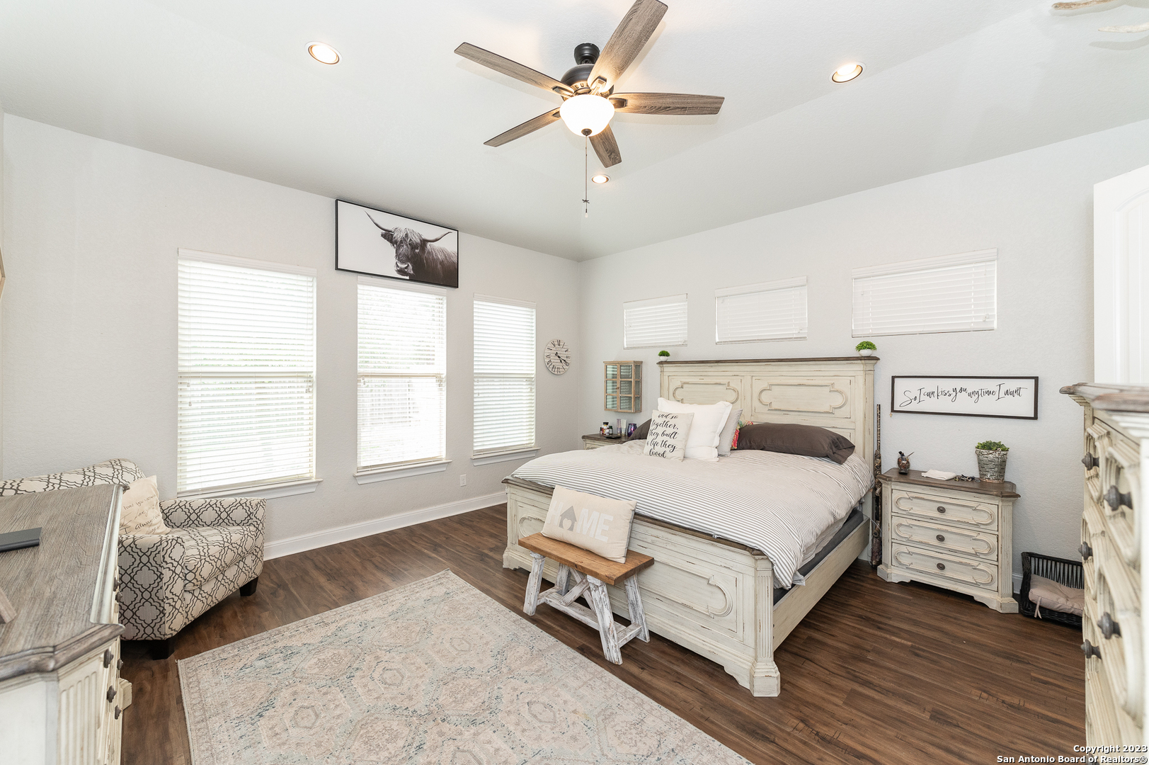 Welcome to 8227 Marigold Falls nestled in the gated subdivision of Fallbrook in Boerne Texas! This timeless home features 4 bedrooms, 3.5 baths, and a two-car garage. This generously sized 3107 square foot home embraces open spaces and a modern floorplan. Entertainers, chef-style kitchen with stainless appliances, granite, gas cooking range, and an oversized island/bar. Custom features & upgrades to include vaulted ceilings, 8-foot doors, and a gorgeous stone fireplace. This home is a showstopper! The primary suite is located downstairs. Walk to the community lagoon pool and park. Commuters will love the easy access to SA & Boerne.