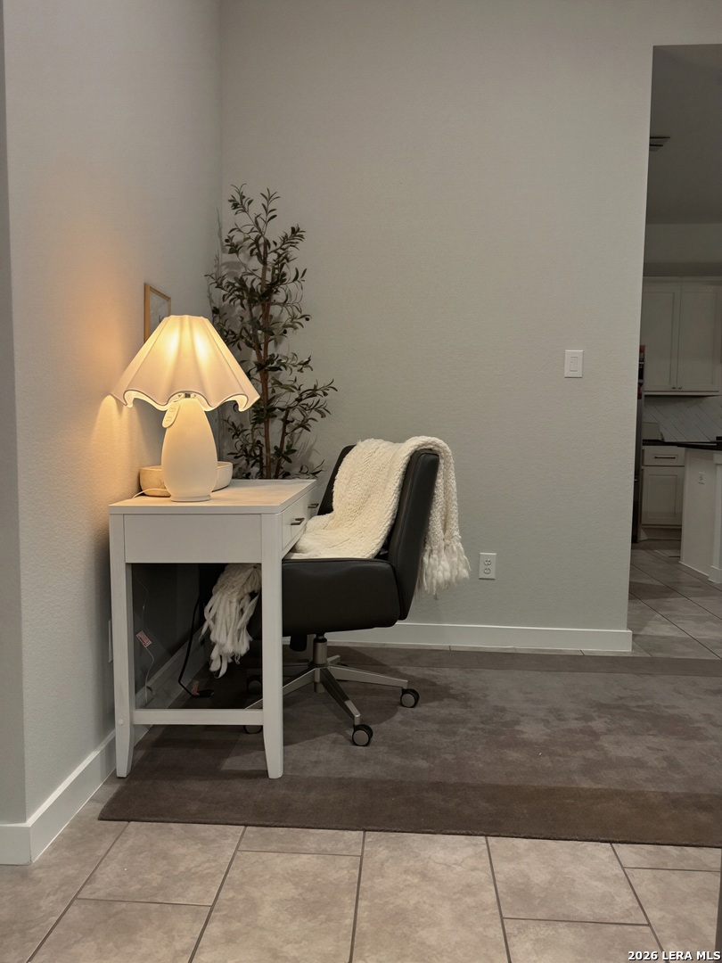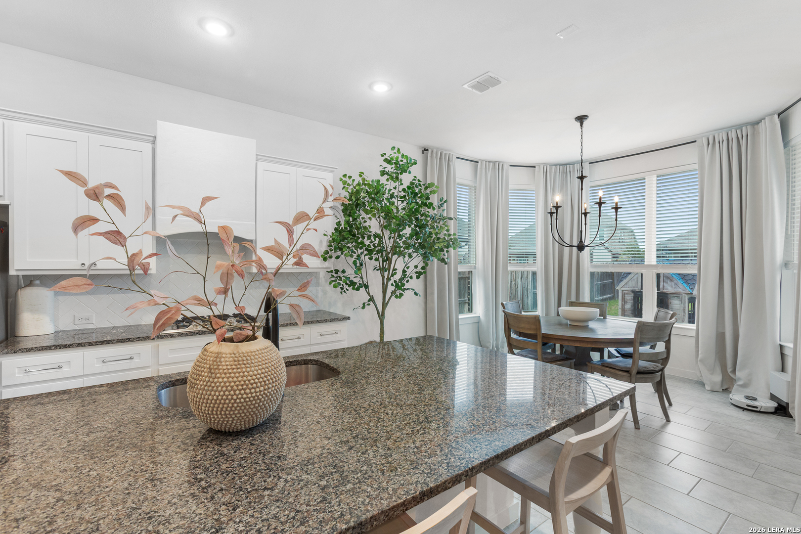 Move-in ready single-story home in the desirable Wasser Ranch community! This spacious 3 bedroom, 2 bath home with dedicated study offers 2,179 sq ft of open concept living designed for comfort and entertaining. The bright kitchen features granite countertops, oversized island with breakfast bar, pantry, and bay window breakfast area, all opening to the large family room. The private primary suite includes a 10-ft pop-up tray ceiling, split vanities, garden tub, separate shower, and walk-in closet. Beautiful large-format tile flooring throughout the main living areas with comfortable carpet in the bedrooms. Step outside to the covered patio overlooking a deep 0.23-acre homesite with one of the larger backyards in the neighborhood, perfect for relaxing or entertaining. Residents of Wasser Ranch enjoy community amenities including a private 1.4-acre lake, fishing dock, pavilion, and walking trails. Conveniently located near Oak Creek Elementary and with easy access to IH-35, making commuting to Austin or San Antonio simple. Built in 2020 and ready for its next owner.