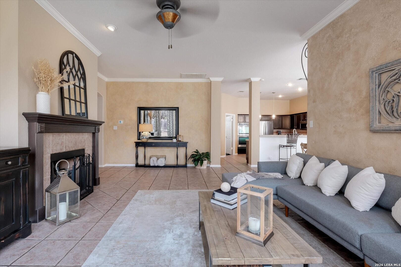 Discover this charming two-story brick home featuring 4 spacious bedrooms and 3 full bathrooms...AND a dedicated home office space with elegant French doors-ideal for work or study. . The inviting layout includes a formal dining room perfect for family gatherings. The open-concept kitchen is a chef's dream, equipped with stainless steel appliances, a generous kitchen island, double oven, gas range, and abundant cabinets and counter space. A breakfast bar provides casual dining options. The cozy living room boasts a gas fireplace and large windows that flood the space with natural light, creating a warm and welcoming atmosphere. Upstairs, the primary suite offers a tranquil retreat with large windows, a sitting area, and a luxurious ensuite bathroom featuring dual sinks, a separate shower, a soaking tub, and a spacious walk-in closet. The versatile large loft area is perfect for a game room, second living area, or home theater. Step outside to a fenced backyard oasis with a covered back patio, ideal for outdoor entertaining and relaxing. This home combines comfort, functionality, and style in a desirable location. Don't miss the opportunity to make this beautiful property your new home!