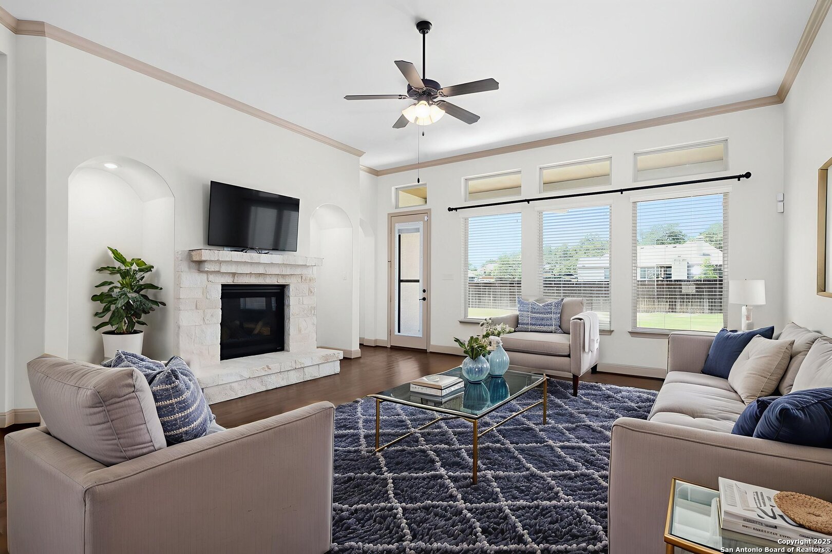 Welcome to this beautifully designed 4-bedroom, 3.5-bath home on a spacious .78-acre lot in the peaceful Garden Ridge community. Thoughtful details and quality finishes throughout make this home both comfortable and refined. The open floor plan offers plenty of space to gather, with high ceilings and large windows that let in natural light. The kitchen is a true highlight, featuring custom cabinetry, elegant countertops, and top-tier appliances-perfect for everyday living and entertaining. Each bedroom is generously sized, and the primary suite provides a quiet retreat with a spa-inspired bathroom and large walk-in closet. Step outside to enjoy the spacious level yard and circular driveway, with plenty of room to relax or host friends and family. Nestled in a sought-after neighborhood known for its sense of community and convenience, this home offers a rare opportunity to enjoy both space and style. Did I mention a 4 car garaqge? Schedule your showing today and come see what makes this home so special.