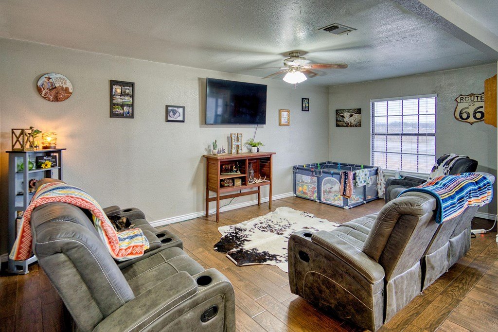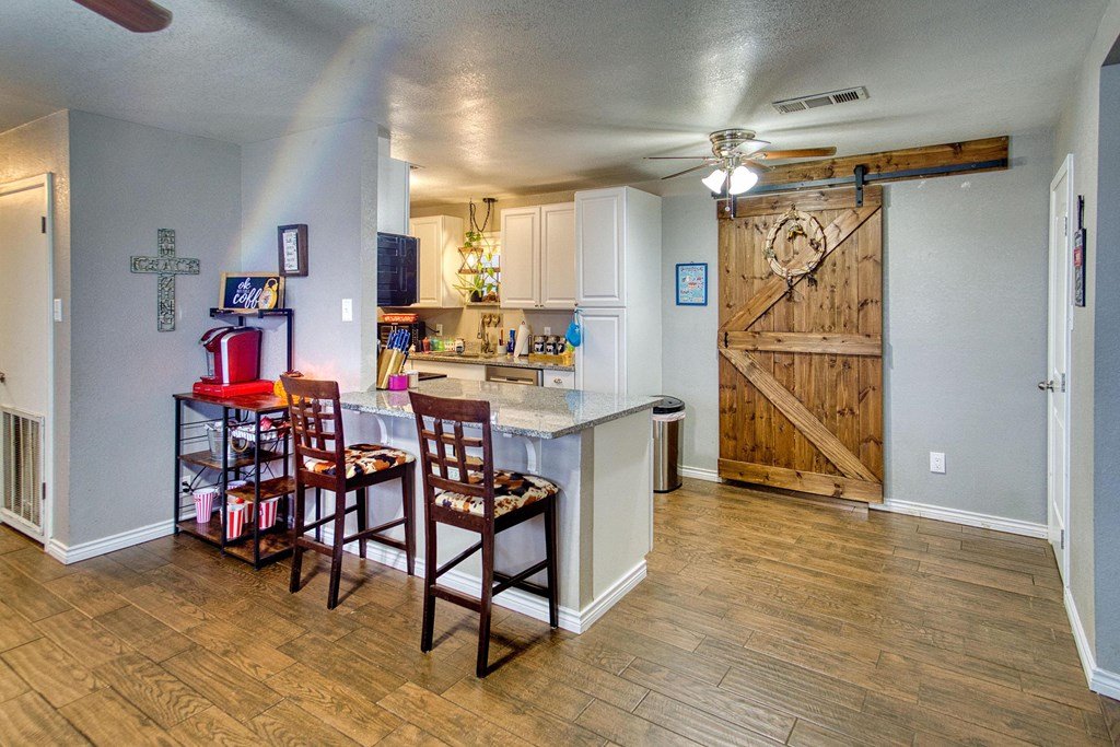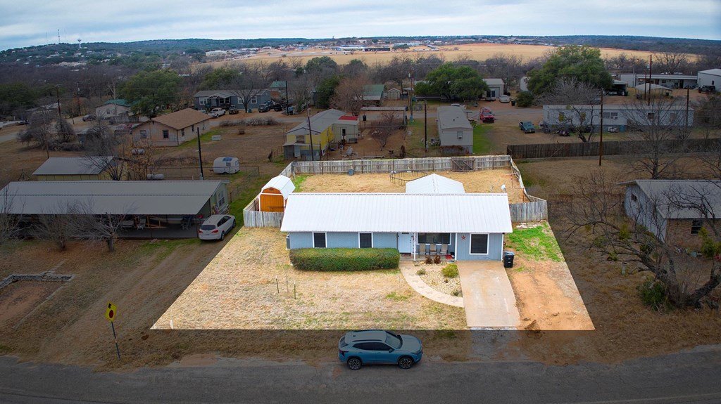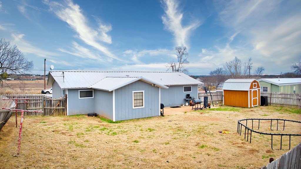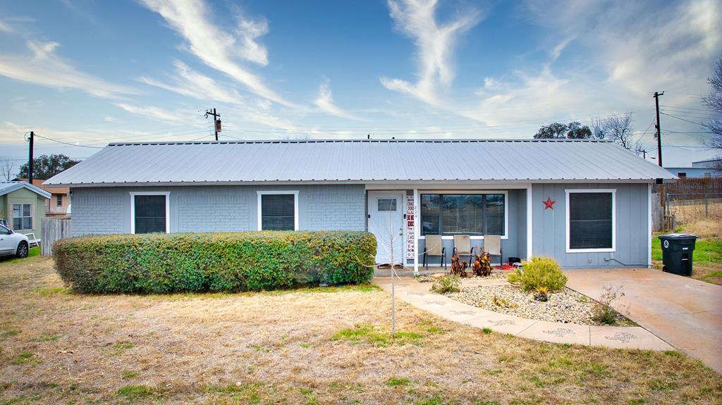 Attractive, updated three bedroom, one and one half bath, brick veneer home with metal roof and privacy fenced back yard. The 1559 sq ft open concept home features wood look ceramic tile flooring, granite countertops and a great bonus room that could be an extra bedroom or office. Stainless appliances and an island with seating enhance the bright, functional kitchen. Outside, the spacious back yard has plenty of room for outdoor activities as well as a storage building that will convey with the property. The front porch entrance is enhanced with concrete pavers and low maintenance landscaping creating an inviting access. This is a great property located in the Mason School District and is an ideal starter home.