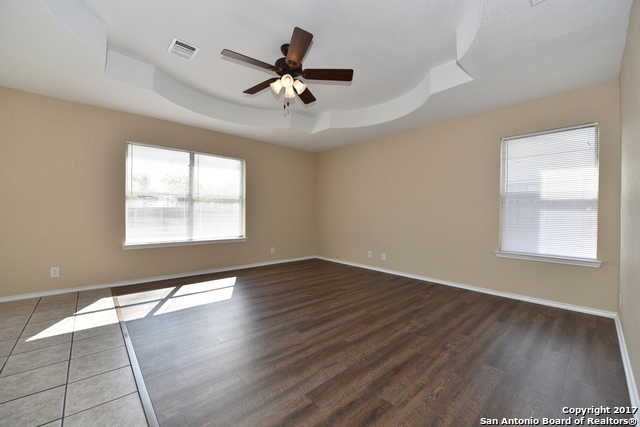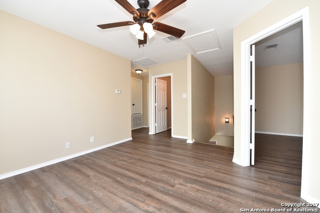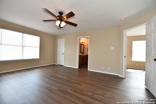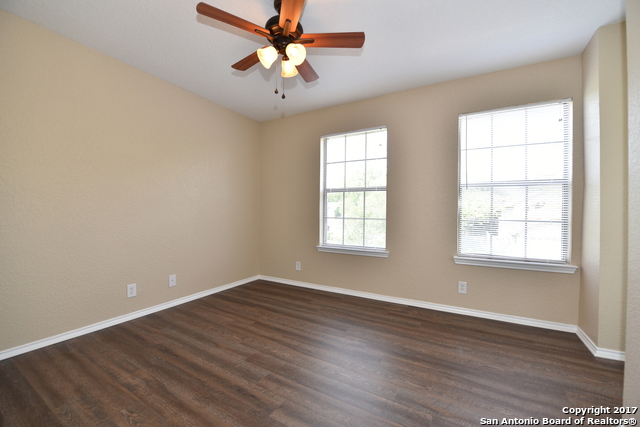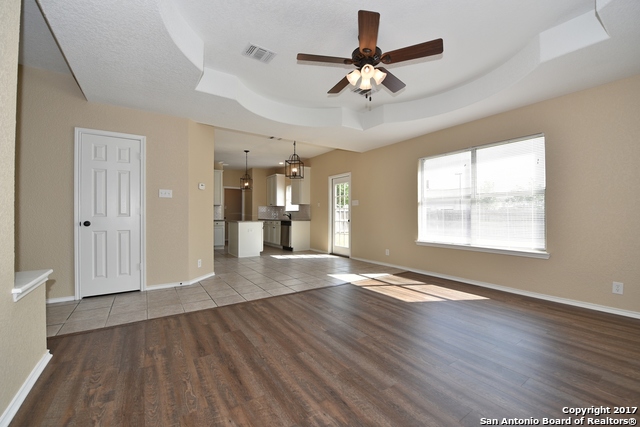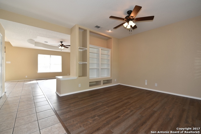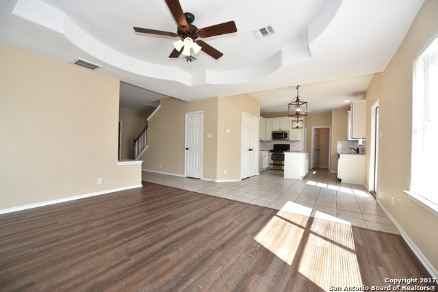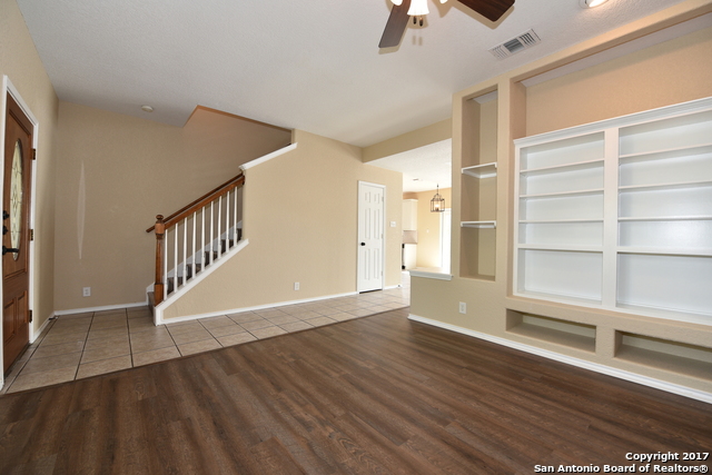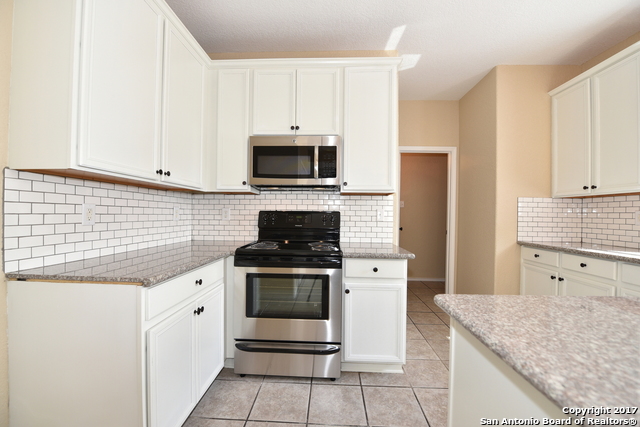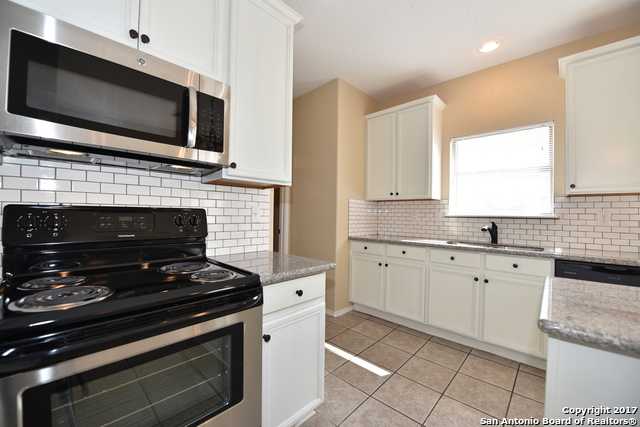 Stainless kitchen appliances, granite counter top, back splash, plank flooring, ceiling fans, garage door opener, Ring door bell, and lots of other upgrades in this 3 br, 2.5 ba home with 3 walk-in closets . Boasts an open floor plan with lots of options for use of space. No carpet, all tile and plank flooring. Privacy fenced yard. Minutes away from shopping, dining, Lackland, SW Research, Seaworld, NW Vista College, USAA, and Medical Center