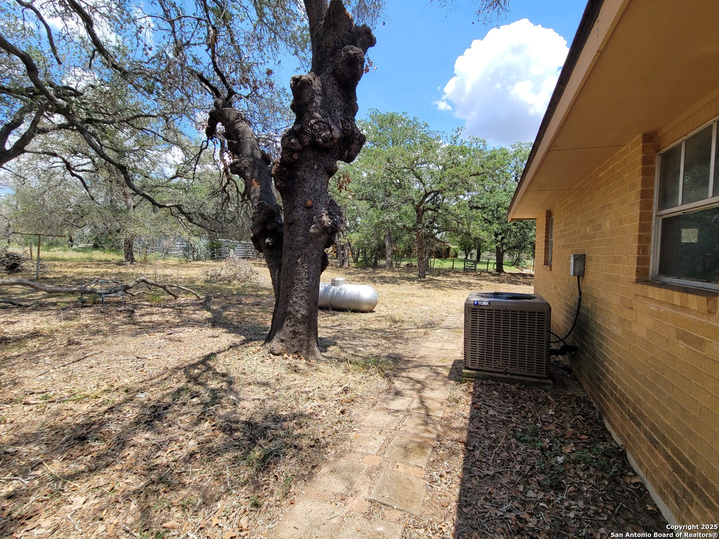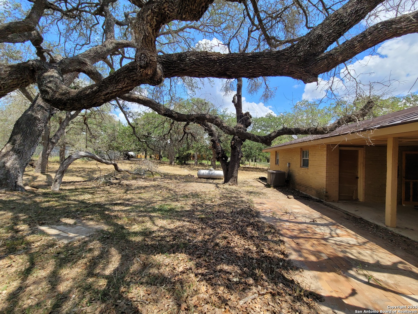 Come home to the country while only being 24 miles to the AlamoDome. Easy access to Hwy 181 N as this home is less than a mile drive and then zip to San Antonio or Floresville. Set among many mature trees this ~4 acre lot has the house set back 200 ft+ from the road in a grove of trees. You can sit on the back patio and watch the wildlife or just enjoy the quiet setting with the country view. The HVAC is about 8 years old and the expensive metal roof is newer and will last many years. There have only been 2 families in this home since it was built and the current owners are ready to change lifestyles. Come make your own memories in this house after you update it to match your needs. Bring your animals or your business as there is a lot of room for all. No deed restrictions on this property. Truly country living with city convenience.