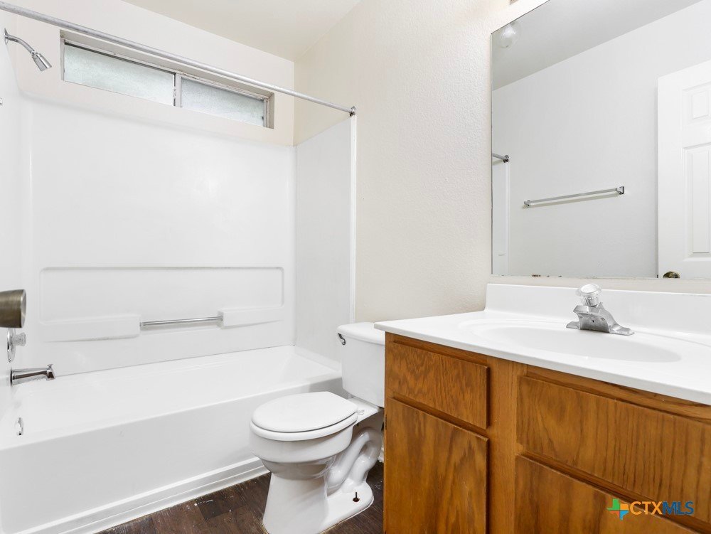 Tucked away in the heart of San Marcos, just minutes from Texas State University, the Outlet Mall, and an abundance of outdoor adventure, this spacious 3-bedroom, 3.5-bath duplex offers the perfect blend of location and layout for those seeking both comfort and convenience. Each upstairs bedroom features its own private full bath and walk-in closet, creating an ideal setup for roommates or individuals who value privacy. Downstairs, you'll find a large living area with sleek laminate flooring, an eat-in kitchen with ample pantry storage, and a convenient half bath. The fenced backyard with mature trees and a covered patio is perfect for relaxing after a day exploring the nearby trails, riverfront, or vibrant college-town scene. With easy access to IH-35, Wonder World Dr., and all the best that San Marcos has to offer, this home is a prime rental opportunity in a highly sought-after area.