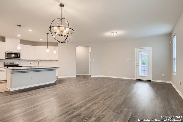 Home is clean and bright. Large open floor plan with high ceilings. Kitchen features a granite island with seating. No carpeting in home. Covered patio to relax on and yard has a sprinkler system. Community features a pool and a playground. All tenants are enrolled in a resident benefit package.