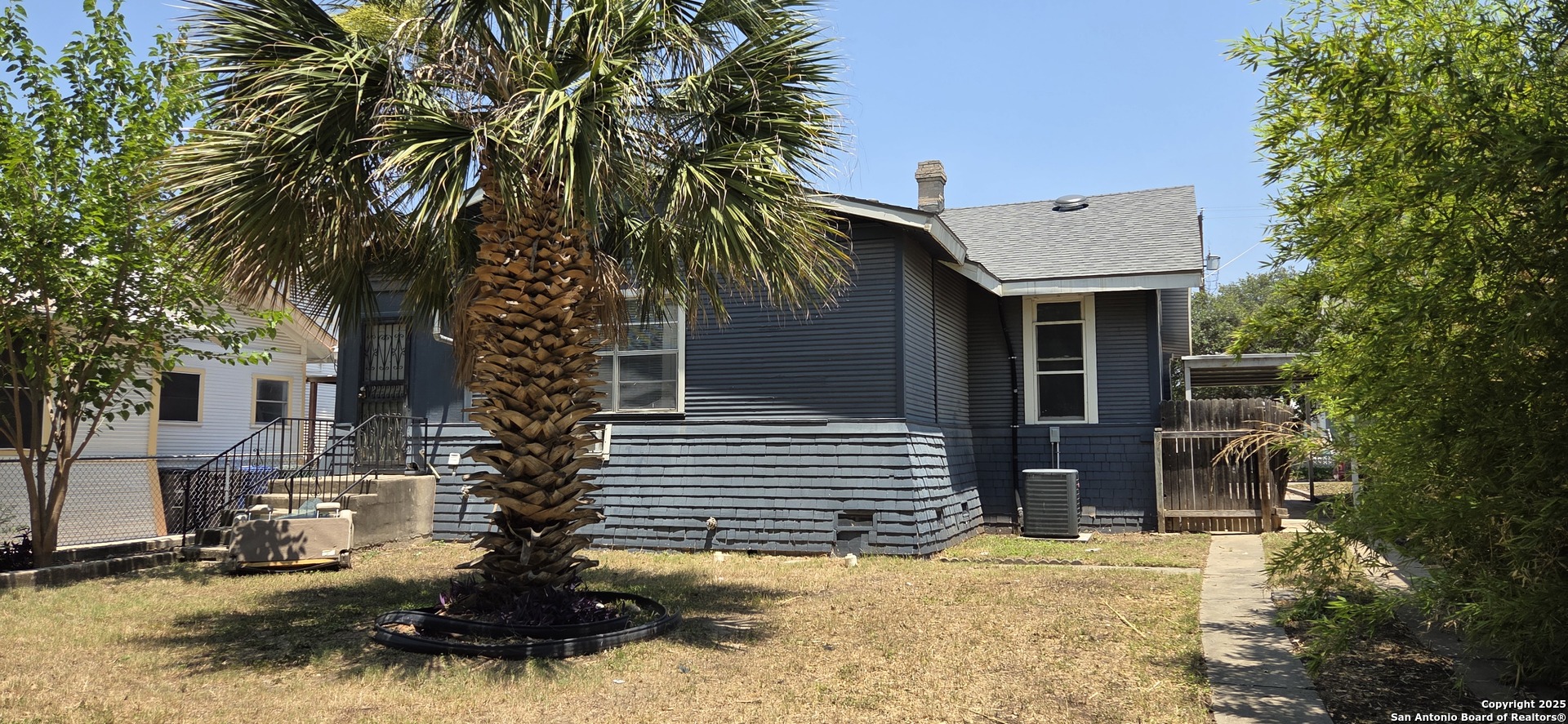 Charming 3 bedroom home in Midtown near San Pedro Springs Park less than 10 minutes from The Pearl. Easy travel across San Antonio with access to major highways I-10, I-35 an US281. Original hardwood flooring throughout living, dinning and 2 bedrooms, high ceilings with decorative wood beams and large windows for lots of natural lighting. Newly renovated bath for touch of modern. 3rd room in back of home can be used as a bedroom, flex room and has large closet for additional storage. Full size washer dryer connections. Central air and heating. Covered parking space. Large concrete pad in backyard to bring your owner shed.