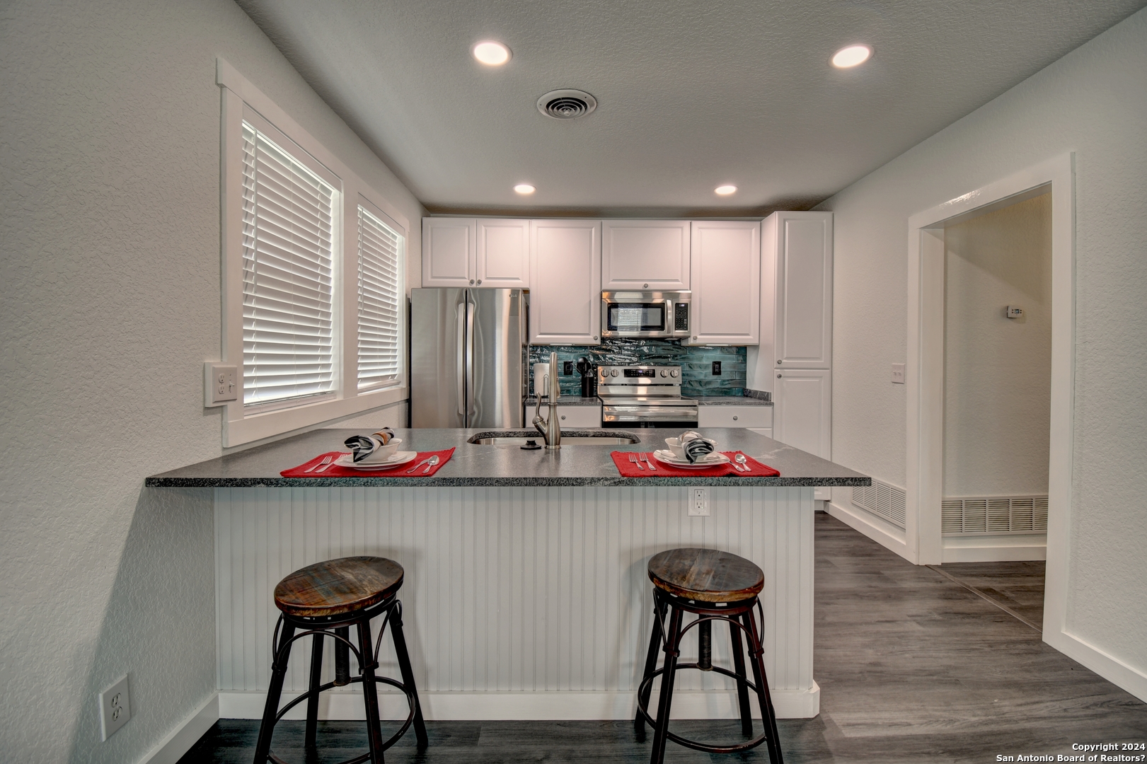 Welcome to your beautifully renovated 3-bedroom, 2-bathroom home nestled on a spacious corner lot, just blocks away from downtown Kerrville and the serene River Trail. This stunning property has been meticulously renovated from the studs out, offering a perfect blend of modern amenities and classic charm. As you step inside, you'll be greeted by a bright and airy open-concept living space, ideal for both relaxing with family and entertaining guests. The kitchen features all new appliances, sleek countertops, and a bar area for casual dining. The primary suite boasts a luxurious en-suite bathroom and plenty of natural light. The two additional bedrooms are generously sized and share a stylishly appointed full bathroom. Outside, the large corner lot provides plenty of space for outdoor activities and gardening, while the proximity to downtown Kerrville and the River Trail ensures endless opportunities for recreation and leisure. Whether you're looking for a primary residence or a second home to enjoy during visits, this property is sure to impress. Don't miss out on this incredible opportunity to own a piece of Kerrville's charm!