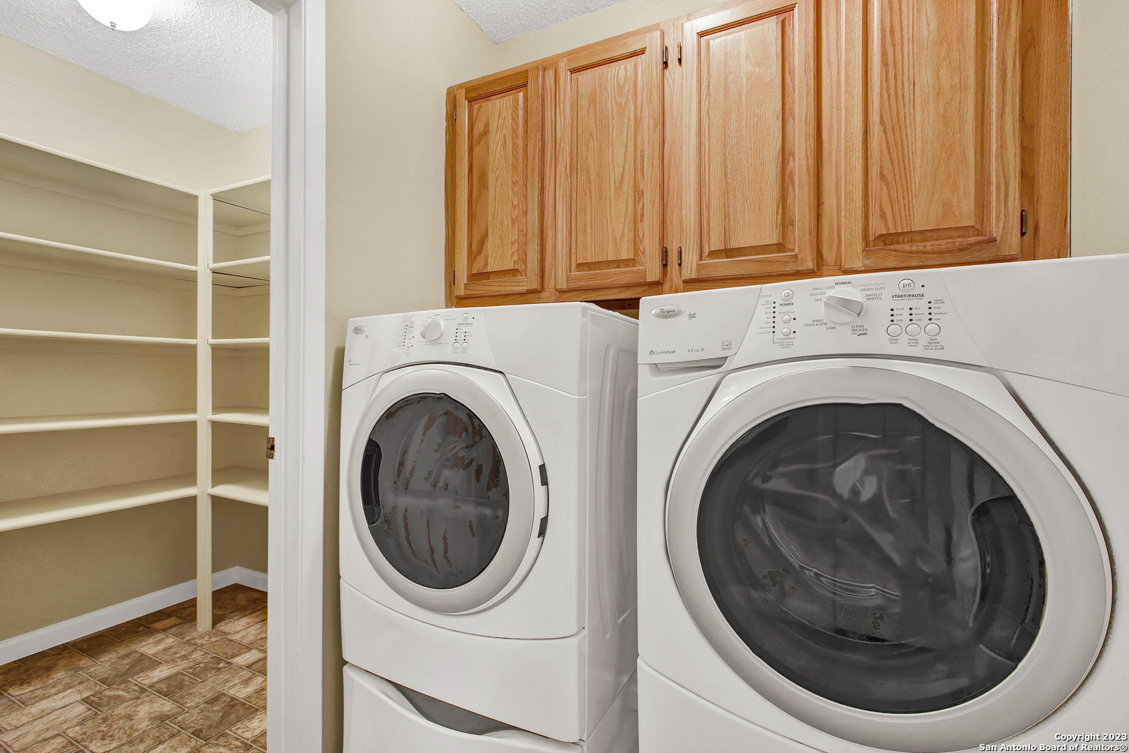 Best kept secret in area 0600! This 2-bedroom 2.5 bath gated townhouse style condo is in the perfect location! Easy access to 281, 1604, Wurzbach Pkwy, 410, close to the airport, amazing schools, and restaurants! This is the largest condo in the complex and offers a spacious living area, dining room, updated kitchen, LOTS OF STORAGE, a full-size laundry room with cabinets, two master bedrooms with private bathrooms upstairs, and a half bath downstairs. So much natural light and high ceilings throughout! Enjoy