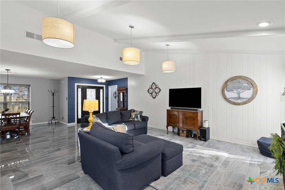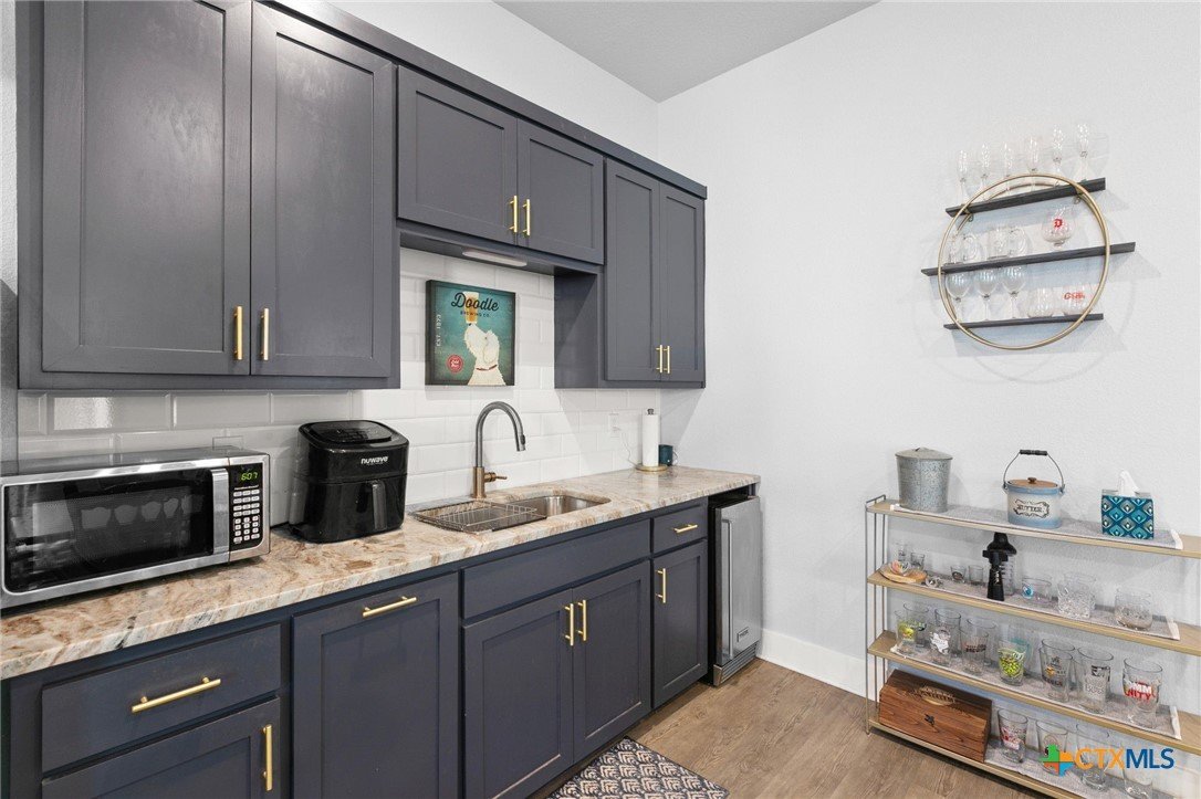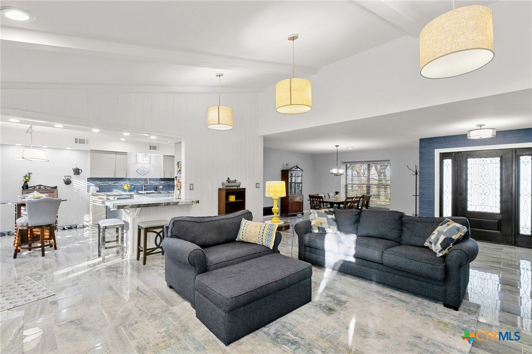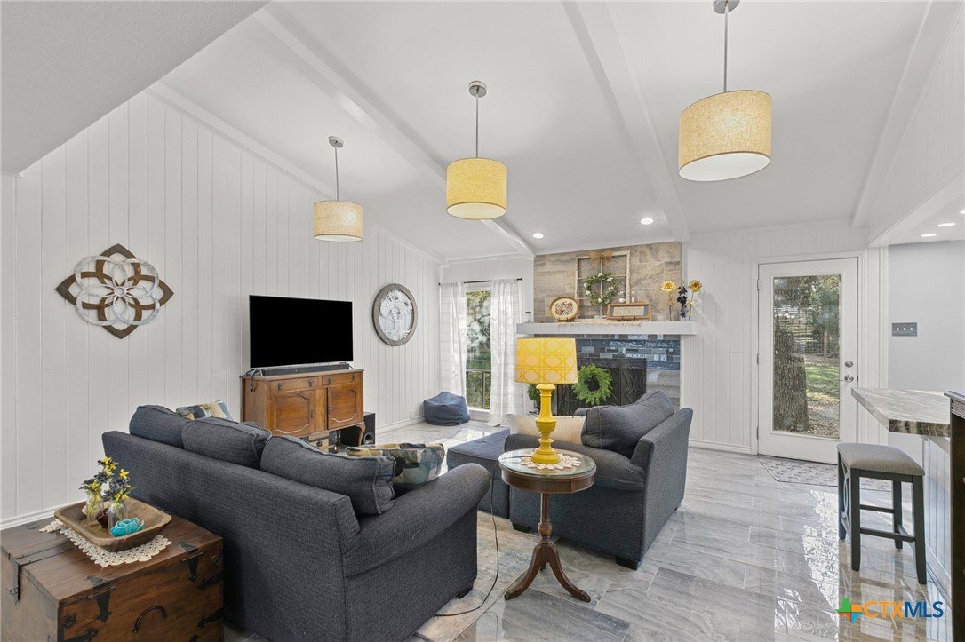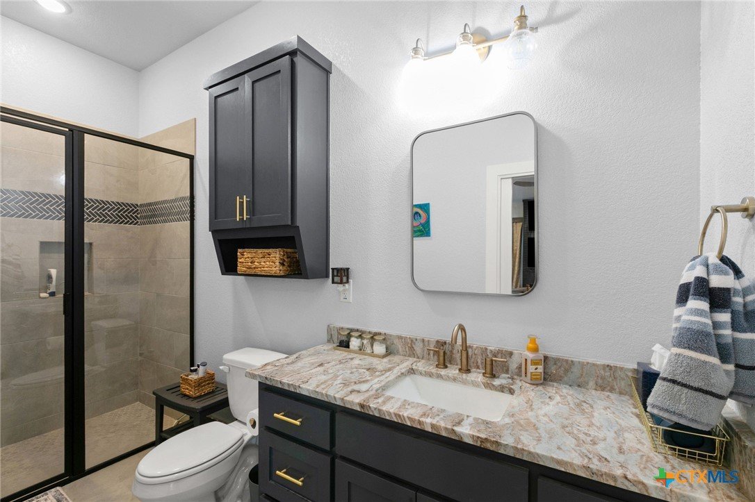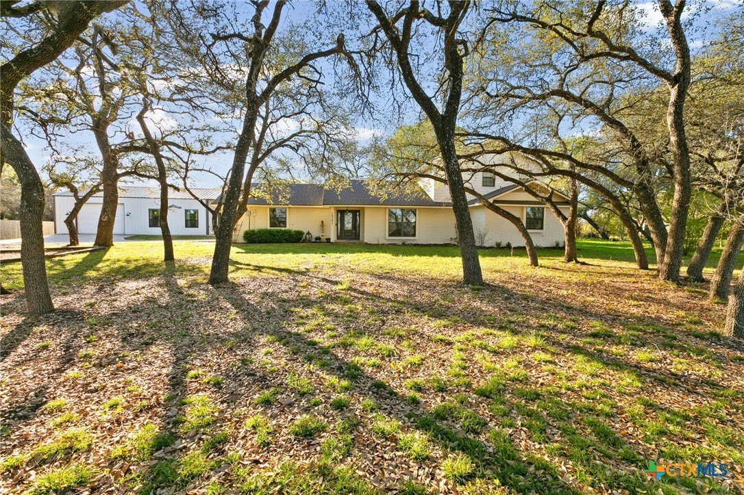 Welcome to this stunning property situated on 0.7282 acres on Hartrick Bluff Road. This well-maintained 3-bedroom, 2.5-bath brick home offers numerous updates completed in 2022, including new shingles, flooring, appliances, updated bathrooms and fixtures, two air conditioning systems, septic system, and gutter with leaf guards. The primary suite is conveniently located downstairs, featuring a walk-in closet, relaxing garden tub, and a separate walk-in shower. Upstairs, you’ll find two spacious secondary bedrooms with ample closet space and a well-appointed bathroom with double vanities and a large walk-in shower. The open-concept kitchen, living, and dining area creates the perfect space for everyday living and entertainment. Adding incredible versatility to the property is the 1,350 sq ft shop/guest house built in 2023, complete with a full kitchen and bathroom, living area with an electric fireplace, and a large covered patio with an outdoor kitchen—ideal for guests or gatherings. The shop also features a 10-ft roll-up door, RV plug and dump station, and abundant storage space/loft area The beautifully maintained lot is shaded by mature live oak trees, fully fenced, and secured with an electric gated entrance. The private backyard also features a firepit and seating area, perfect for relaxing evenings outdoors. An oversized garage with an attached storage/workroom provides even more functional space. Located in Academy ISD with no city taxes, this exceptional property offers space, privacy, and versatility. Do not miss this rare offering!