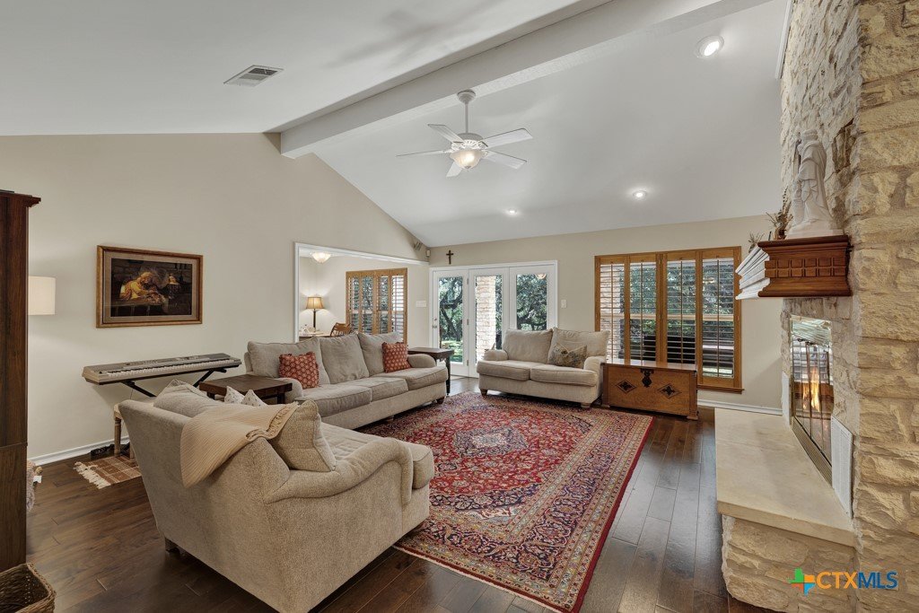 A Rare Hill Country Retreat on 7 Oak-Strewn Acres. Tucked away just outside the San Marcos city limits in the desirable Country Estates subdivision, yet mere minutes from the heart of town, 830 Palomino is a truly one-of-a-kind estate that blends Hill Country charm, refined living, & wide-open freedom. Set on two adjoining tracts totaling 7 acres, this extraordinary property offers unmatched privacy, breathtaking oak trees, & the best of both worlds: serene country living with quick access to shopping, dining, the river, Texas State University, & more. At the center of the property is a stunning 3-bedroom, 3-bath Texas limestone home featuring all four sides of native stone & crowned with a striking Spanish clay tile roof. Inside, you’ll find elegant updates like granite countertops, sandstone tile, & stainless steel appliances in the kitchen, complemented by custom woodwork & plantation shutters throughout. The living room is a showstopper — spacious, open, & anchored by a floor-to-ceiling limestone fireplace beneath a vaulted ceiling. It’s warm, timeless, & ready for unforgettable gatherings. Additional highlights include: A formal dining room that could double as a home office A spacious master suite with a flexible sitting area ideal for a nursery, gym, or studio A master bath with double vanities, a walk-in shower, & private toilet area Greenhouse, chicken coop, & raised garden beds perfect for gardeners and homesteaders TWO shops: a 676 sq. ft. workshop, & a massive 1,200 sq. ft. building with a loading dock, ramp, covered parking, and RV outlet With no HOA, mature live oaks throughout, a neighborhood pool & tennis courts, this property offers a lifestyle that is rarely available — quiet, spacious, upscale, & flexible. Whether you're looking for a high-end homestead, multi-use property, or a private sanctuary just minutes from town, 830 Palomino delivers. Schedule your showing today — opportunities like this are few and far between.
