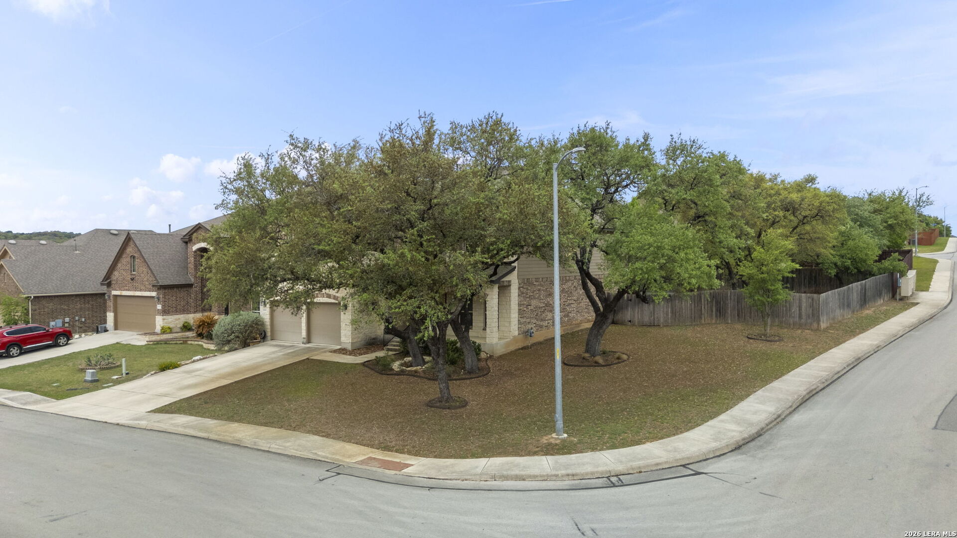 Welcome home to this move-in ready residence in the gated Fallbrook community. Set on a corner lot of over a quarter acre, this spacious home is ideal for entertaining or family living. The oversized kitchen features a double oven and five-burner gas cooktop, plus a large island with ample seating that opens to the great room. The great room boasts two-story ceilings and a dramatic floor-to-ceiling fireplace. The first-floor primary suite includes a luxurious en-suite bath with a soaking tub, separate shower, and oversized closet. An open stairway leads to a second-floor great room and four additional bedrooms, including a Jack-and-Jill arrangement for two of them. A glassed-in all-season porch overlooks the oversized backyard-perfect for entertaining or cozy mornings with a book. Located in the Boerne ISD with low taxes, this home is about 10 minutes from The Rim and La Cantera and sits conveniently between two H-E-B stores for maximum convenience.