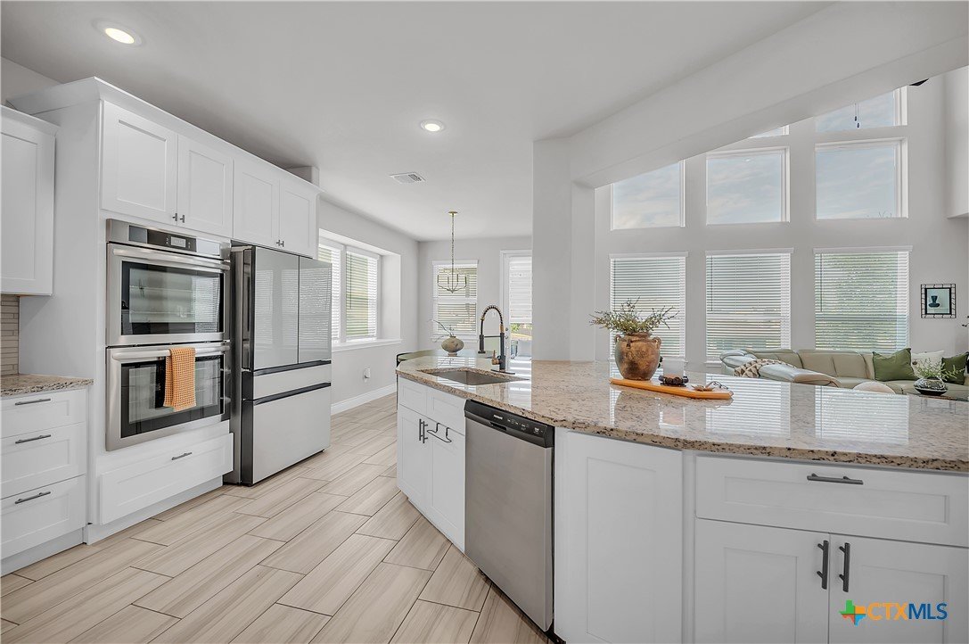 Modern contemporary two story with charming curb appeal. Featuring 4 beds, 2 dining areas, 2 living areas, 3 1/2 baths and an office, this house has you covered on space, modern design and functionality. Walking into this beauty you will find bright and open floor plan with high ceilings . Beautiful open concept for entertaining with a large kitchen that has stainless steel appliances including double oven, large island, coffee bar area and large walk in pantry. Living room has beautiful natural light from the large two story windows with an accentuating modern fireplace. The first floor also has an office and two beautiful entertaining dining areas. Primary suite is on the first floor giving peace and quiet .The primary bath is spa like with a glassed in garden tub and stand up shower along with double vanity and plenty of closet space. Upstairs has 3 bedrooms, 2 bath, a loft looking to the first floor and a flex space to use at your hearts content. Walking up the stairs you have a bedroom or in law suite on your right. This bedroom is spacious with its own full bath and walk in closet. Large game room, theater or additional living area upstairs for a chill hangouts. The other two spacious bedrooms share a jack and jill bath with plenty of space and storage. The backyard is quiet and ready to become your own oasis. Great location for shopping, entertainment and 15 min to Fort Hood. Close to Stillhouse Lake and Dana Peak for some outdoor adventure. Don't miss out on this beautiful home!