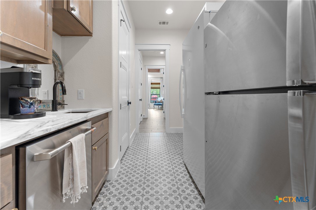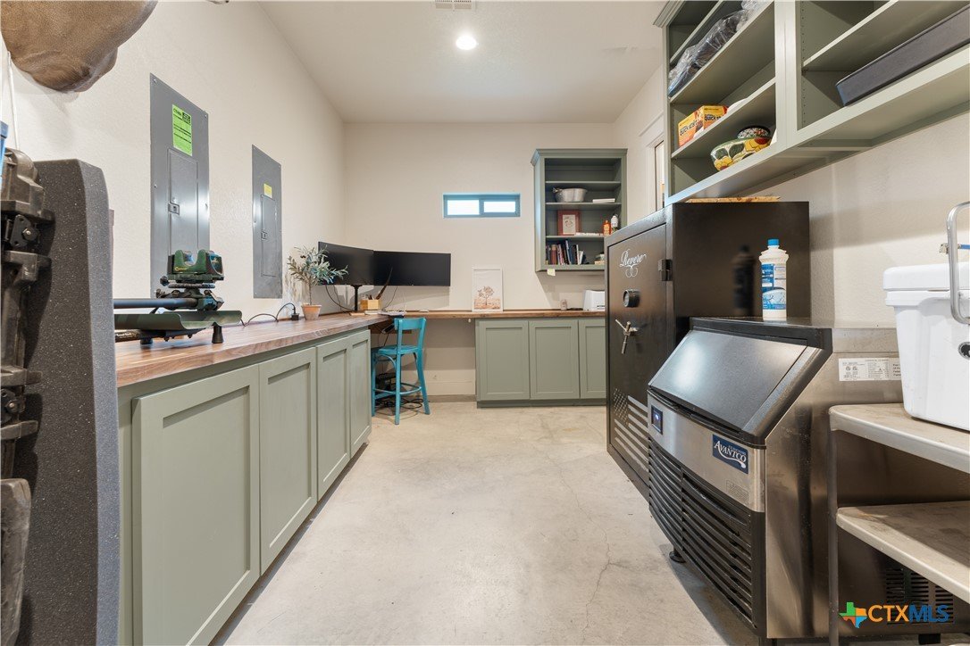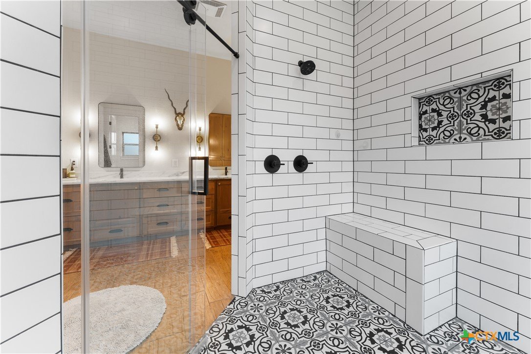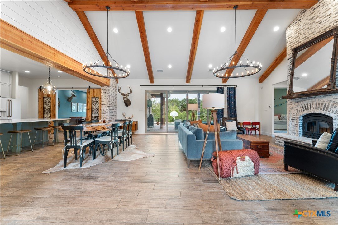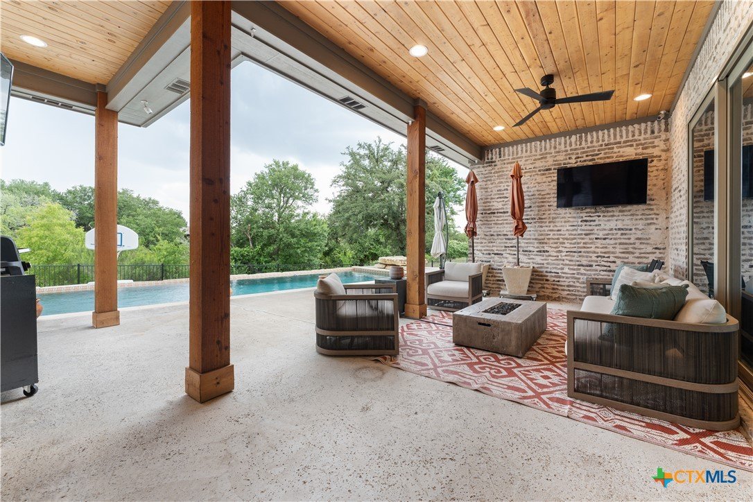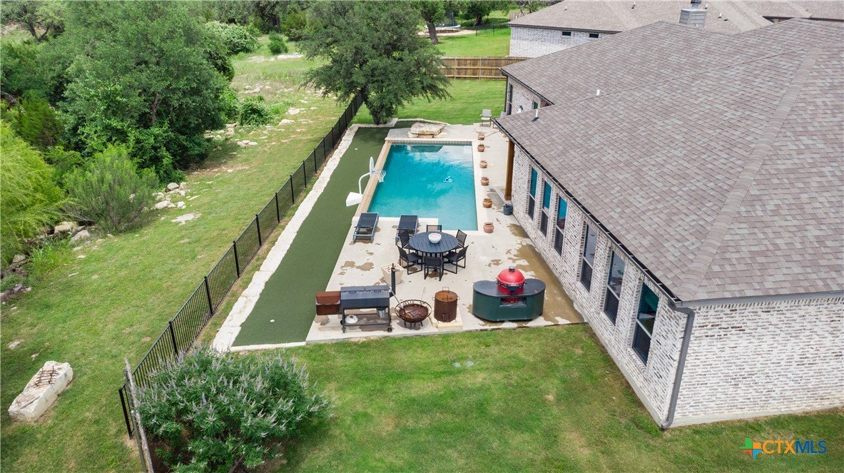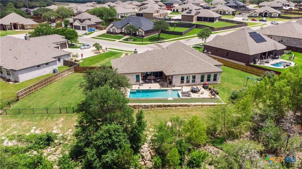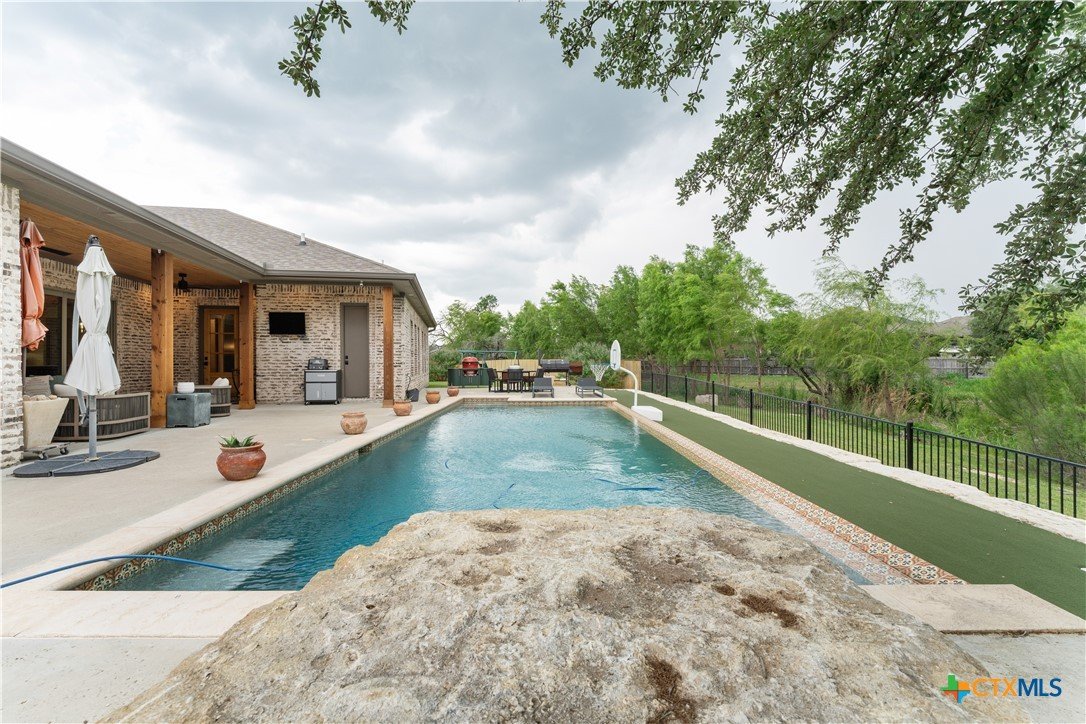 Call your Realtor to see this home! Let's start with the living area which has a 4 piece stacking sliding door to open up to the patio where you can enjoy swimming in your heated pool or practice your putting on the putting green. Plenty of outdoor space to enjoy with a natural green space behind the property. Unique interior doors on the den, flex/office/4th bedroom, and the laundry room. The pantry area features a sink, dishwasher, food pantry, plus shelving and space for an extra refrigerator and freezer. The primary bath has a wet room and double sinks which flows into your primary closet with easy access to the laundry area. Open living concept with wood burning stove and the kitchen features a propane stove plus GE Cafe' appliances, along with marble countertops throughout the home. Minor bedrooms have walk-in closets and full bathrooms with tub/shower combos. Flex/office room has a closet plus full bath with shower. The half bath is in the patio area by the pool. Your new home awaits-call today!