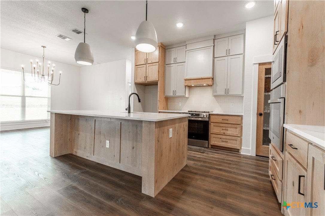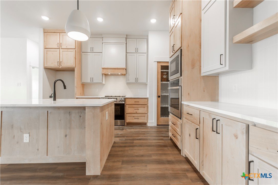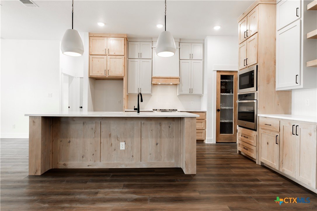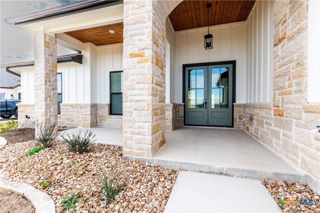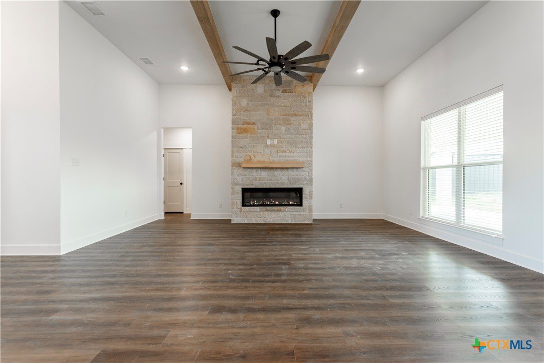 You won’t find any cookie-cutter homes here! 8309 Money Pit Rd is a true stunner from the moment you arrive. Situated on an oversized lot just shy of ½ an acre, this home features a tiered backyard, three-car garage, and a double-door entry—just a few of the many wow factors. An oversized covered front porch with a stained tongue-and-groove ceiling welcomes you inside, where you’re greeted by a grand entryway accented by an elegant chandelier. The living room impresses with a floor-to-ceiling stone electric fireplace and stained ceiling beams, creating a warm yet upscale atmosphere. The kitchen is truly a dream, showcasing a large quartz island, floating shelves, beautiful backsplash, wall oven, microwave, and range, all surrounded by custom cabinetry with plenty of storage throughout the home. The primary suite is just as stunning, featuring its own electric fireplace, stained beams, and two walk-in closets. The spa-like ensuite offers dual vanities, a soaking tub, and a walk-in shower with dual shower heads, including a luxurious rain head. Three secondary bedrooms are located on the opposite side of the home, providing maximum privacy for the primary suite. And last—but certainly not least—the backyard is a dream come true. With an oversized covered patio and a tiered yard, there’s plenty of room for a pool, sports court, garden, or outdoor entertaining space. The possibilities are endless!