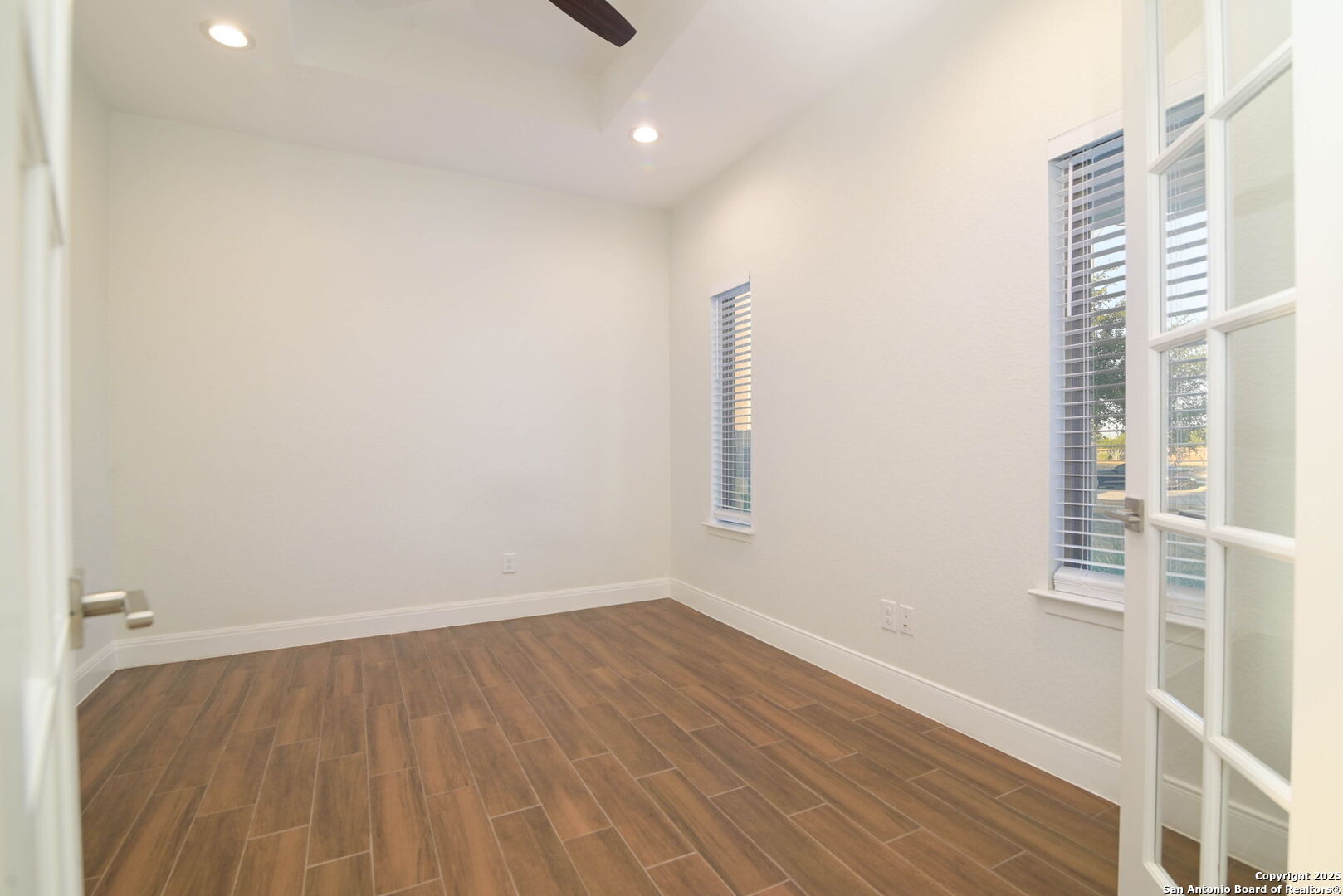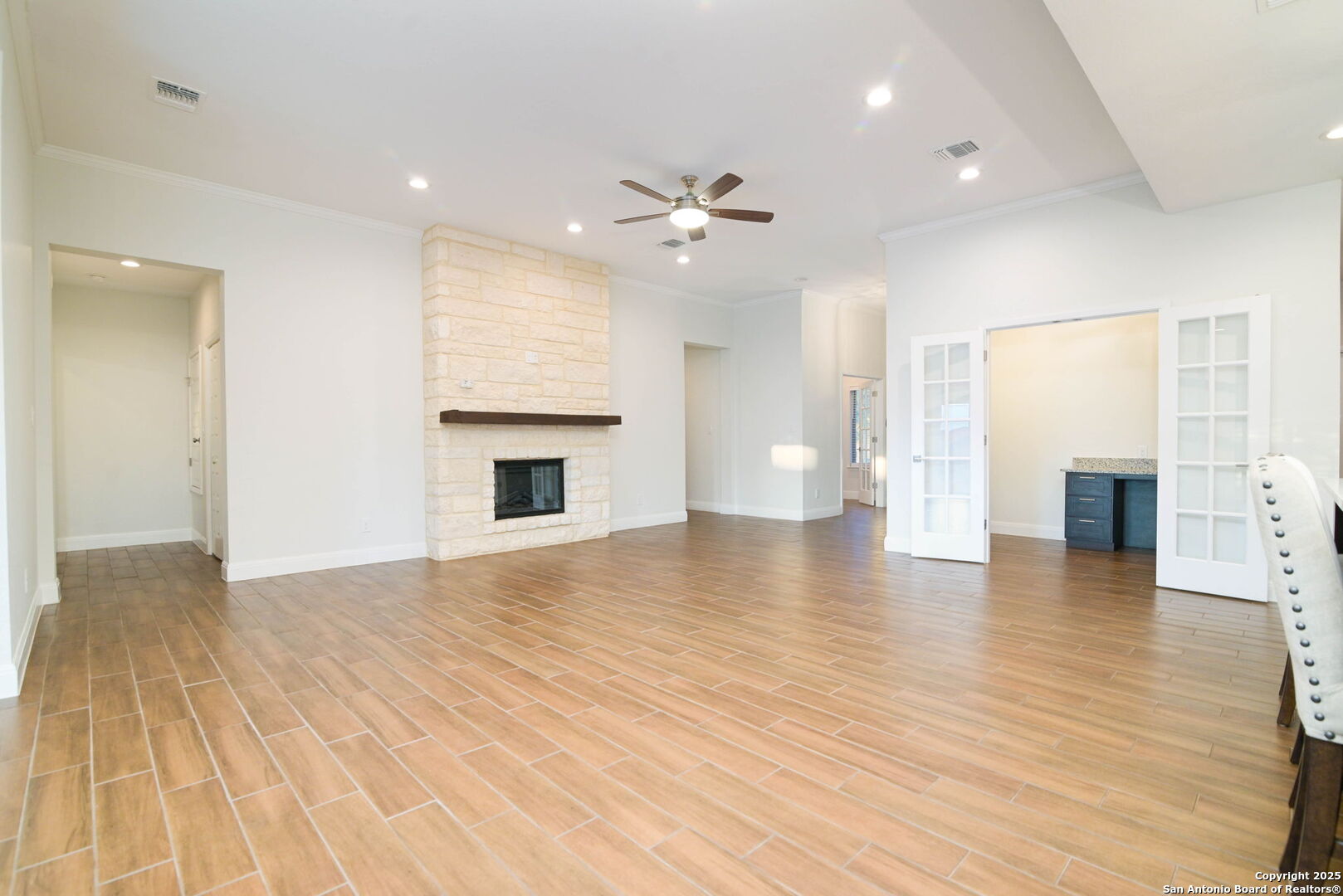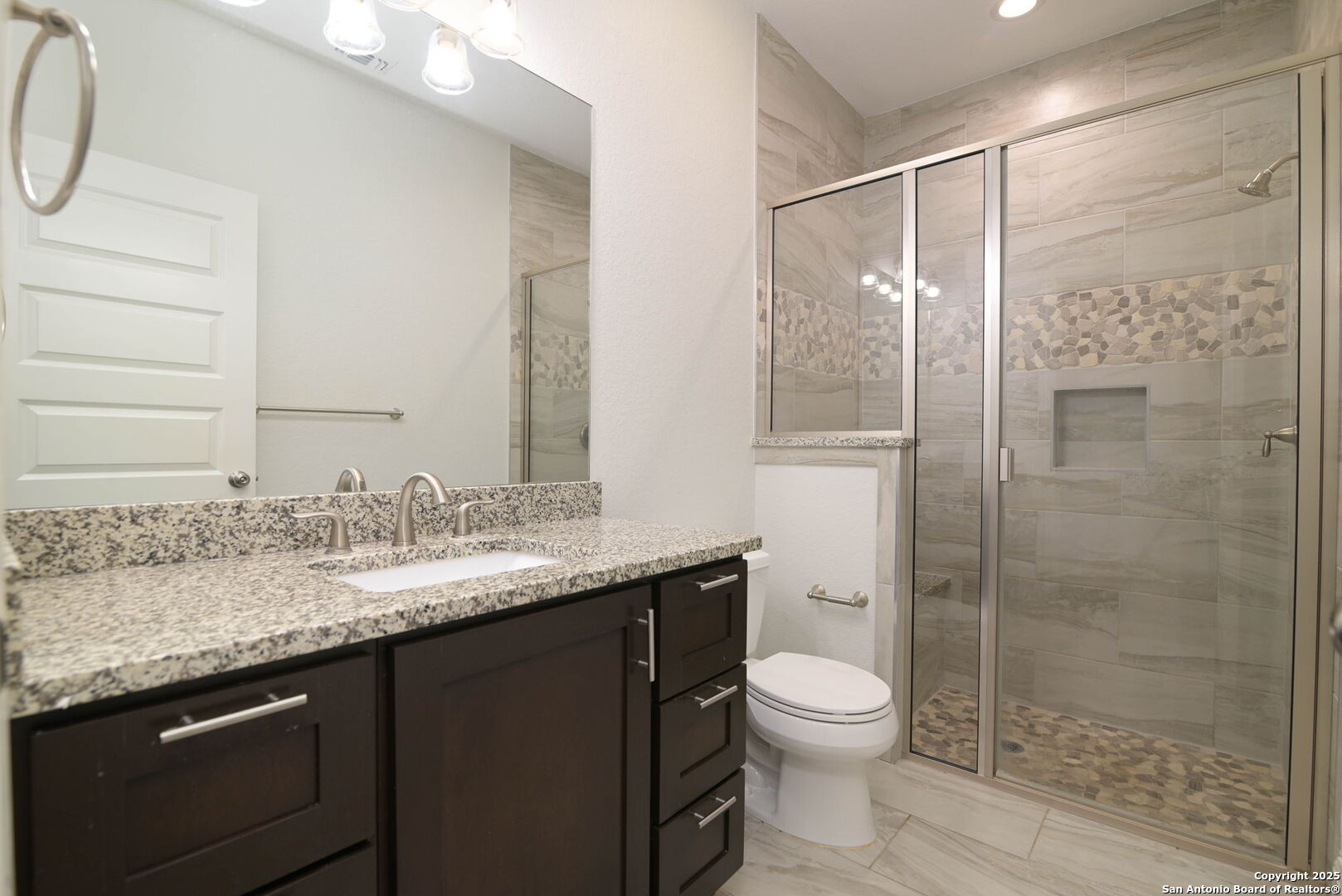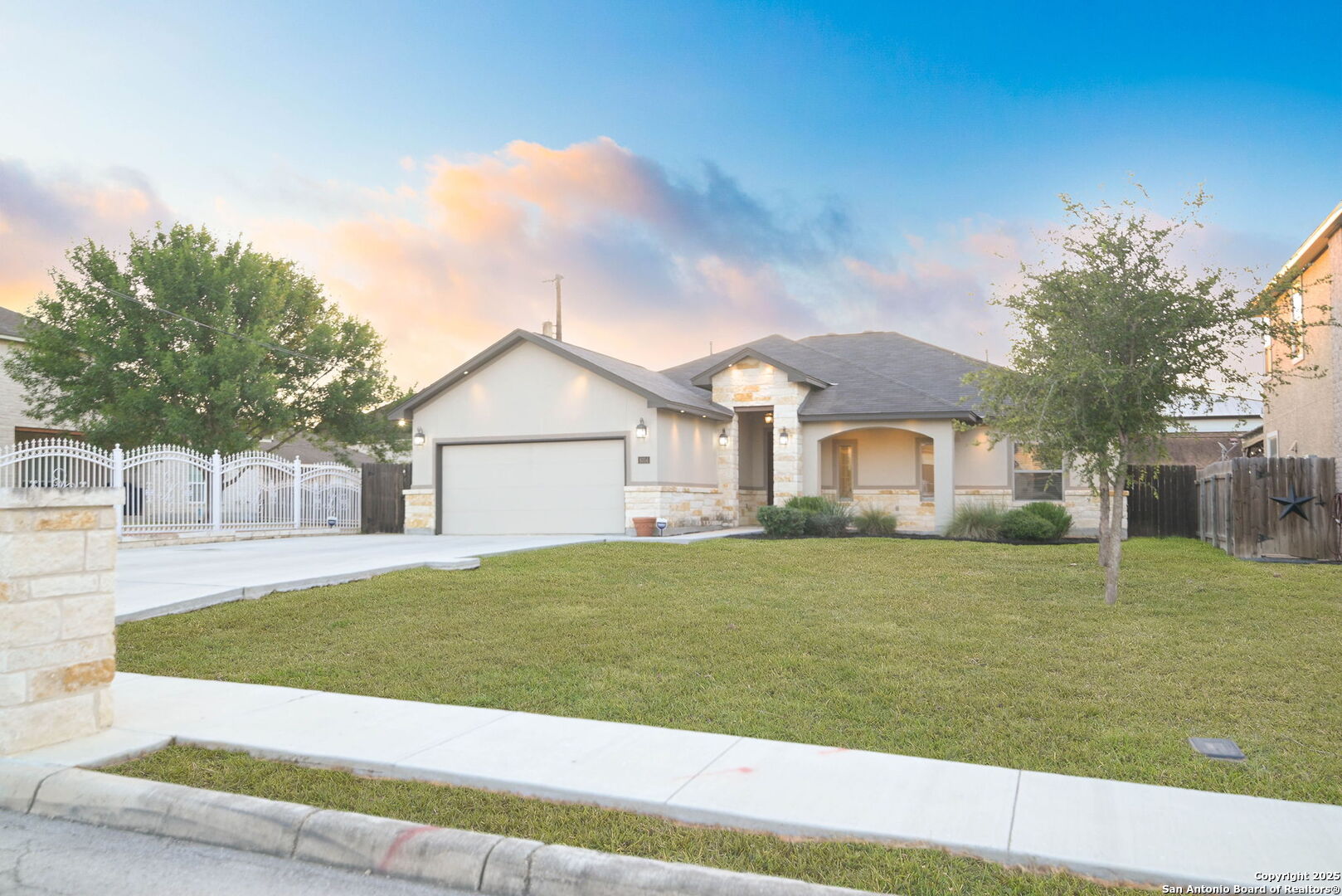 Tucked in one of San Antonio's quieter pockets, this 2019 single-story home doesn't shout-it speaks with style. Clean lines, open spaces, and those just-right upgrades make it feel less like a house... and more like the one. Walk in and you're greeted by light-soaked ceilings that stretch up like they've got dreams of their own. The stone fireplace anchors the living room-perfect for cozy nights, book-club brunches, or that holiday photo you'll actually want to frame. In the kitchen? Granite countertops. Gas cooking. A layout that lets you cook, sip, and socialize without missing a beat. It's where Sunday meal prep turns into "who's coming over?" The primary suite is the retreat you didn't know you needed-set apart for privacy and designed to feel like a weekend getaway (minus the checkout time). Outside, the backyard is your blank canvas. Fire pit Fridays. Garden goals. Maybe even an outdoor projector for movie nights under the stars. Minutes from everything that matters. But worlds away from the noise.
