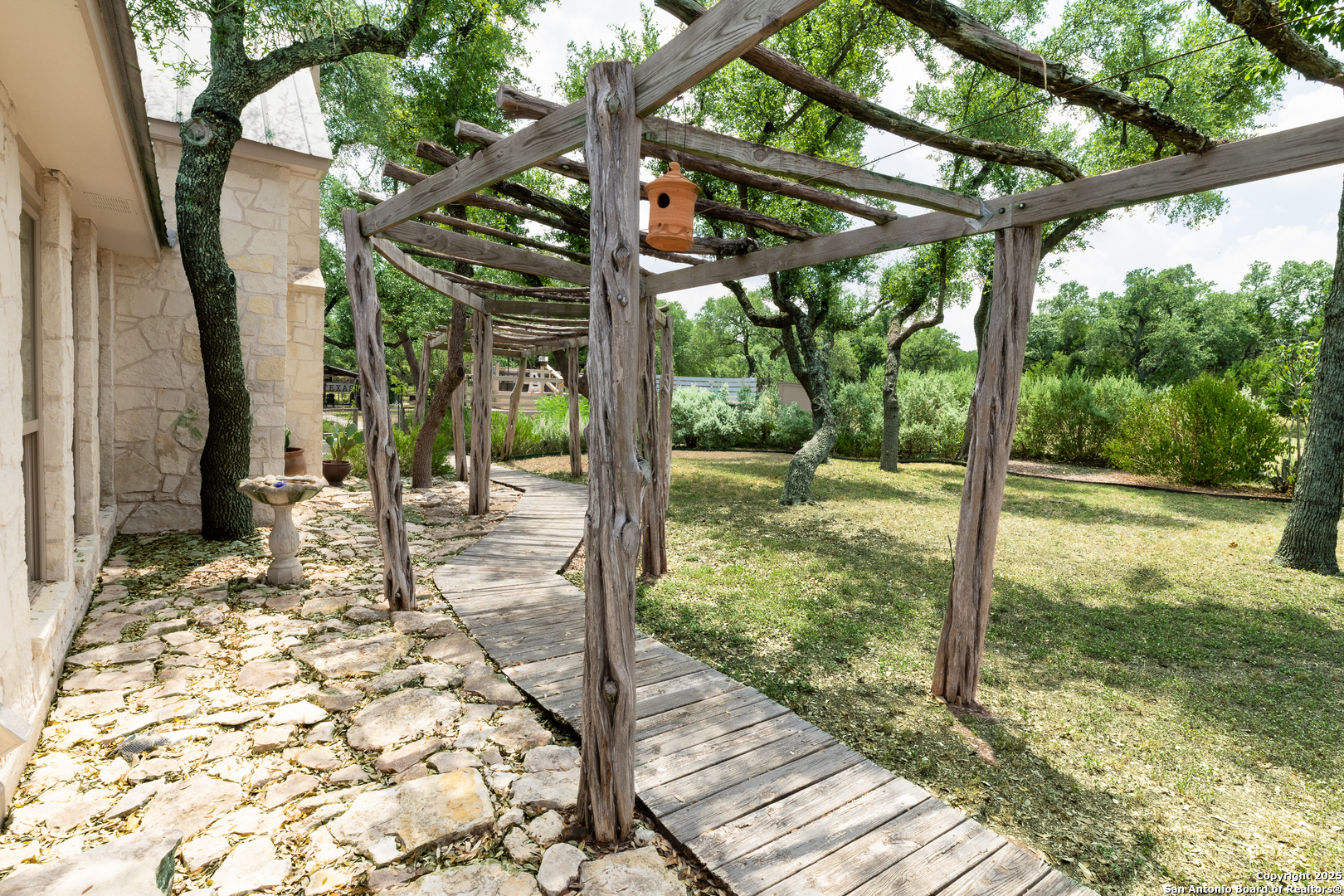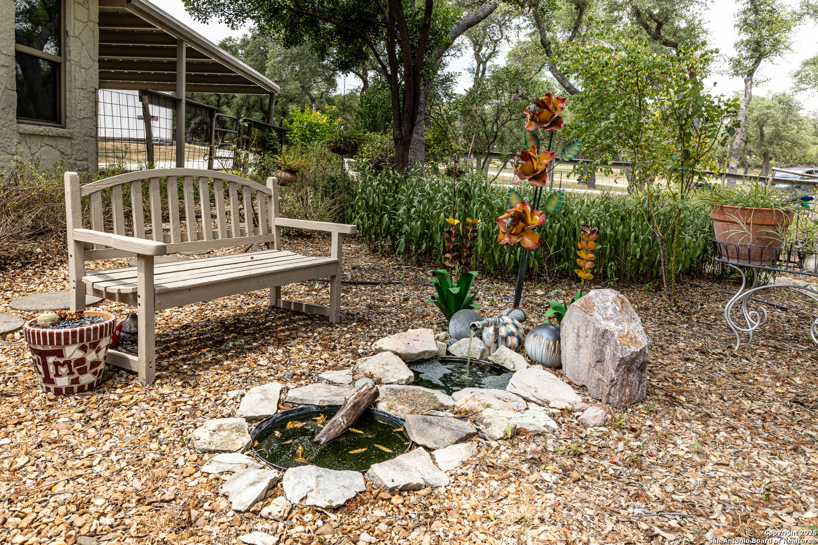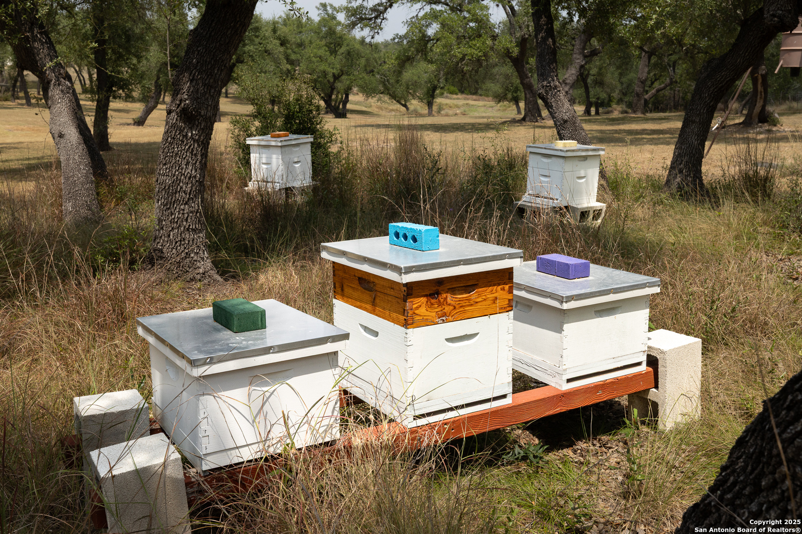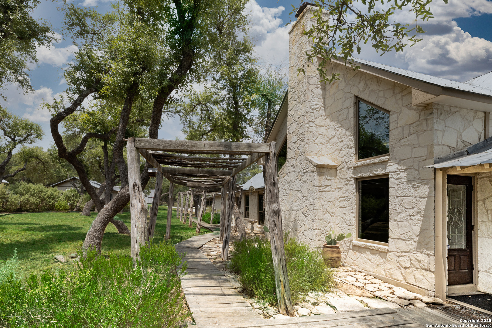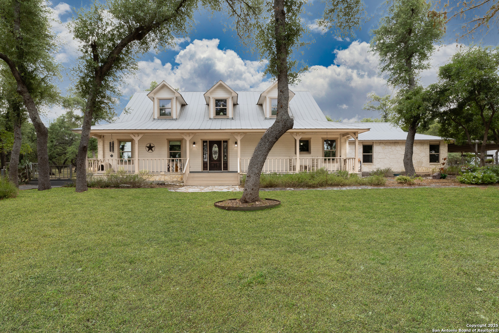 Welcome to your one-of-a-kind Hill Country retreat, a rare, 10+ acre estate that combines peace, privacy, and possibility in one extraordinary package. Nestled beneath mature, manicured oaks, this custom Hill Country Classics home is built with timeless craftsmanship and surrounded by spaces designed to celebrate the good life outdoors. From sunrise coffee on the expansive front porch to evenings by the firepit or under the pavilion with friends, every detail of this property invites you to slow down and savor serenity. The home itself radiates warmth and quality with soaring vaulted ceilings with exposed beams, a floor-to-ceiling stone fireplace with a cypress mantle and strategically placed windows (all replaced in 2024!) that allow you to overlook your estate and enjoy lots of natural light. The kitchen is at the heart of the home with rich granite countertops with elevated stonework, a dine-in island, KitchenAid double ovens, a Bosch dishwasher, and a walk-in pantry with swinging saloon doors that add a dash of Hill Country charm. The oversized primary suite (21ft x 12ft) offers dual closets and a spa-like bath with a soaking tub framed by views of your acreage. Upstairs, two spacious (12ft x 17ft) bedrooms are connected by a Jack and Jill bathroom with separate sinks that provide comfort, privacy, and stunning views with no neighbors in sight. But it's what lies beyond the walls that makes this property unforgettable. A massive 30ft x 40ft red-steel workshop with slab and enclosed storage is ready for projects, hobbies, or expansion. The detached office and studio offer nearly 500 additional sq ft with casita potential-perfect for multi-generational living, a guest suite, or creative space. Stroll along the half-mile shaded walking trail, gather under the 16ft x 32ft pavilion with fans and a smoke shack nearby, tend to the greenhouses or gardens, or enjoy the daily rhythm of the "Hen Hilton" chicken coop and on-site aviary. Pressurized water (with map available for buyers) runs throughout the property, making the wildlife trough, gardens, chicken coop, and greenhouses easy to maintain. Everywhere you turn, this property reveals more-a seasonal pond, an outdoor pool with deck, a pergola-inspired garden path (based on the San Antonio Botanical Garden Rose Walk), fully rebuilt well house (Nov. 2024), custom automated entry gate, abundant parking with 4-car carport + attached 2-car garage, and multiple covered storage areas. And with honeybees already managed 3 of 5 yrs toward your future AG exemption, the financial benefits in 2027 and beyond are just as sweet as the lifestyle. All of this sits in an unbeatable location: tucked away in your own slice of Hill Country paradise, yet just minutes from Bulverde and New Braunfels, and less than an hour from San Antonio or Boerne. This is more than a home, it's a chance to live fully, breathe deeply with gentle windchimes as your backdrop, and embrace the freedom of Hill Country living. Properties with this much manicured acreage, a custom home, a massive workshop, casita potential, and countless extras, rarely become available. Don't wait! Schedule your showing today and see firsthand why this one feels so incredibly special and won't last long.