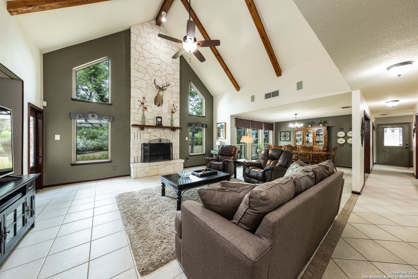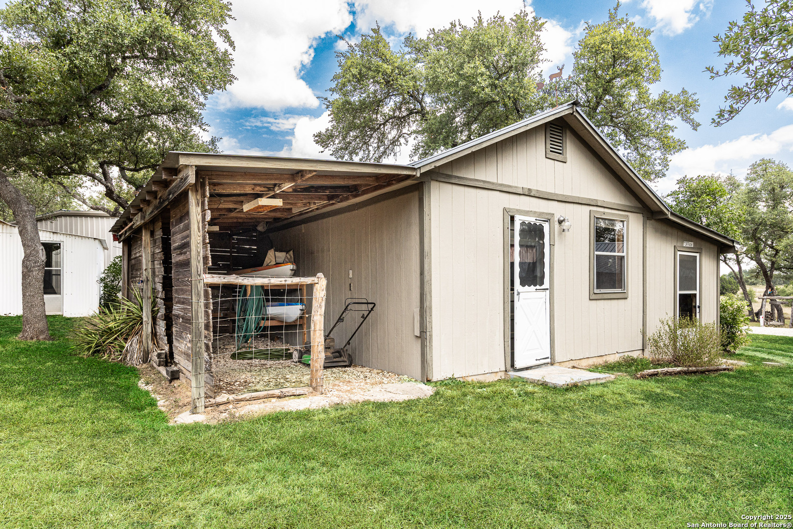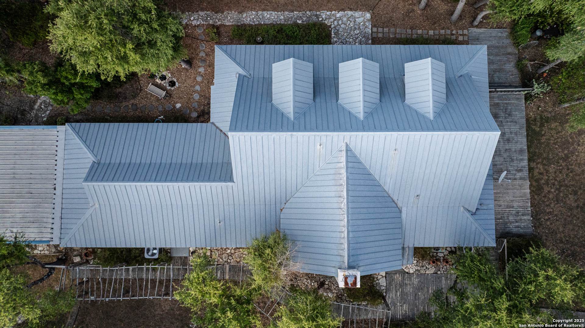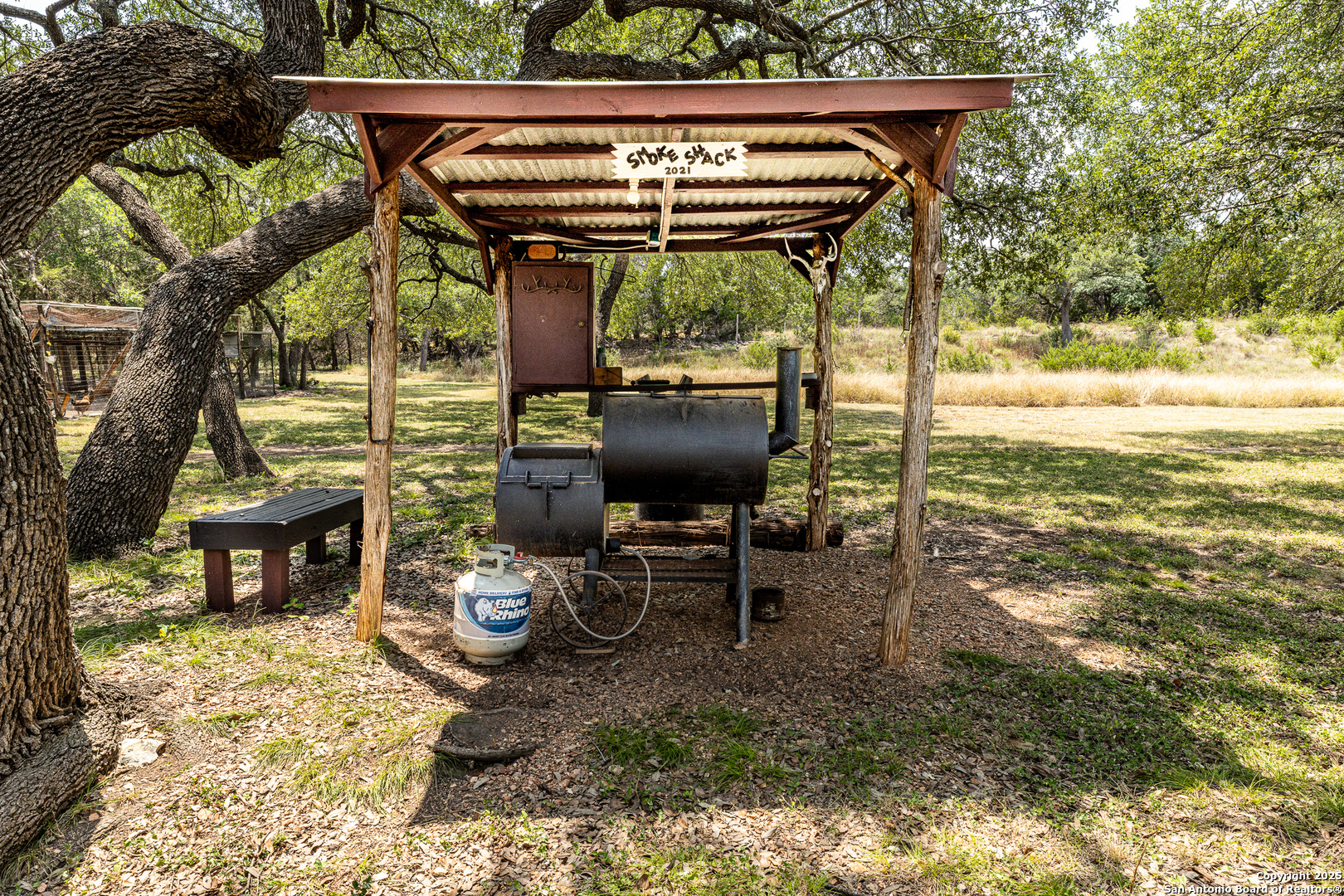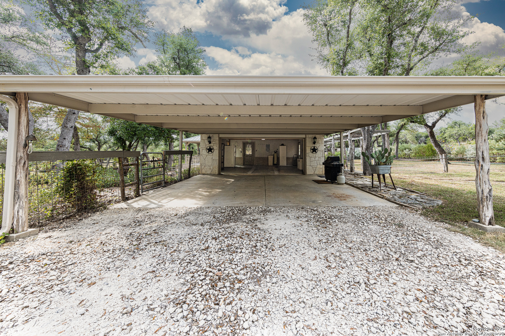 Welcome to your one-of-a-kind Hill Country retreat, a rare, 10+ acre estate that combines peace, privacy, and possibility in one extraordinary package. Nestled beneath mature, manicured oaks, this custom Hill Country Classics home is built with timeless craftsmanship and surrounded by spaces designed to celebrate the good life outdoors. From sunrise coffee on the expansive front porch to evenings by the firepit or under the pavilion with friends, every detail of this property invites you to slow down and savor serenity. The home itself radiates warmth and quality with soaring vaulted ceilings with exposed beams, a floor-to-ceiling stone fireplace with a cypress mantle and strategically placed windows (all replaced in 2024!) that allow you to overlook your estate and enjoy lots of natural light. The kitchen is at the heart of the home with rich granite countertops with elevated stonework, a dine-in island, KitchenAid double ovens, a Bosch dishwasher, and a walk-in pantry with swinging saloon doors that add a dash of Hill Country charm. The oversized primary suite (21ft x 12ft) offers dual closets and a spa-like bath with a soaking tub framed by views of your acreage. Upstairs, two spacious (12ft x 17ft) bedrooms are connected by a Jack and Jill bathroom with separate sinks that provide comfort, privacy, and stunning views with no neighbors in sight. But it's what lies beyond the walls that makes this property unforgettable. A massive 30ft x 40ft red-steel workshop with slab and enclosed storage is ready for projects, hobbies, or expansion. The detached office and studio offer nearly 500 additional sq ft with casita potential-perfect for multi-generational living, a guest suite, or creative space. Stroll along the half-mile shaded walking trail, gather under the 16ft x 32ft pavilion with fans and a smoke shack nearby, tend to the greenhouses or gardens, or enjoy the daily rhythm of the "Hen Hilton" chicken coop and on-site aviary. Pressurized water (with map available for buyers) runs throughout the property, making the wildlife trough, gardens, chicken coop, and greenhouses easy to maintain. Everywhere you turn, this property reveals more-a seasonal pond, an outdoor pool with deck, a pergola-inspired garden path (based on the San Antonio Botanical Garden Rose Walk), fully rebuilt well house (Nov. 2024), custom automated entry gate, abundant parking with 4-car carport + attached 2-car garage, and multiple covered storage areas. And with honeybees already managed 3 of 5 yrs toward your future AG exemption, the financial benefits in 2027 and beyond are just as sweet as the lifestyle. All of this sits in an unbeatable location: tucked away in your own slice of Hill Country paradise, yet just minutes from Bulverde and New Braunfels, and less than an hour from San Antonio or Boerne. This is more than a home, it's a chance to live fully, breathe deeply with gentle windchimes as your backdrop, and embrace the freedom of Hill Country living. Properties with this much manicured acreage, a custom home, a massive workshop, casita potential, and countless extras, rarely become available. Don't wait! Schedule your showing today and see firsthand why this one feels so incredibly special and won't last long.
