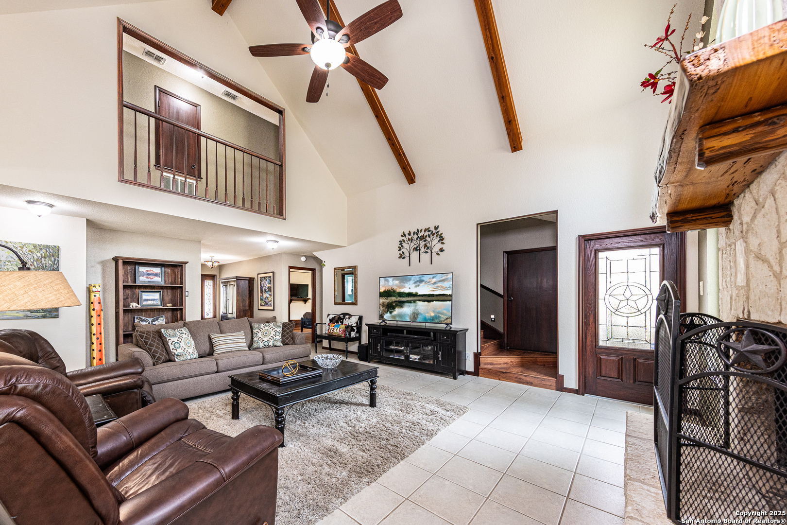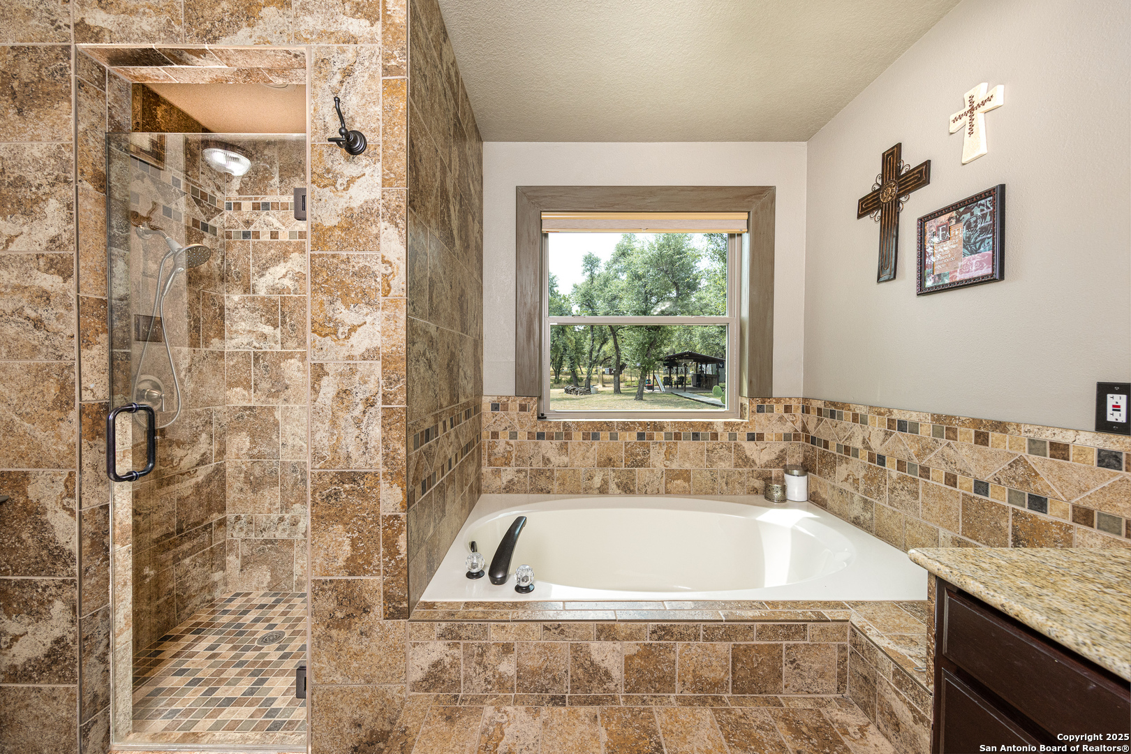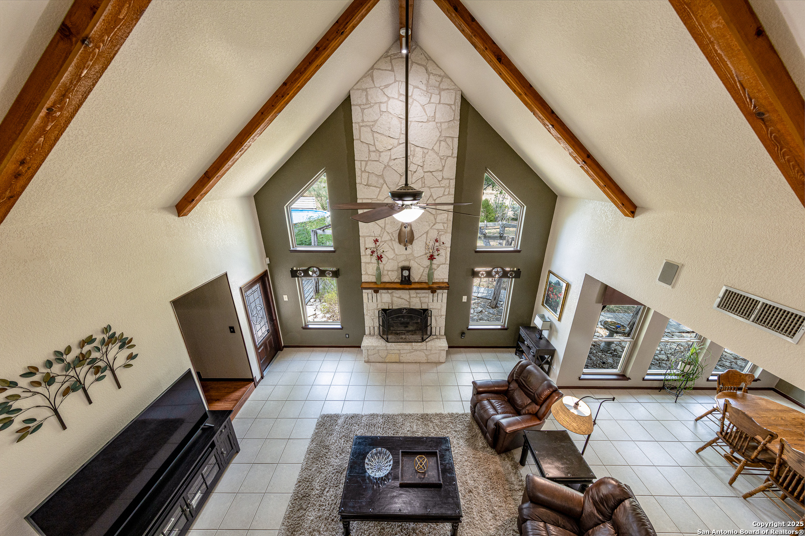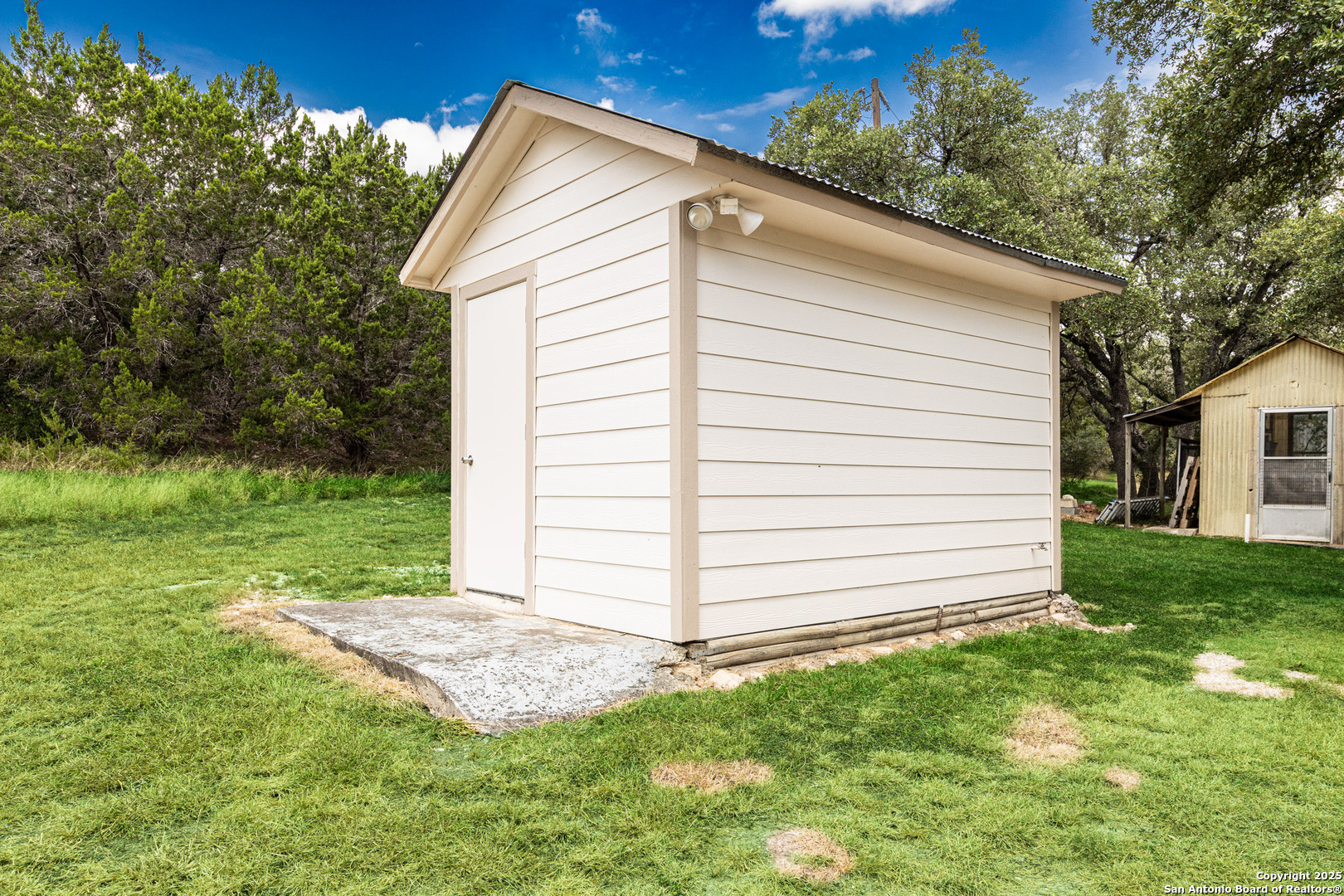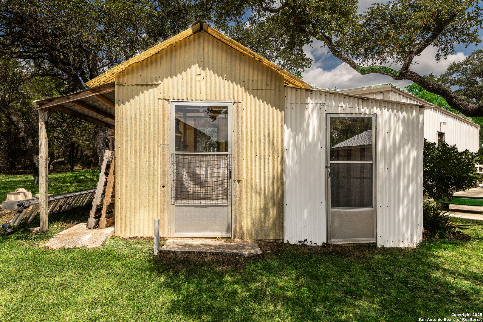 Welcome to your one-of-a-kind Hill Country retreat, a rare, 10+ acre estate that combines peace, privacy, and possibility in one extraordinary package. Nestled beneath mature, manicured oaks, this custom Hill Country Classics home is built with timeless craftsmanship and surrounded by spaces designed to celebrate the good life outdoors. From sunrise coffee on the expansive front porch to evenings by the firepit or under the pavilion with friends, every detail of this property invites you to slow down and savor serenity. The home itself radiates warmth and quality with soaring vaulted ceilings with exposed beams, a floor-to-ceiling stone fireplace with a cypress mantle and strategically placed windows (all replaced in 2024!) that allow you to overlook your estate and enjoy lots of natural light. The kitchen is at the heart of the home with rich granite countertops with elevated stonework, a dine-in island, KitchenAid double ovens, a Bosch dishwasher, and a walk-in pantry with swinging saloon doors that add a dash of Hill Country charm. The oversized primary suite (21ft x 12ft) offers dual closets and a spa-like bath with a soaking tub framed by views of your acreage. Upstairs, two spacious (12ft x 17ft) bedrooms are connected by a Jack and Jill bathroom with separate sinks that provide comfort, privacy, and stunning views with no neighbors in sight. But it's what lies beyond the walls that makes this property unforgettable. A massive 30ft x 40ft red-steel workshop with slab and enclosed storage is ready for projects, hobbies, or expansion. The detached office and studio offer nearly 500 additional sq ft with casita potential-perfect for multi-generational living, a guest suite, or creative space. Stroll along the half-mile shaded walking trail, gather under the 16ft x 32ft pavilion with fans and a smoke shack nearby, tend to the greenhouses or gardens, or enjoy the daily rhythm of the "Hen Hilton" chicken coop and on-site aviary. Pressurized water (with map available for buyers) runs throughout the property, making the wildlife trough, gardens, chicken coop, and greenhouses easy to maintain. Everywhere you turn, this property reveals more-a seasonal pond, an outdoor pool with deck, a pergola-inspired garden path (based on the San Antonio Botanical Garden Rose Walk), fully rebuilt well house (Nov. 2024), custom automated entry gate, abundant parking with 4-car carport + attached 2-car garage, and multiple covered storage areas. And with honeybees already managed 3 of 5 yrs toward your future AG exemption, the financial benefits in 2027 and beyond are just as sweet as the lifestyle. All of this sits in an unbeatable location: tucked away in your own slice of Hill Country paradise, yet just minutes from Bulverde and New Braunfels, and less than an hour from San Antonio or Boerne. This is more than a home, it's a chance to live fully, breathe deeply with gentle windchimes as your backdrop, and embrace the freedom of Hill Country living. Properties with this much manicured acreage, a custom home, a massive workshop, casita potential, and countless extras, rarely become available. Don't wait! Schedule your showing today and see firsthand why this one feels so incredibly special and won't last long.