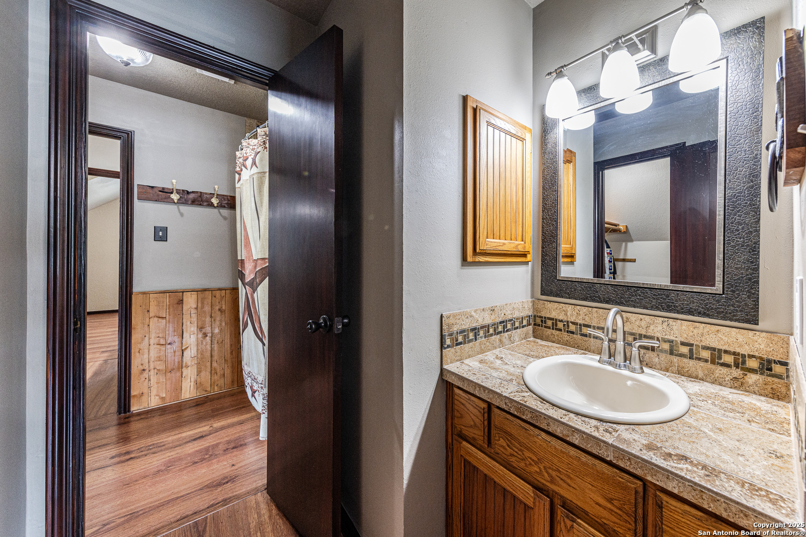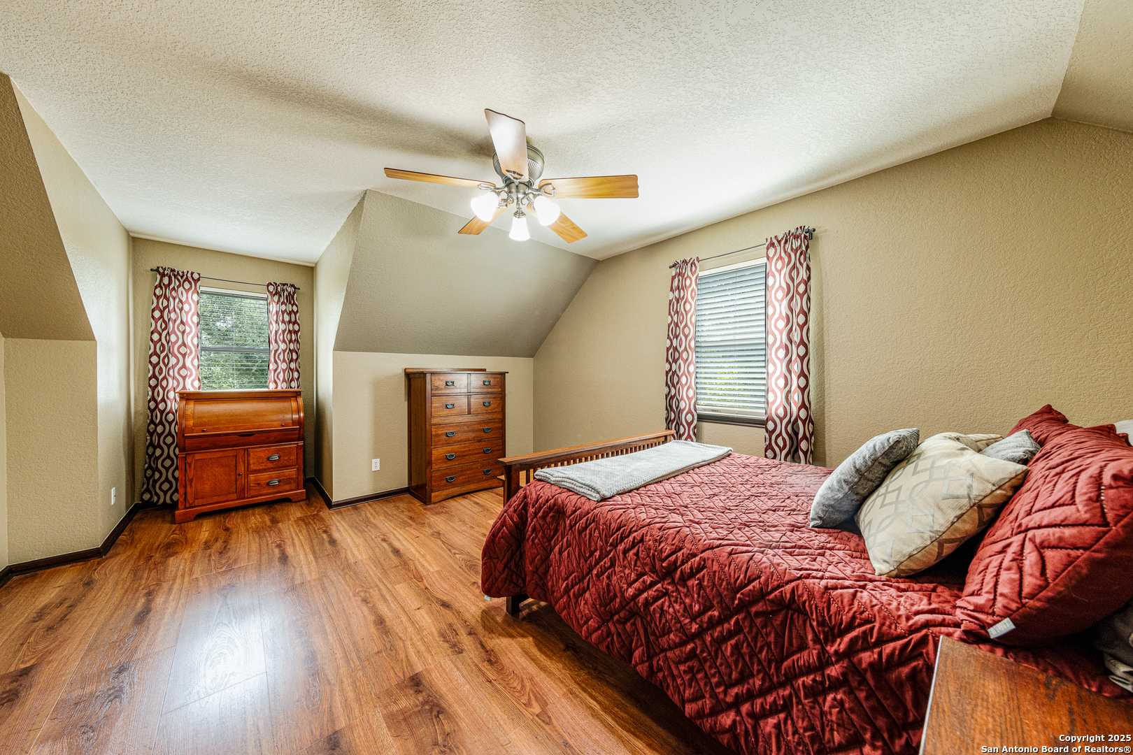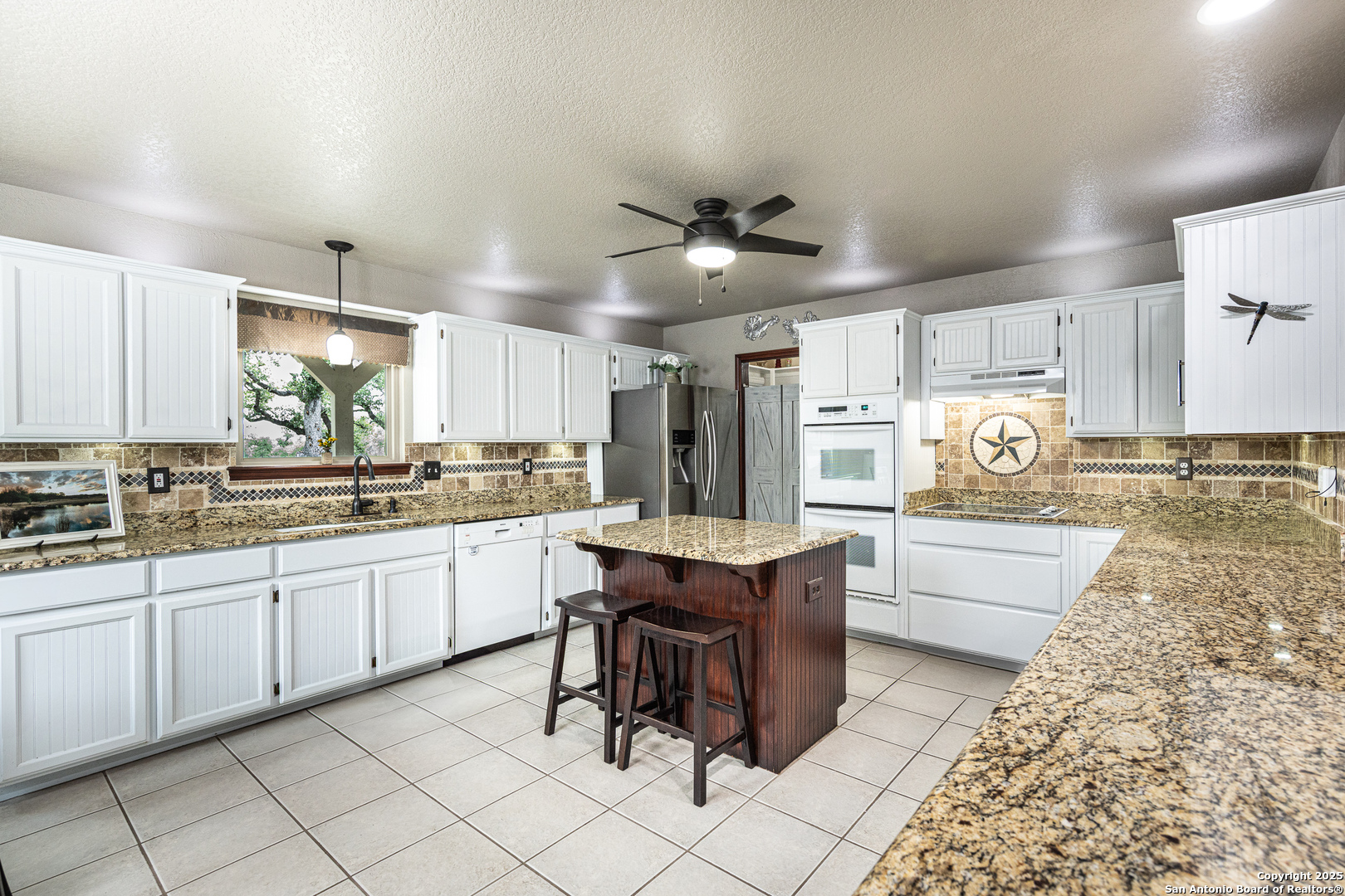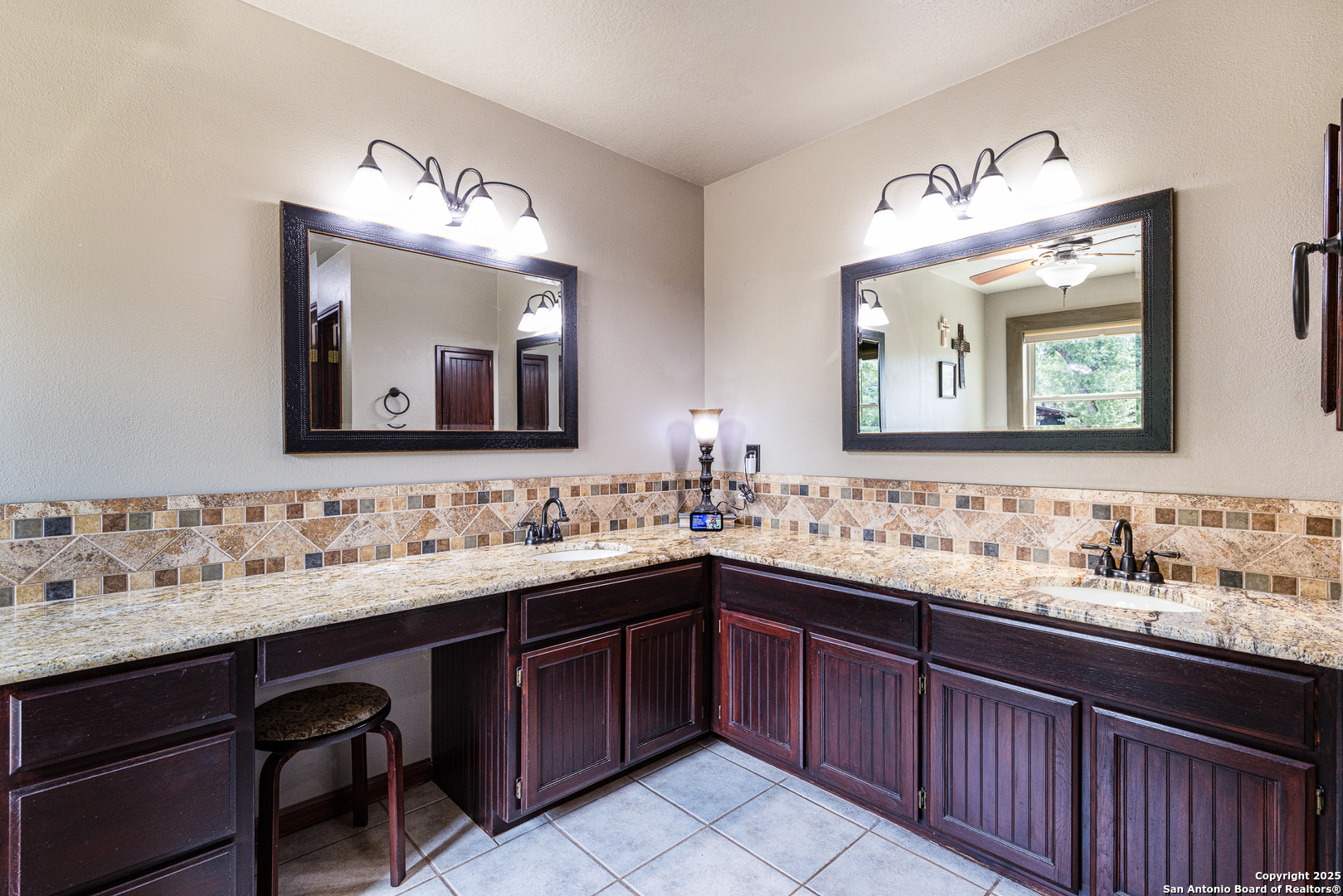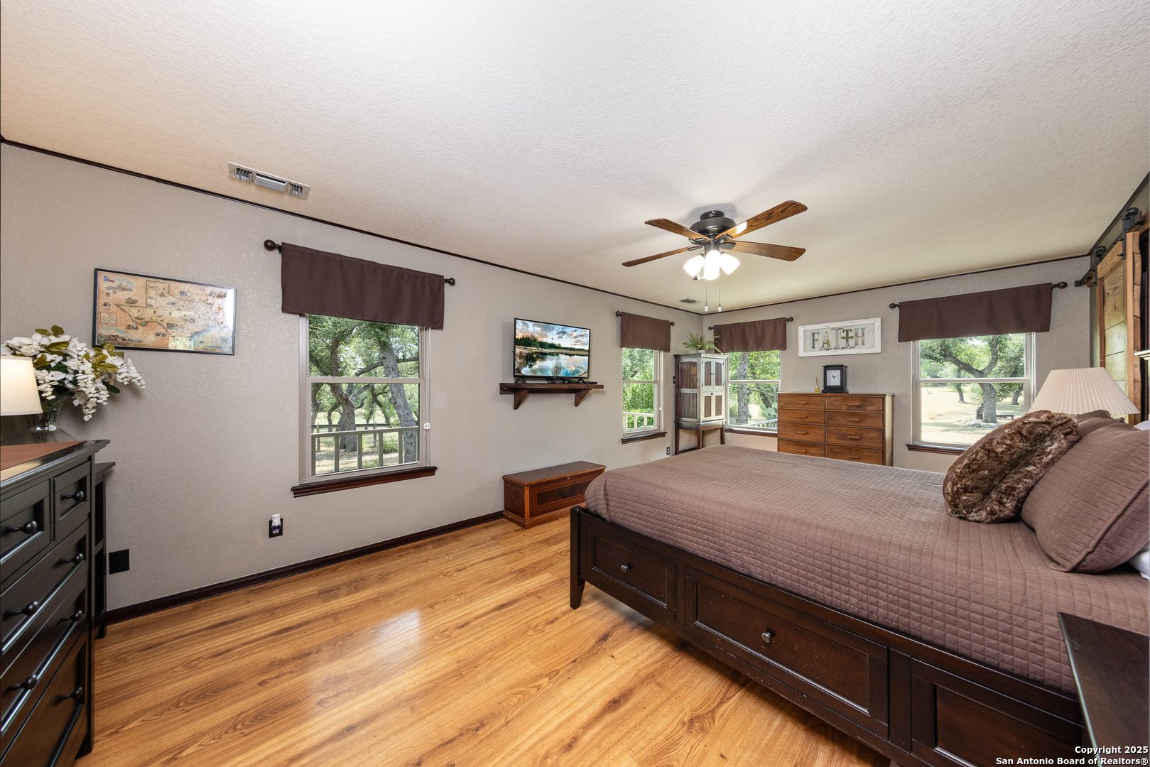 Welcome to your one-of-a-kind Hill Country retreat, a rare, 10+ acre estate that combines peace, privacy, and possibility in one extraordinary package. Nestled beneath mature, manicured oaks, this custom Hill Country Classics home is built with timeless craftsmanship and surrounded by spaces designed to celebrate the good life outdoors. From sunrise coffee on the expansive front porch to evenings by the firepit or under the pavilion with friends, every detail of this property invites you to slow down and savor serenity. The home itself radiates warmth and quality with soaring vaulted ceilings with exposed beams, a floor-to-ceiling stone fireplace with a cypress mantle and strategically placed windows (all replaced in 2024!) that allow you to overlook your estate and enjoy lots of natural light. The kitchen is at the heart of the home with rich granite countertops with elevated stonework, a dine-in island, KitchenAid double ovens, a Bosch dishwasher, and a walk-in pantry with swinging saloon doors that add a dash of Hill Country charm. The oversized primary suite (21ft x 12ft) offers dual closets and a spa-like bath with a soaking tub framed by views of your acreage. Upstairs, two spacious (12ft x 17ft) bedrooms are connected by a Jack and Jill bathroom with separate sinks that provide comfort, privacy, and stunning views with no neighbors in sight. But it's what lies beyond the walls that makes this property unforgettable. A massive 30ft x 40ft red-steel workshop with slab and enclosed storage is ready for projects, hobbies, or expansion. The detached office and studio offer nearly 500 additional sq ft with casita potential-perfect for multi-generational living, a guest suite, or creative space. Stroll along the half-mile shaded walking trail, gather under the 16ft x 32ft pavilion with fans and a smoke shack nearby, tend to the greenhouses or gardens, or enjoy the daily rhythm of the "Hen Hilton" chicken coop and on-site aviary. Pressurized water (with map available for buyers) runs throughout the property, making the wildlife trough, gardens, chicken coop, and greenhouses easy to maintain. Everywhere you turn, this property reveals more-a seasonal pond, an outdoor pool with deck, a pergola-inspired garden path (based on the San Antonio Botanical Garden Rose Walk), fully rebuilt well house (Nov. 2024), custom automated entry gate, abundant parking with 4-car carport + attached 2-car garage, and multiple covered storage areas. And with honeybees already managed 3 of 5 yrs toward your future AG exemption, the financial benefits in 2027 and beyond are just as sweet as the lifestyle. All of this sits in an unbeatable location: tucked away in your own slice of Hill Country paradise, yet just minutes from Bulverde and New Braunfels, and less than an hour from San Antonio or Boerne. This is more than a home, it's a chance to live fully, breathe deeply with gentle windchimes as your backdrop, and embrace the freedom of Hill Country living. Properties with this much manicured acreage, a custom home, a massive workshop, casita potential, and countless extras, rarely become available. Don't wait! Schedule your showing today and see firsthand why this one feels so incredibly special and won't last long.