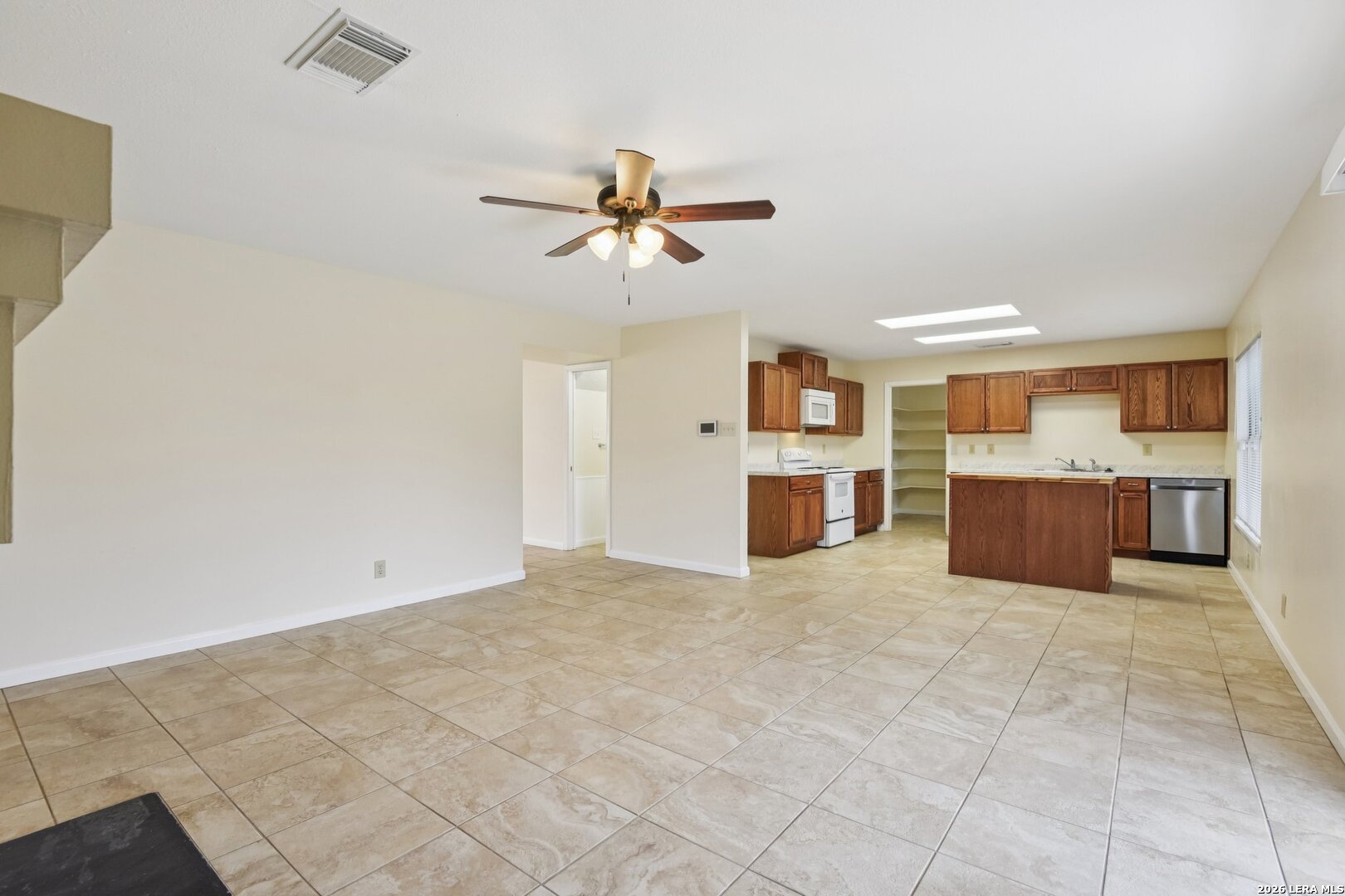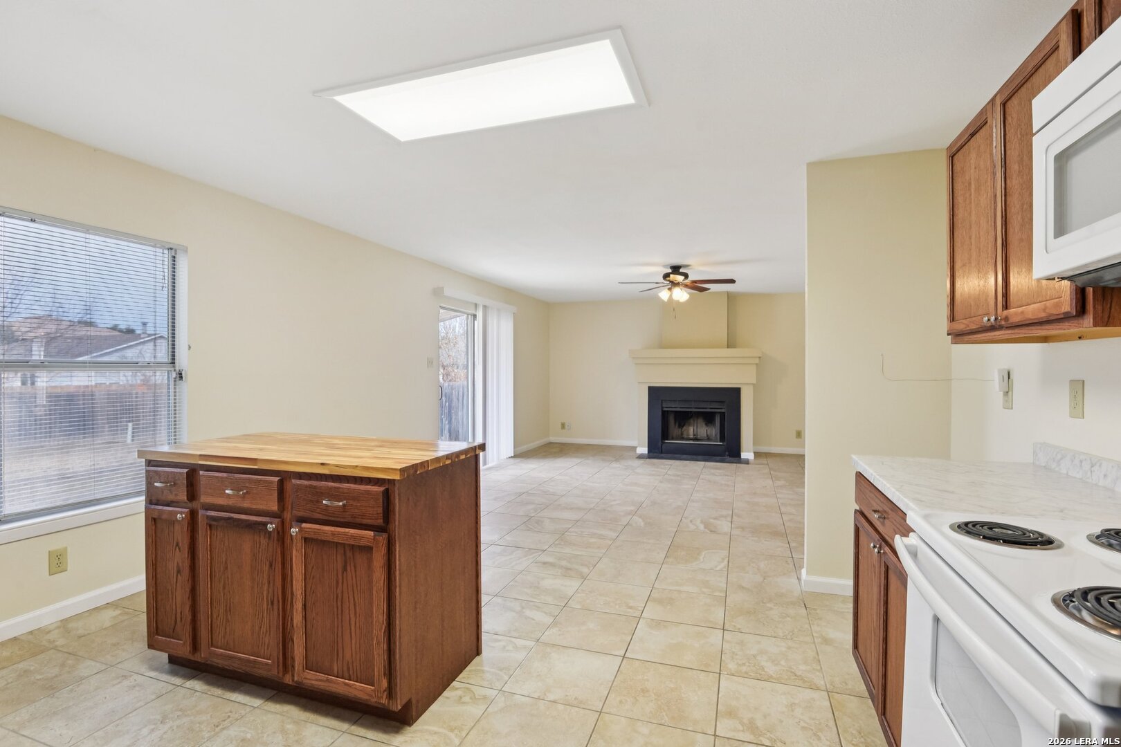 Move-in ready 4-bedroom, 2.5-bath home located in NE San Antonio with quick access to Loop 1604, Loop 410, I-10, and I-35, making commuting across the city simple. The home is minutes from shopping, dining, and major employers, including Randolph AFB, Fort Sam Houston and Brooke Army Medical Center (BAMC). Inside, the open floor plan features a formal living and dining room combination at the entry, leading into a spacious island kitchen with abundant cabinet and counter space and an oversized pantry. The kitchen opens to a large family room anchored by a wood-burning fireplace, ideal for everyday living and entertaining. All bedrooms are upstairs, including the primary suite with a full bath and generous walk-in closet, along with spacious secondary bedrooms perfect for family, guests, or a home office. The exterior offers a large backyard with a covered patio and privacy fence. Major updates provide peace of mind, including HVAC system (2025), foundation leveling (2021), dishwasher (2026), water softener (2020), water heater (2021), Hardi-siding (2016), and roof replacement (2018).