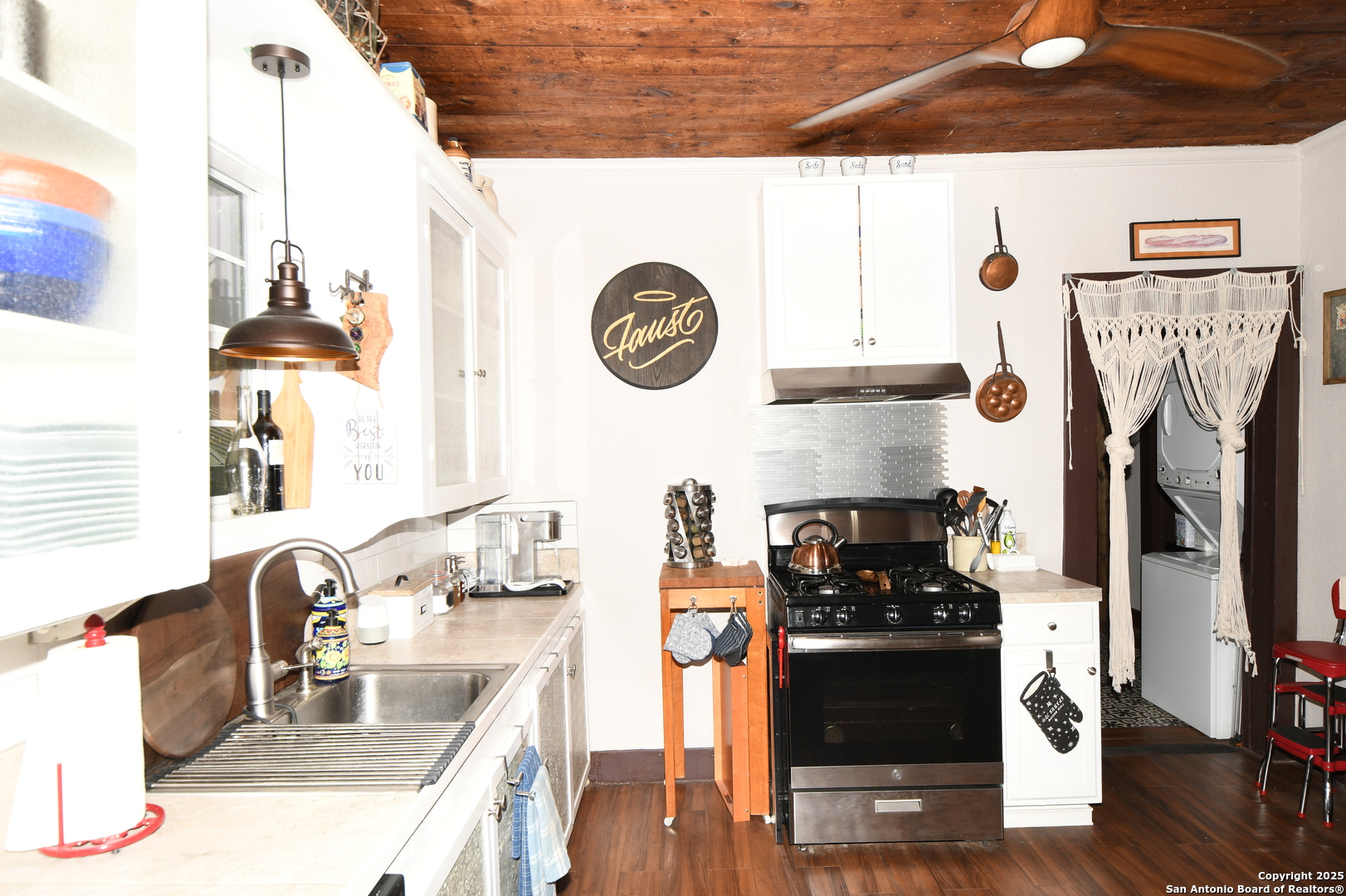 Welcome to your delightful new home-where classic character meets modern convenience. Thoughtfully maintained, this residence features original hardwood floors in the living room, dining room, and primary bedroom, adding timeless beauty and lasting quality. Inside, you'll find a warm and inviting interior, thoughtfully designed to create a welcoming atmosphere. The heart of the home is a compact yet highly functional kitchen, offering a gas stove/range and smart storage solutions that blend style with efficiency. Enjoy the ease of having in-home laundry, making daily tasks effortless. Step outside onto the spacious deck-perfect for hosting friends or unwinding in the peaceful setting of the fully landscaped backyard. Ideally situated between the Alamo and Willow Spring Golf Courses, with nearby parks, shopping, and dining options, this home offers both comfort and convenience in one charming package. Don't miss your chance to own this special property that beautifully blends timeless elegance with modern living. Schedule your showing today and imagine life in your new home!