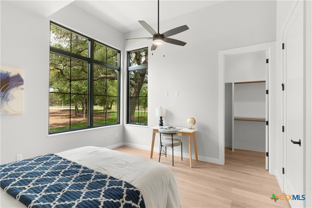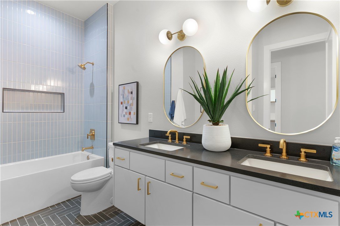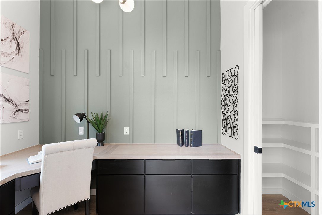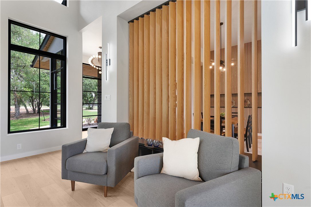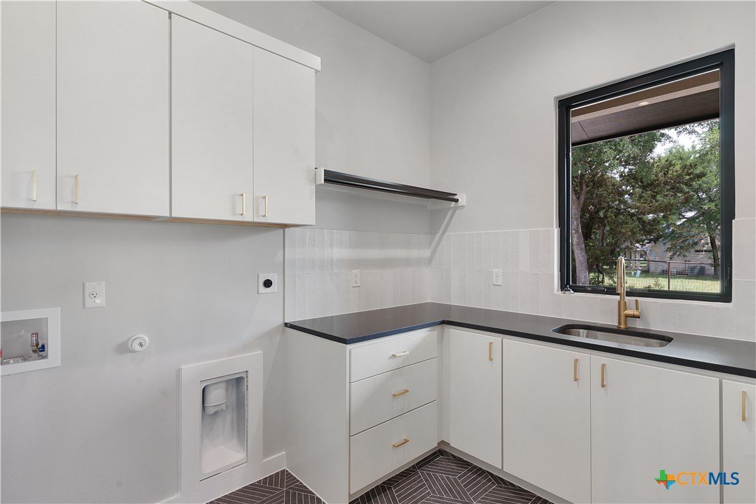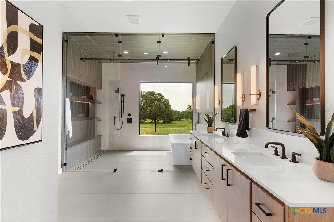 Discover modern elegance and tranquil Hill Country living in this stunning 3,319 sq ft custom-built home by KCE Homes, nestled in the prestigious gated community of South Shores Estates. Backing directly onto the shoreline of Stillhouse Hollow Lake, this residence offers an exceptional blend of luxury, comfort, and natural beauty. With 4 generously sized bedrooms, 3.5 bathrooms, and a dedicated office, the home is thoughtfully designed for both everyday living and upscale entertaining. Exquisite custom woodwork flows throughout, while soaring ceilings with exposed wood beams extend from front to back, creating a bright and open atmosphere filled with natural light. The chef’s kitchen is a true centerpiece, featuring custom rift-sawn oak cabinetry, a quartz waterfall island, panel-ready Bosch appliances, designer lighting, and an expansive walk-in pantry. Unwind in the spa-like primary suite, complete with a sleek designer shower with glass barn doors and a luxurious freestanding tub. Entertain guests in style around the striking 60” electric fireplace in the living room, or enjoy serene outdoor gatherings by the stone fireplace on the back patio—framed by majestic oak trees and unspoiled lakefront views. Set within a quiet gated community surrounded by mature oaks and scenic trails, this remarkable home delivers the perfect balance of refined luxury and peaceful nature.