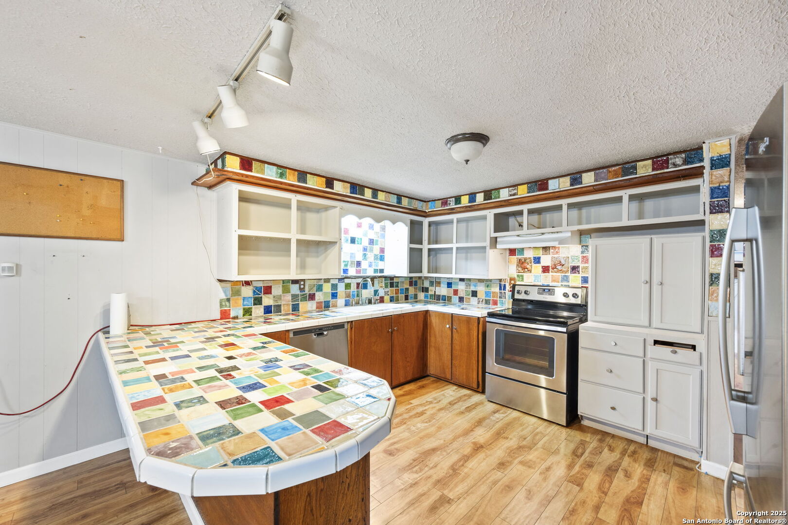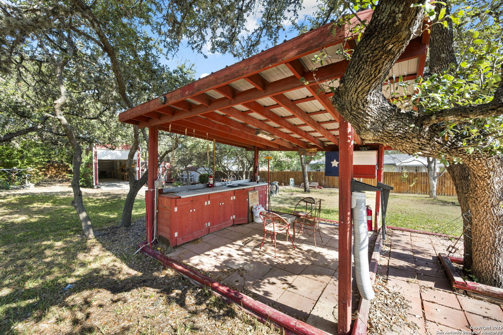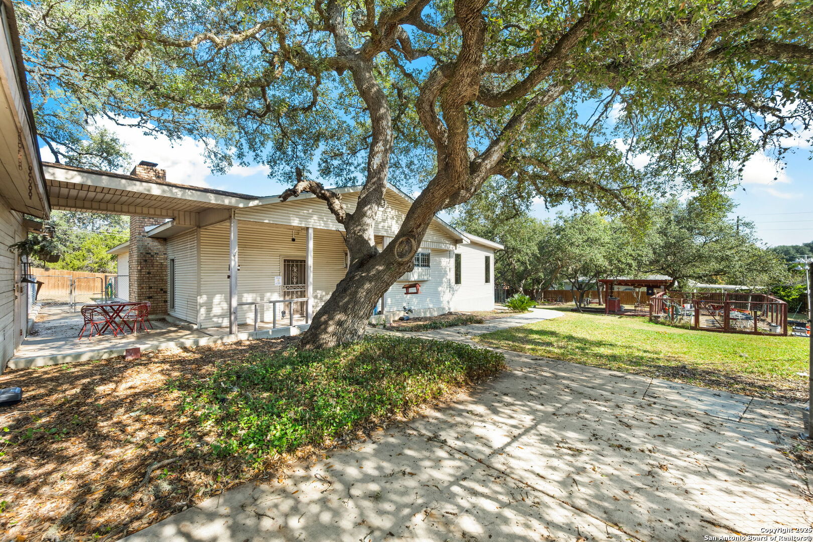 Property is being SOLD AS-IS! Set on a private lot, this expanded manufactured home has been thoughtfully enhanced with a spacious two-car garage, ample parking, stainless steel appliances, redone primary suite bathroom, and an outdoor workshop - perfect for hobbies, storage, or RV parking. Discover this spacious manufactured home set on a 0.68-acre lot with plenty of mature trees up 281N! Don't miss this unique "as-is" property offering space, functionality, and charm in a highly desirable location with award winning schools! The seller has added accessibility ramps, and a grab bar in the primary bath shower making the home ADA-appropriate and easy to navigate, ensuring comfort and convenience for everyone. Enjoy the outdoors in your lovely covered sitting area, that includes a plumbed sink and outside electrical outlet surrounded by mature landscaping and a beautiful garden space to relax or entertain. Two additional storage sheds provide even more room for tools, toys, or seasonal decor. With its unbeatable location, great schools, and a combination of comfort, versatility, and outdoor living, this rare property is full of potential and ready for your personal touch.