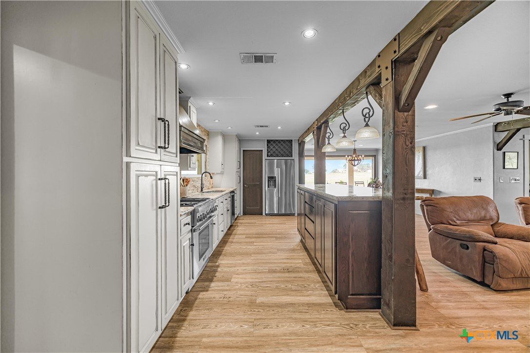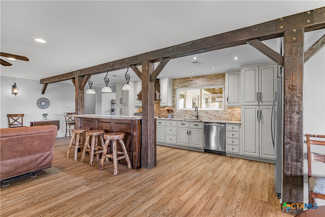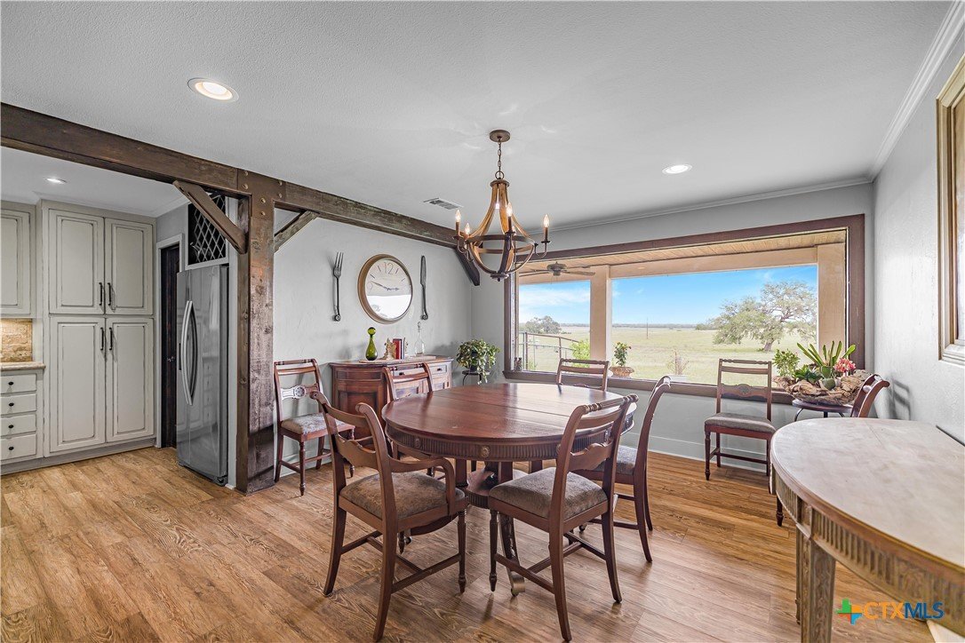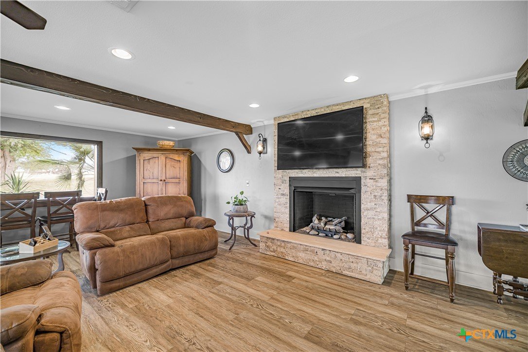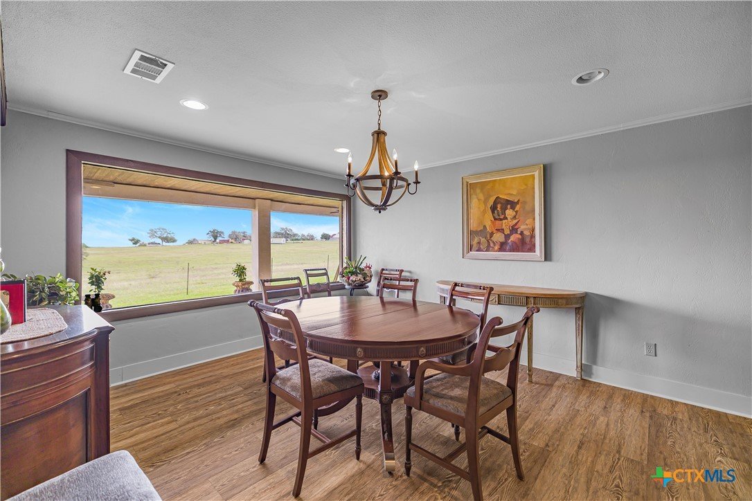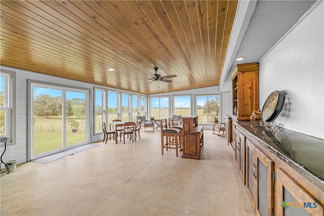 Experience peaceful country living on 12.64 acres in the highly sought-after Mission Valley area just outside Victoria, TX. This beautifully updated 3-bedroom, 2.5-bath home offers breathtaking views through expansive picture windows that fill the space with natural light. Featuring two spacious living areas, the home provides plenty of room for both relaxing and entertaining. The updated kitchen is a standout with custom cabinetry, granite countertops, and a huge walk-in pantry. A nicely sized indoor laundry room with sink and abundant storage throughout the home add to its everyday functionality. A large sunroom offers the perfect space to unwind while enjoying the scenic surroundings. Outside, the property is fully fenced and cross-fenced, ideal for livestock or recreational use. Additional improvements include an oversized carport, detached game room, RV hookups, a 25x35 hurricane-rated shop, and a 12x24 greenhouse—perfect for hobbies, storage, or small-scale farming. This property combines modern updates, usable acreage, and exceptional views, all just a short drive from Victoria.