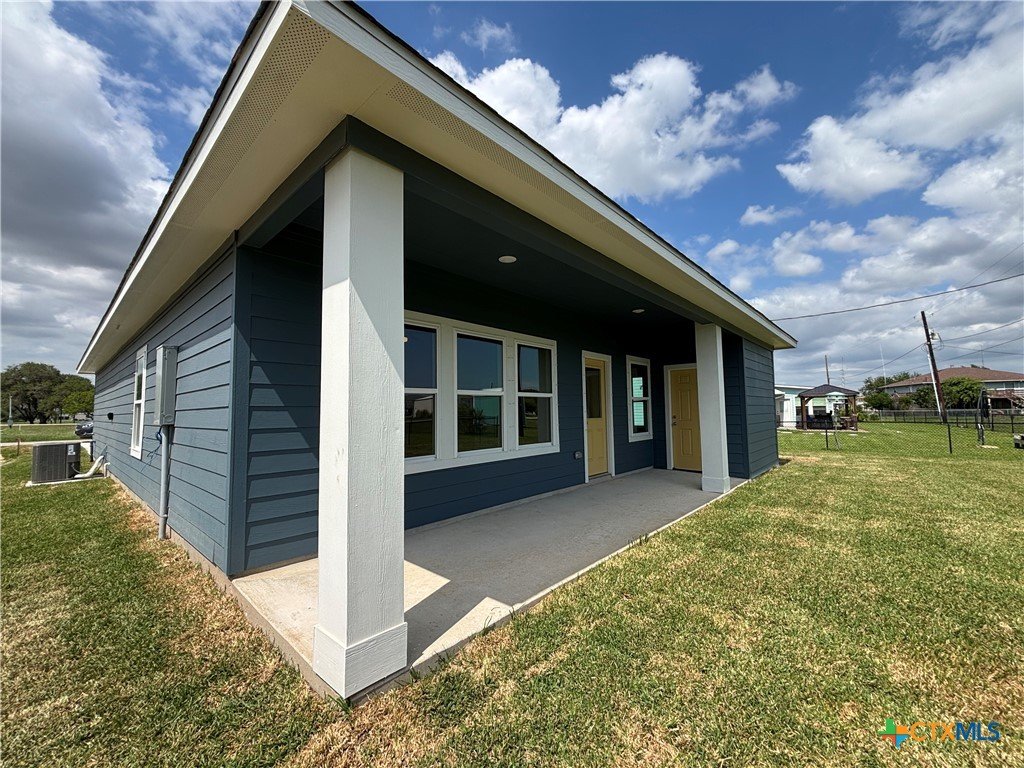 Welcome to The Cape! Cape Carancahua is a 530-acre private, gated residential community situated on the northern shore of Carancahua Bay in Jackson County, Texas. The bay connects to Matagorda Bay and ultimately the Gulf of Mexico, offering residents scenic waterfront views and direct access to coastal activities. This newly constructed three-bedroom, two-bath home offers modern elegance with a relaxed coastal charm. Step inside to discover luxury vinyl plank flooring that is both waterproof and stylish, perfect for easy maintenance. The open concept kitchen is a chef’s delight, featuring quartz countertops, a stunning tiled backsplash, an oversized island with seating, a stainless farmhouse undermount sink, & stainless Whirlpool appliances. A spacious pantry ensures plenty of storage. Also has Windstorm rated windows with window covers. The primary suite is a private retreat, boasting a large tiled walk-in shower, a walk-in closet, and a double vanity with quartz countertops. Both bathrooms offer high-end finishes, ensuring comfort and sophistication throughout the home. An inside utility room adds convenience to your daily routine. Located in a private, amenity-rich community, you’ll have access to a boat ramp, two swimming pools, tennis and basketball courts, driving range, fishing pier, playground, picnic area and a covered pavilion—perfect for outdoor fun and relaxation. This home does come with Hurricane Shutters and the roof has been inspected to meet windstorm. Cape Carancahua is ideal for those seeking a tranquil coastal lifestyle. Residents often engage in fishing, boating, birdwatching, gardening, and outdoor gatherings. The community’s natural surroundings and amenities support a relaxed and active way of life. Give me or your agent a call today to set up a private tour.