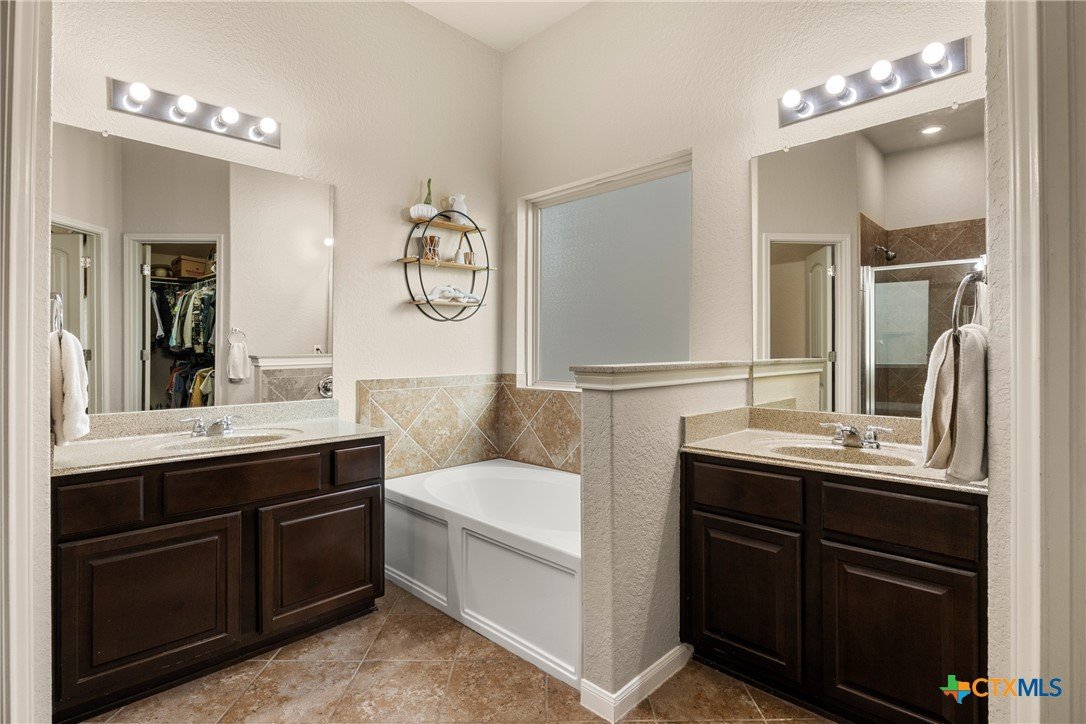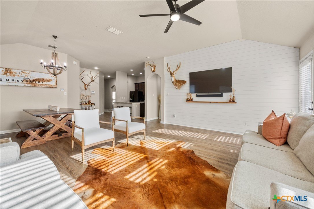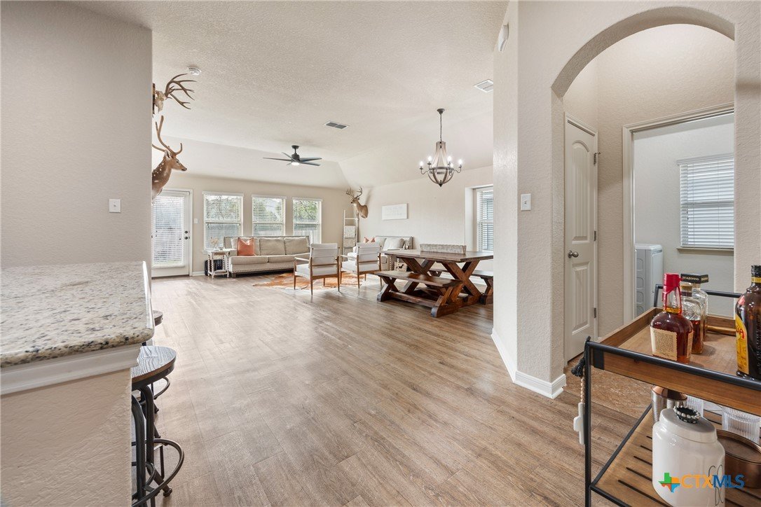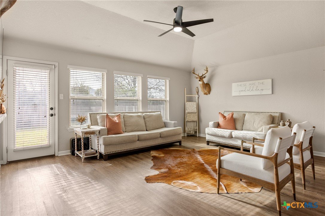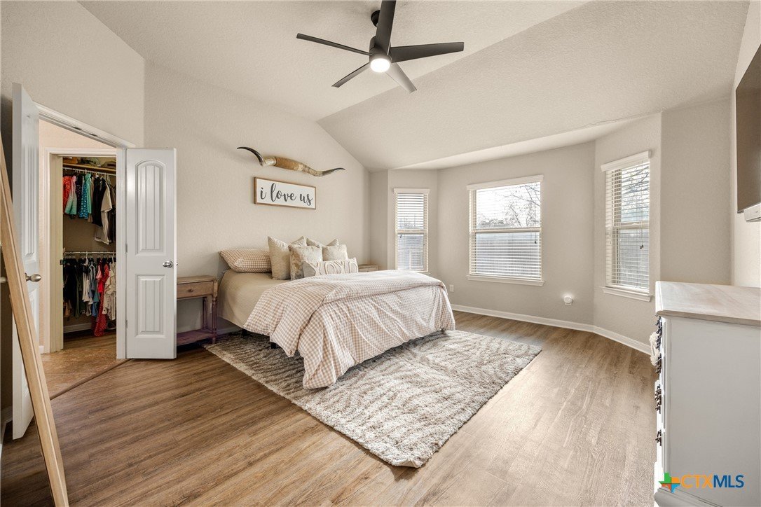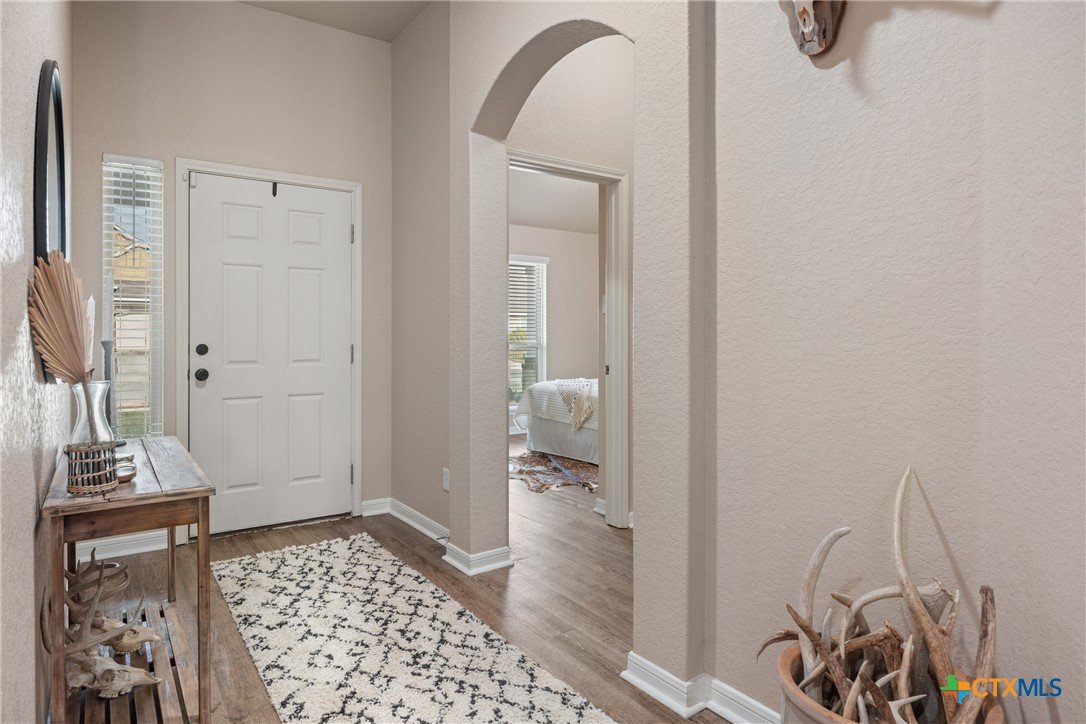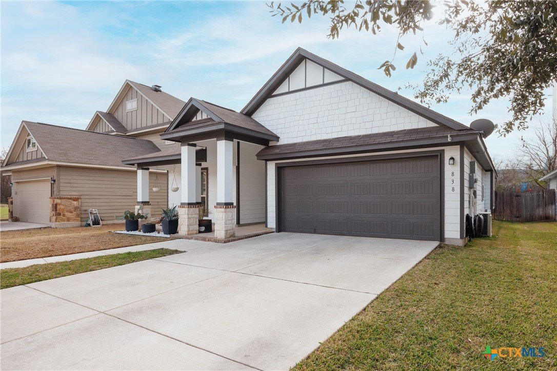 This 3/2/2 Bella Vista home (Buckner plan) has been Meticulously Maintained & Perfected with Endless Upgrades! Beautiful curb appeal greets you home, enhanced by fresh exterior paint, new fixtures & carpeted Saint Augustine Grass that's effortlessly maintained by the underground sprinkler system. High Ceilings, recessed lighting & durable laminate flooring guide you throughout this split floorplan, open living concept dressed with Shiplap connecting the island kitchen & living beautifully. Large primary bedroom with bay window & private bathroom oasis is complete with deep soaking tub, separate shower & 2 vanity sinks. Garage remodel equipped with a mini split offers extended living space. Retreat Outdoors to your fully fenced backyard with NO BACK NEIGHBORS or take a short golf cart ride to the heart of New Braunfels downtown dining/shopping, Landa Park & public river access. Schlitterbahn water park & Lake Dunlap are just a short 5 minute drive for extended fun! Easy access to I-35, just 20 miles north of San Antonio and 10 miles south of San Marcos