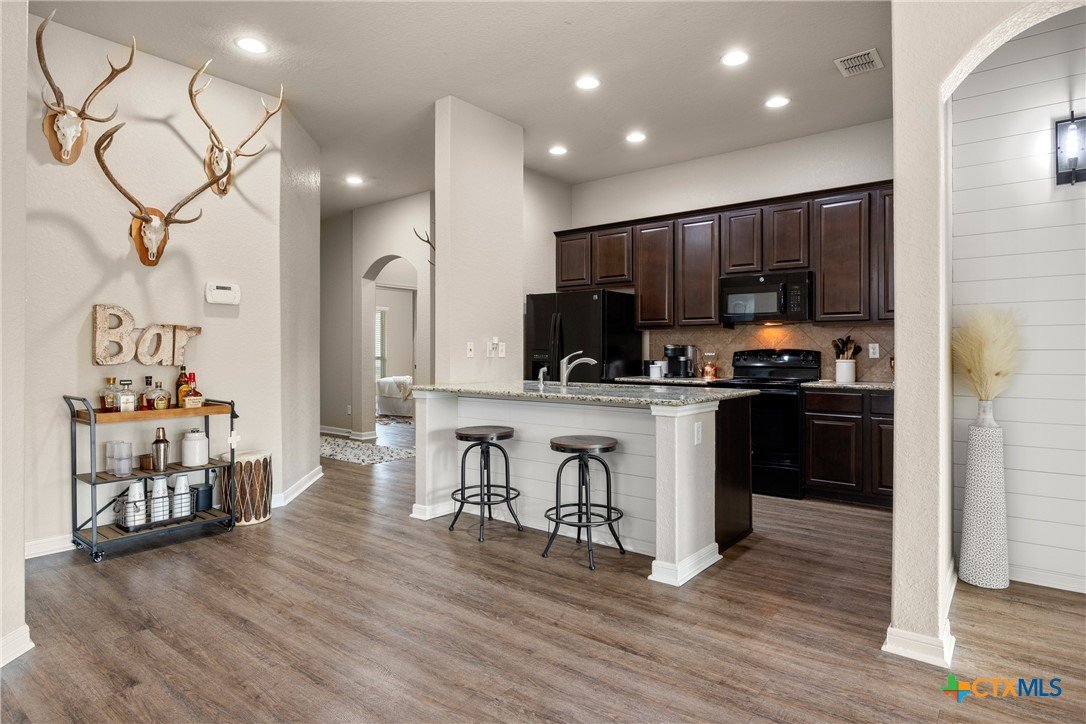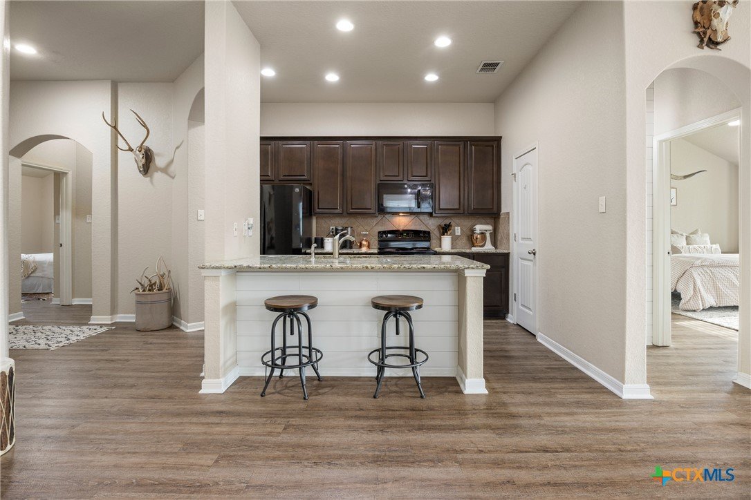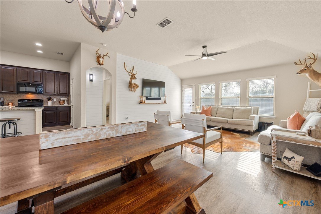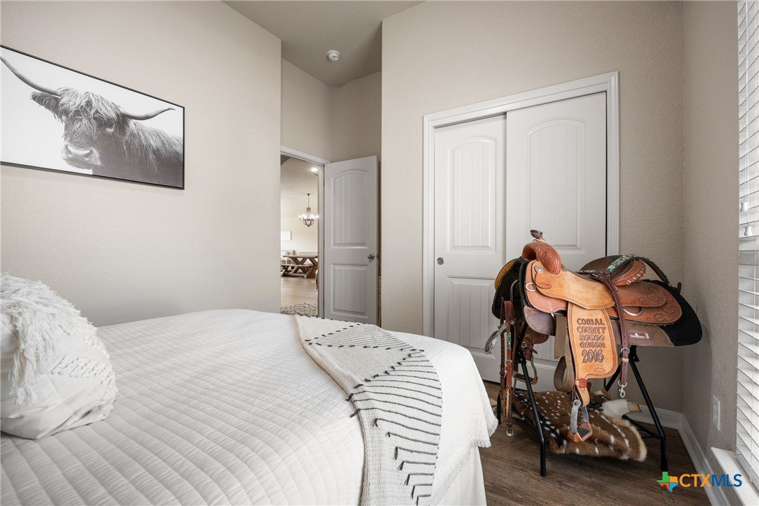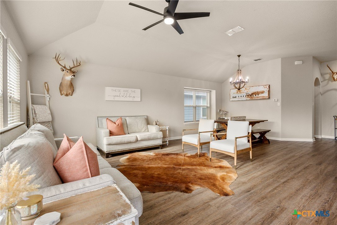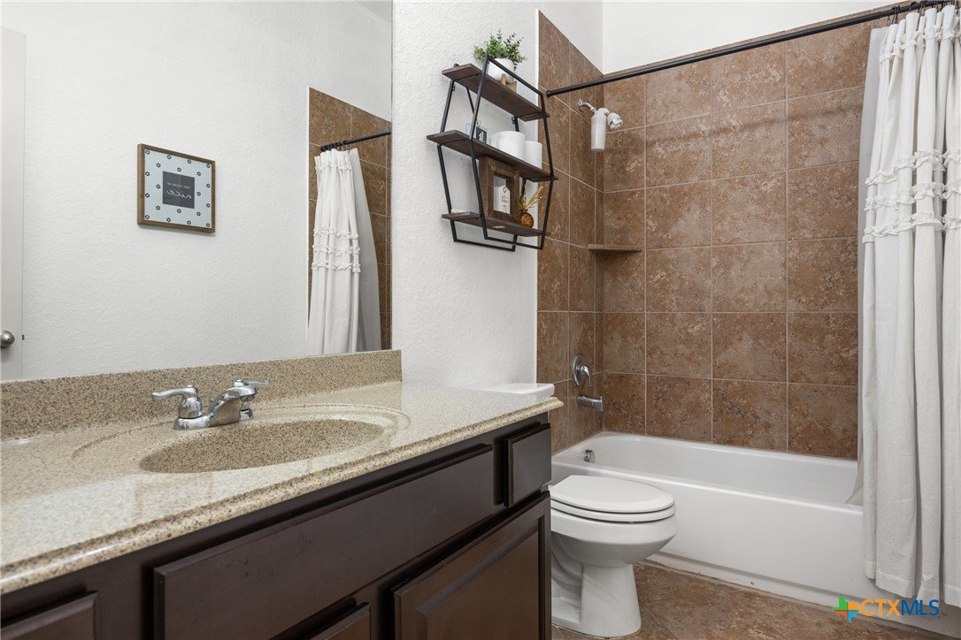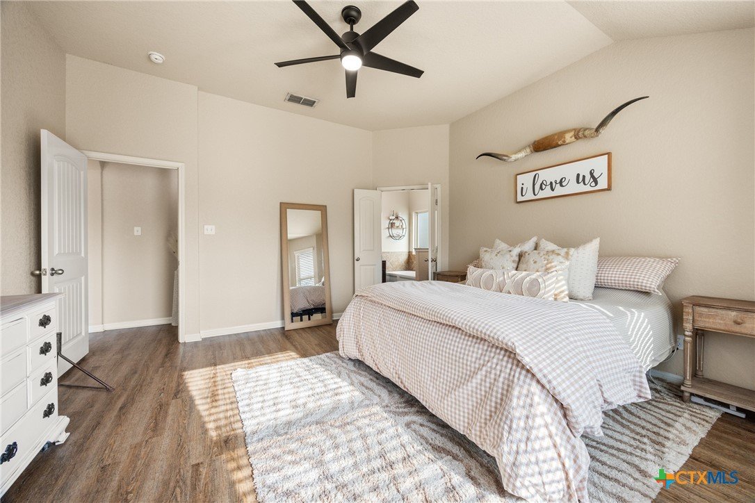 This 3/2/2 Bella Vista home (Buckner plan) has been Meticulously Maintained & Perfected with Endless Upgrades! Beautiful curb appeal greets you home, enhanced by fresh exterior paint, new fixtures & carpeted Saint Augustine Grass that's effortlessly maintained by the underground sprinkler system. High Ceilings, recessed lighting & durable laminate flooring guide you throughout this split floorplan, open living concept dressed with Shiplap connecting the island kitchen & living beautifully. Large primary bedroom with bay window & private bathroom oasis is complete with deep soaking tub, separate shower & 2 vanity sinks. Garage remodel equipped with a mini split offers extended living space. Retreat Outdoors to your fully fenced backyard with NO BACK NEIGHBORS or take a short golf cart ride to the heart of New Braunfels downtown dining/shopping, Landa Park & public river access. Schlitterbahn water park & Lake Dunlap are just a short 5 minute drive for extended fun! Easy access to I-35, just 20 miles north of San Antonio and 10 miles south of San Marcos